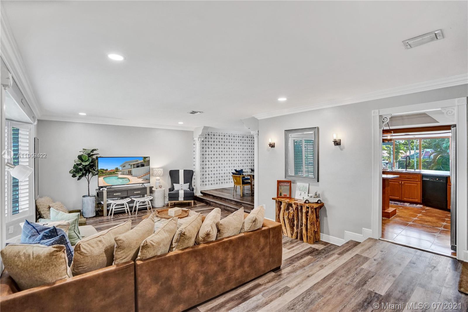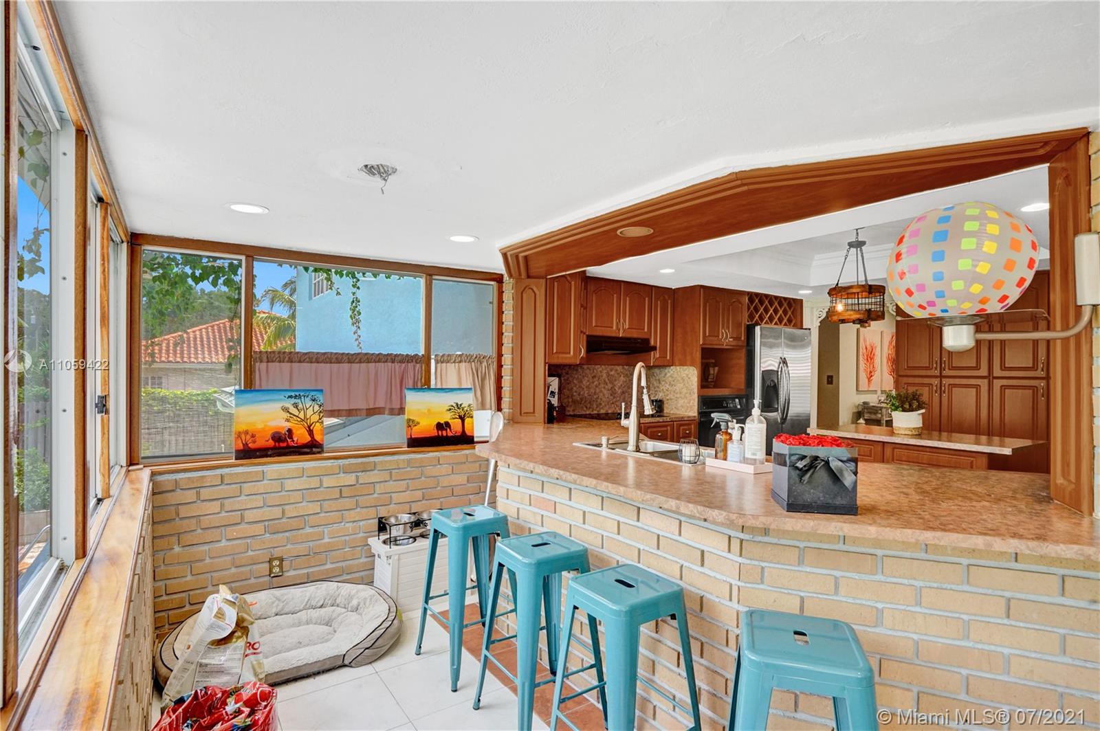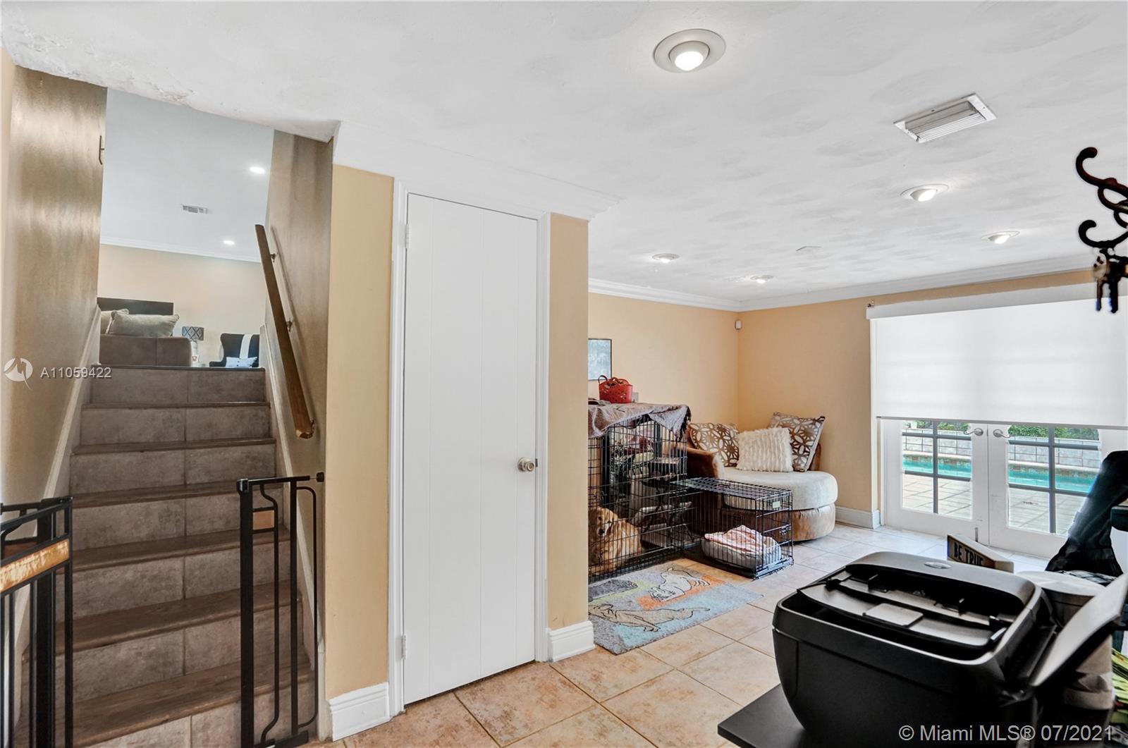 Beautiful and very Unique 3 storied, 4 Bedroom, 3 Bathroom, Pool home located at the Exclusive Country Club of Miami. 24/7 manned security gate and a roving security patrol. New Roof 2019. New AC 2021, New Washer & Dryer. Large Bay Windows, new recessed lighting thru out the spacious living and dining room areas. This home sits on a .25 acre lot with a large paved area around the pool and a large yard. Interior of the home with a large kitchen and BRKF area overlooking a beautiful backyard and Pool. Main level includes Foyer, Living Room, Dining, BRKF area & Kitchen. Upstairs you have Master Bedroom w/Master Bath with ship lap thru out & additional 2 bedrooms, and 1 bath. Downstairs you have 1 bedroom which can be an In law quarters, Full Cabana bath, Lounge and Garage.