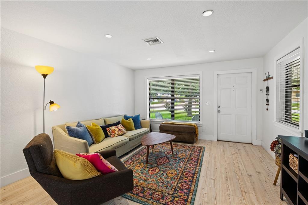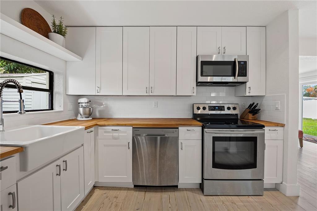 Priced to sell!! Bring your offer for this charming 3 bedroom 2 bath ranch style home located in the HOT Riverland Village neighborhood. Spacious and open living/dining/kitchen floor plan make this a perfect home for entertaining. The "on trend" country kitchen has a porcelain farm sink, oak counters, stainless appliances, white cabinetry, open shelving and boasts a walk-in pantry/laundry room too! The primary bedroom has an ensuite bath and the covered entry porch, ample carport and great storage shed compliment the large fenced backyard. Renovations/upgrades (fully permitted) include: Roof, electrical, wood flooring, interior doors, baseboards and trim, fixtures, remodeled kitchen and bathrooms. Windows/doors have storm panel coverings.