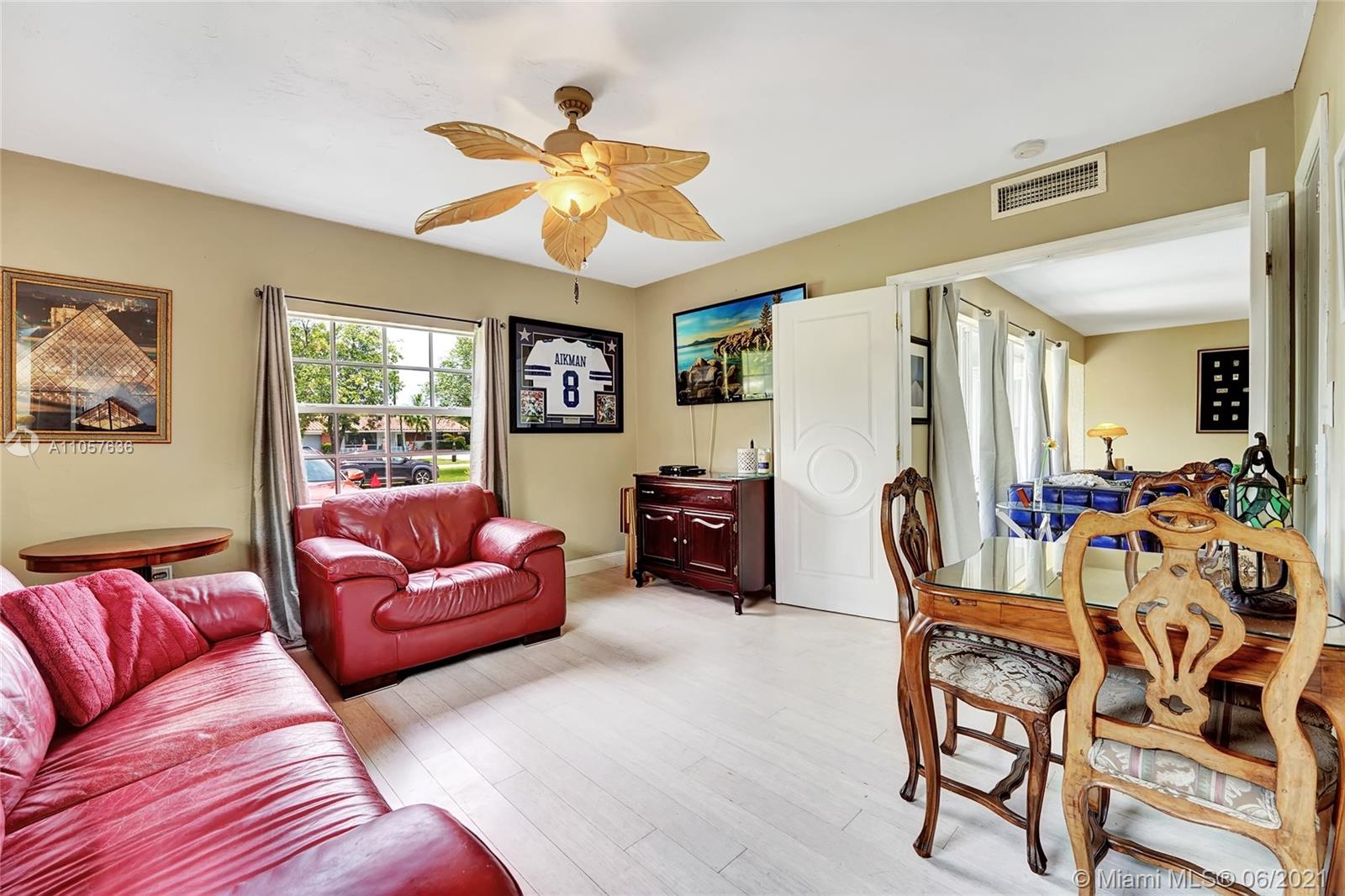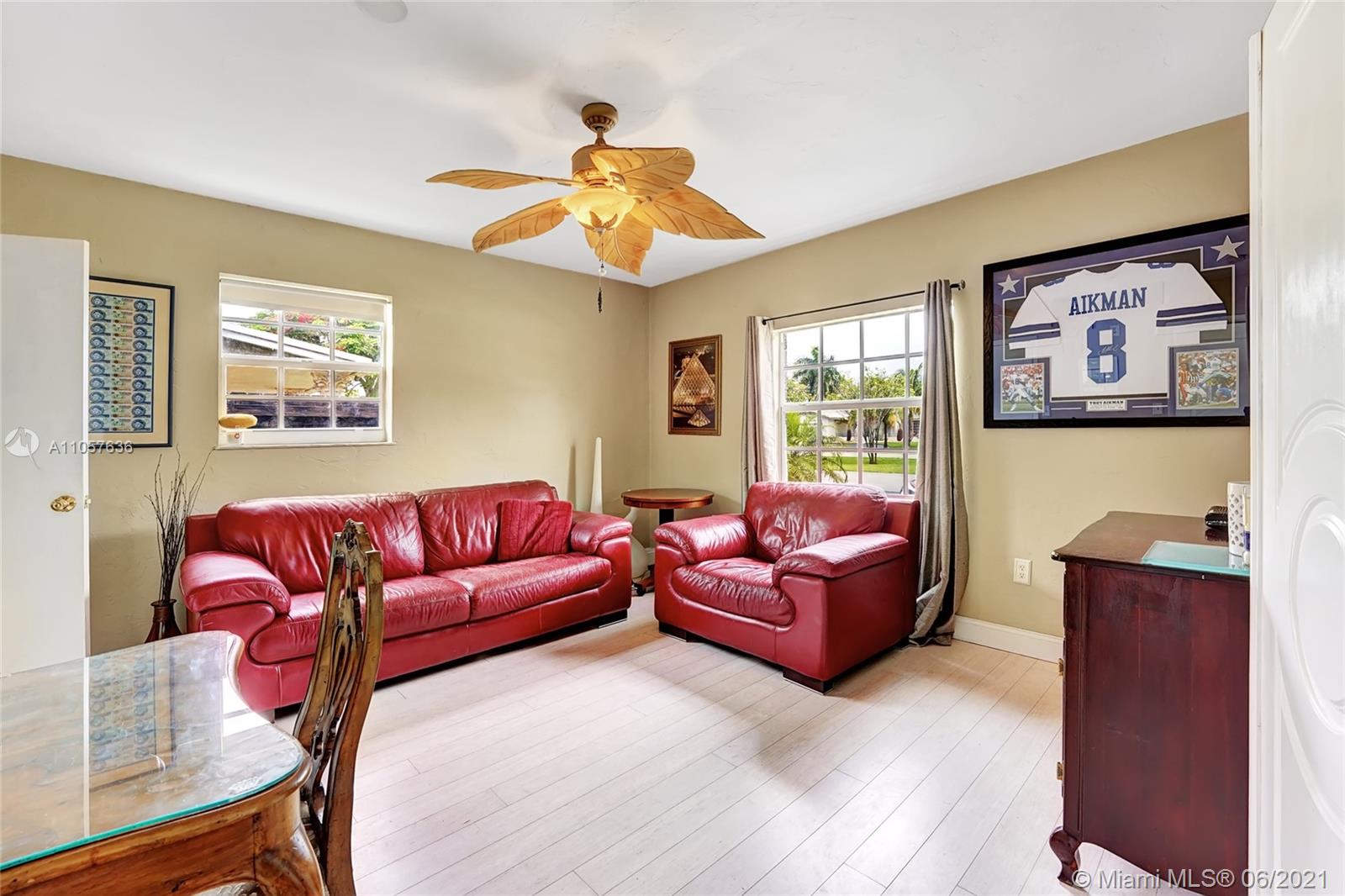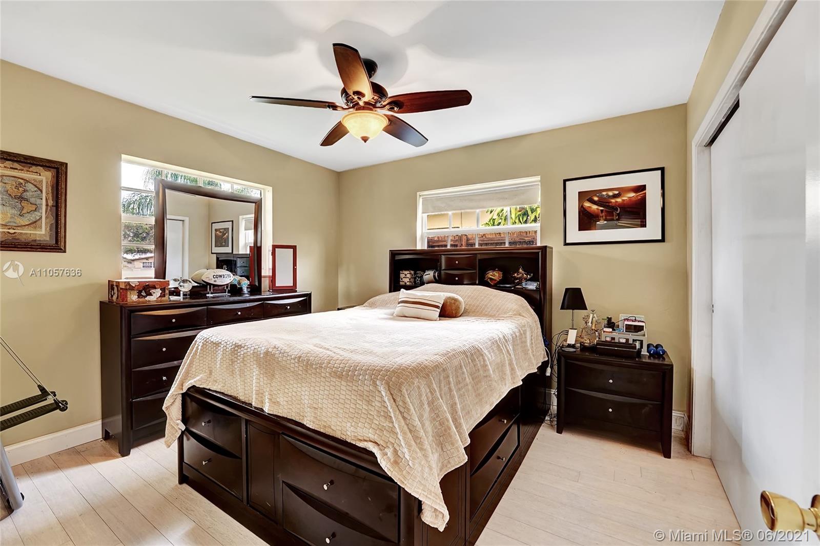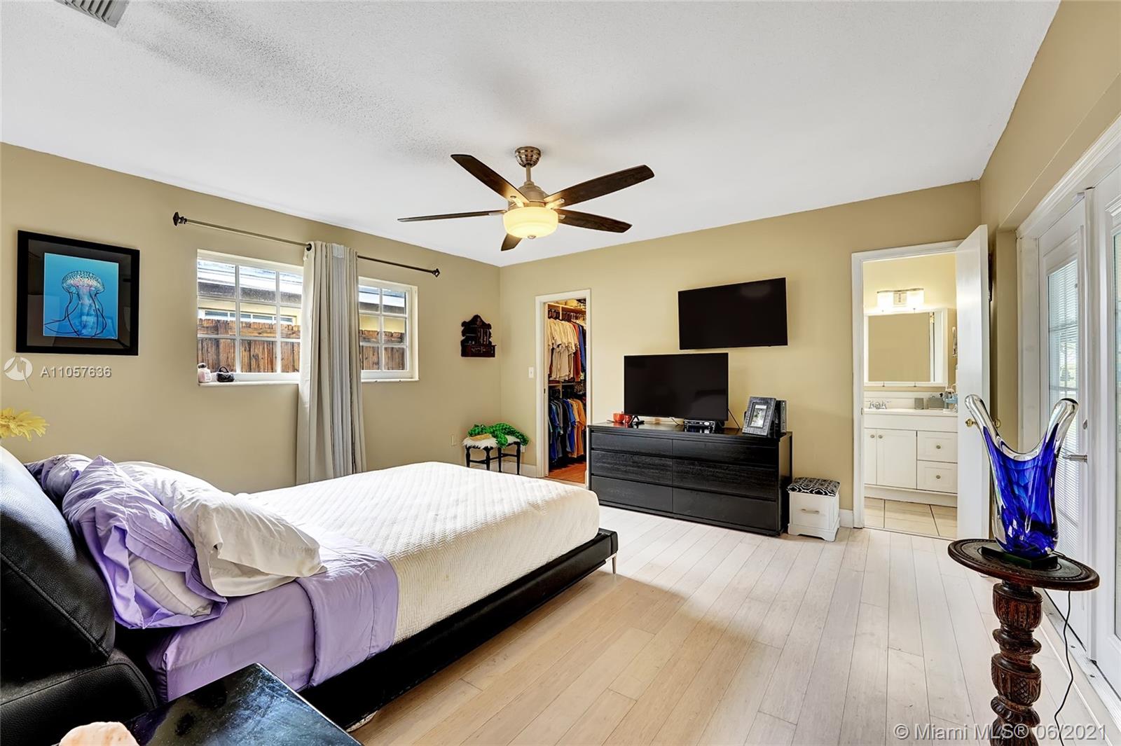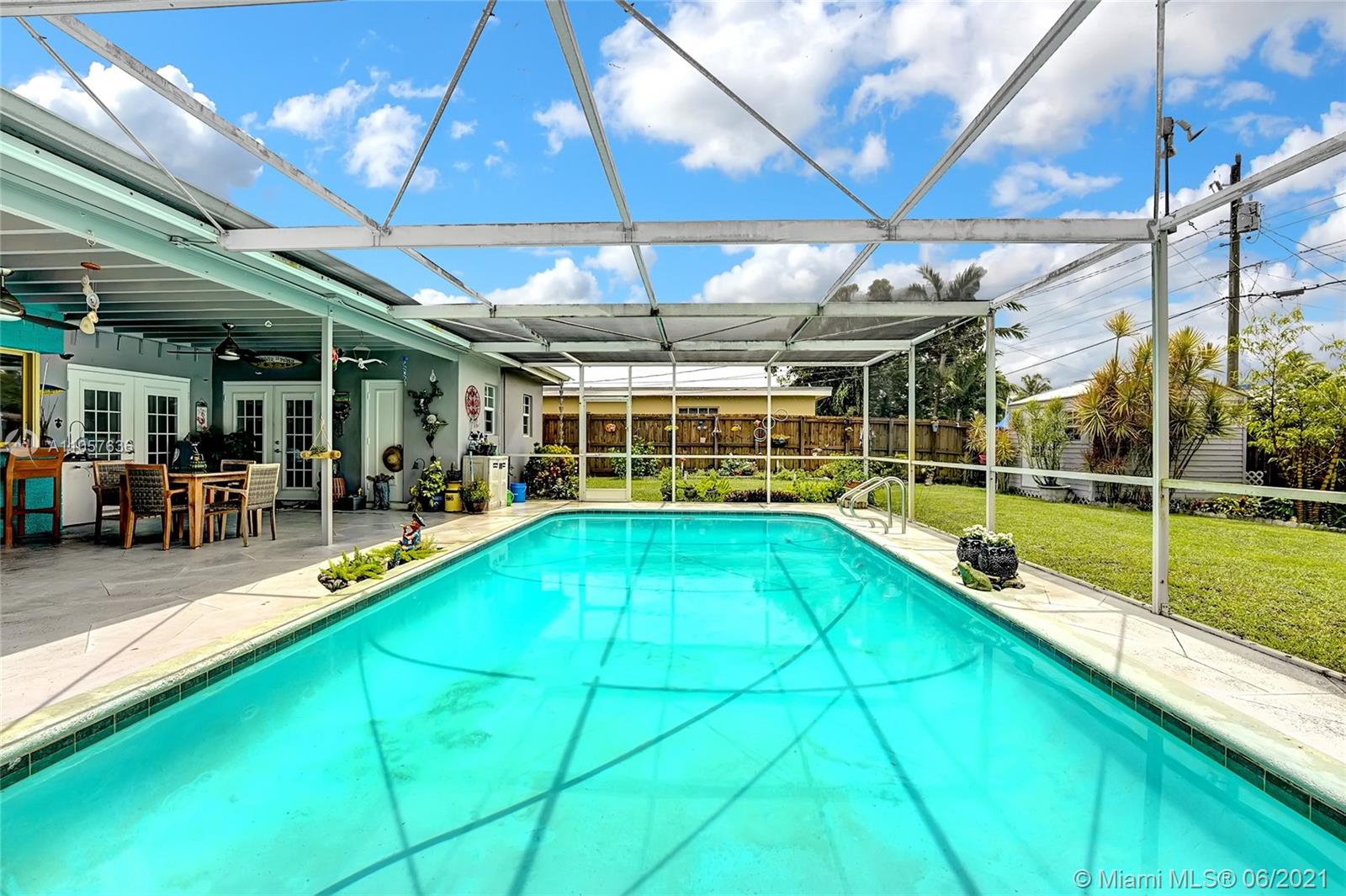Are you looking for a tropical tranquil home that is great for entertaining & less than 5 miles to Hollywood Beach Then look no further, this 4 Bedroom 2 Bathroom home sits on a spacious 7,673 fully fenced sqft lot. Enter through your foyer & your greeted by the open flowing floor plan and captivating views of the pool. The large kitchen is thoughtfully designed w/ built-in pantry & large pass through window w/ pool bar seating. Triple split floor plan. Spacious bedrooms. Upgraded bamboo flooring throughout. Master suite features walk-in closet w/ built-ins & en-suite cabana bath. French doors lead you from the living space to your screened pool deck w/ covered patio & plenty of yard pass the pool to enjoy! Outdoor storage shed. Impact windows/doors. Large circular driveway & much more!