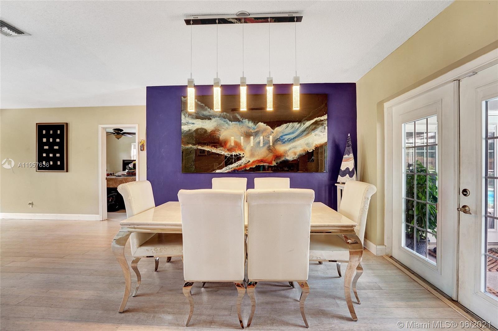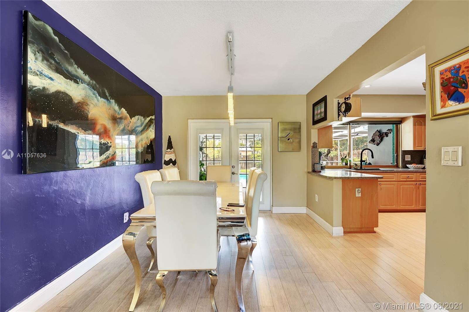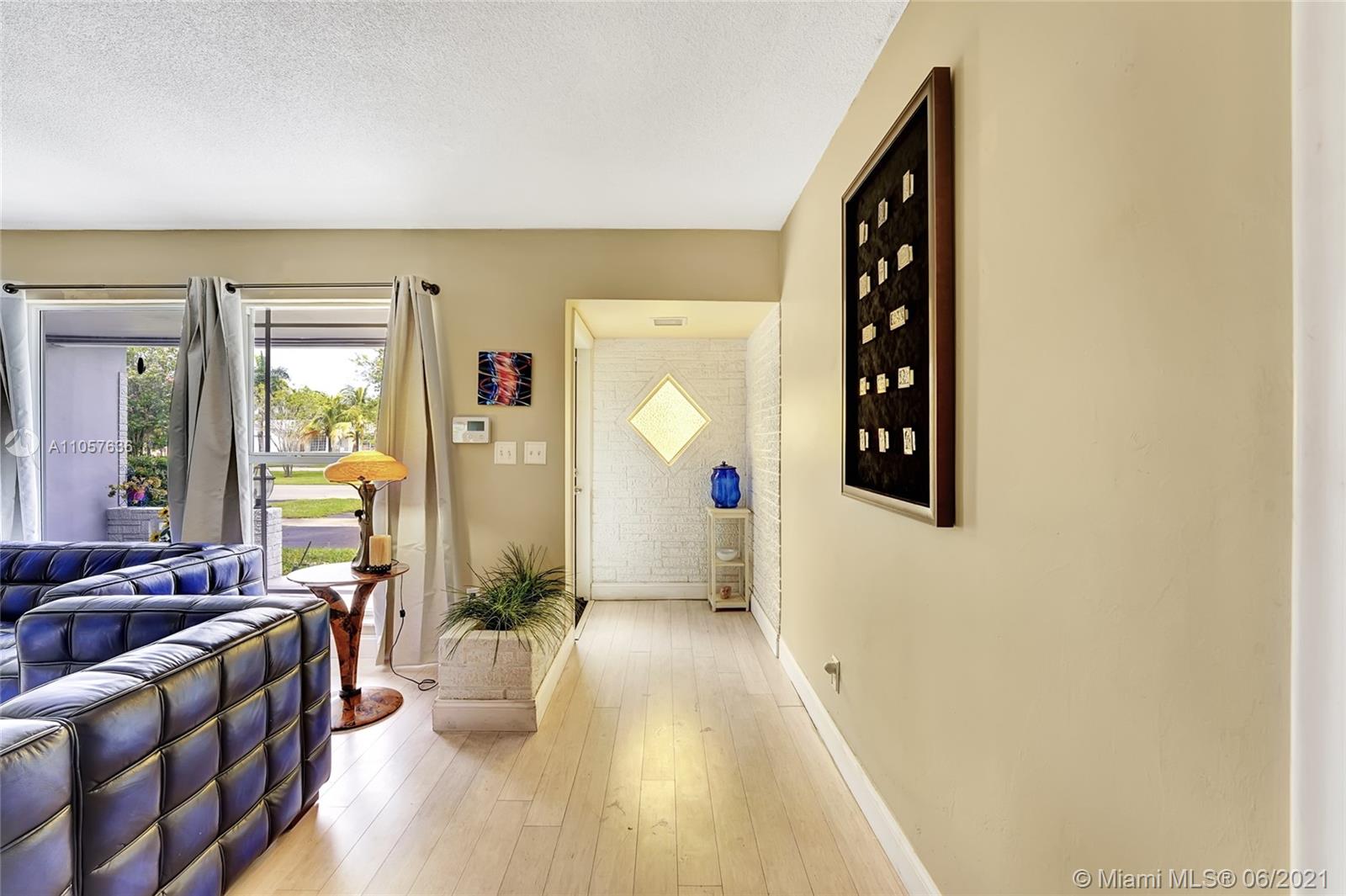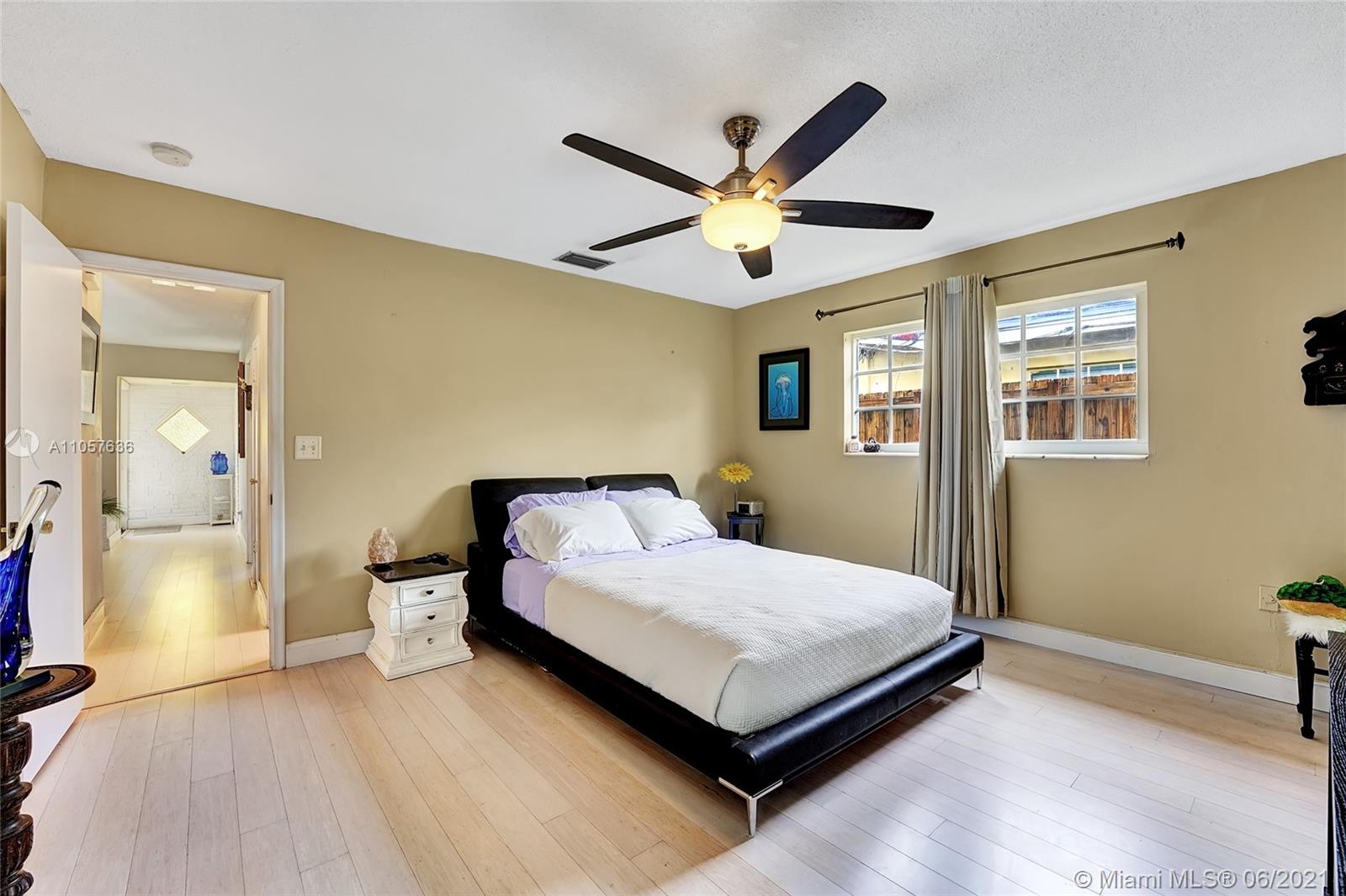 Are you looking for a tropical tranquil home that is great for entertaining & less than 5 miles to Hollywood Beach Then look no further, this 4 Bedroom 2 Bathroom home sits on a spacious 7,673 fully fenced sqft lot. Enter through your foyer & your greeted by the open flowing floor plan and captivating views of the pool. The large kitchen is thoughtfully designed w/ built-in pantry & large pass through window w/ pool bar seating. Triple split floor plan. Spacious bedrooms. Upgraded bamboo flooring throughout. Master suite features walk-in closet w/ built-ins & en-suite cabana bath. French doors lead you from the living space to your screened pool deck w/ covered patio & plenty of yard pass the pool to enjoy! Outdoor storage shed. Impact windows/doors. Large circular driveway & much more!