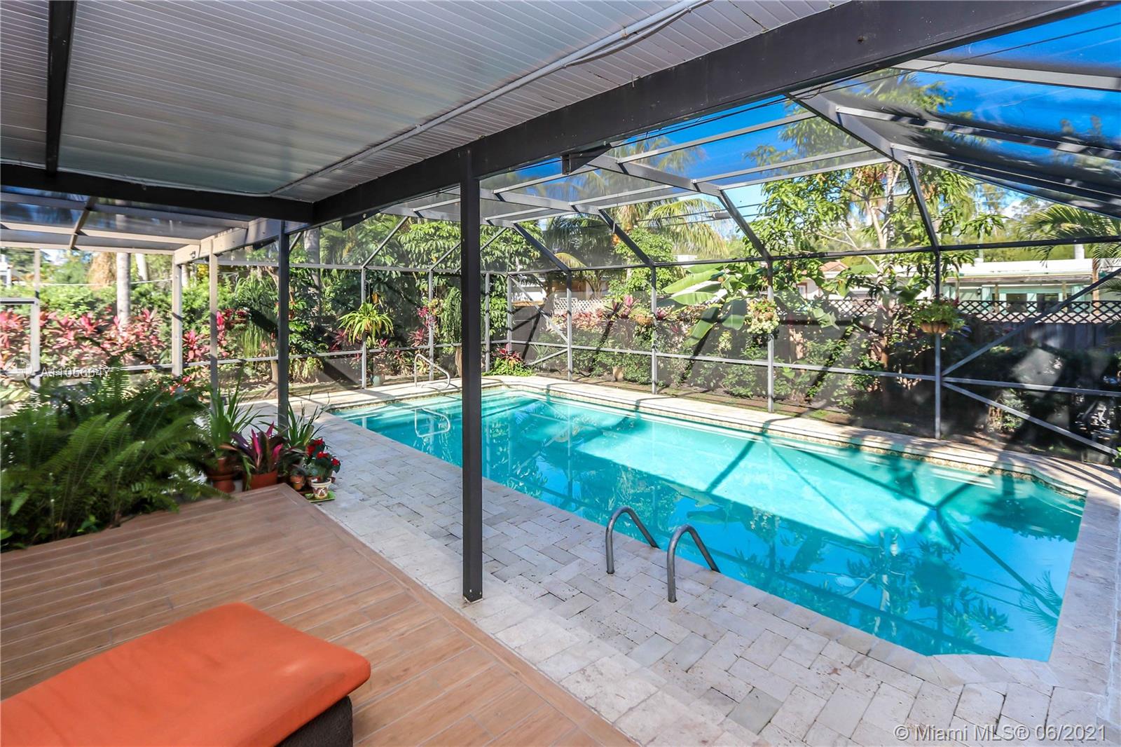 Steps from Northlake! Spacious 2BD, 2BA, 1 car garage, Screened in pool. This home features Tile floors throughout. Newer kitchen w/Exotic Granite Countertops, SS appliances, Dbl oven, New Refrigerator, Farmer sink & extended Island w/sitting area. Most of windows are high impact. Master BR features walk-in closet. Spacious laundry room w/newer washer/dryer. Pantry. Open front porch. Oversized screened in covered back patio, fenced in backyard, perfect for entertaining. Alarm system. Minutes from the beach & downtown Hollywood,