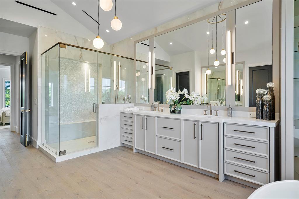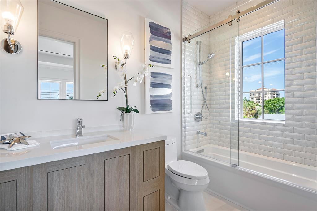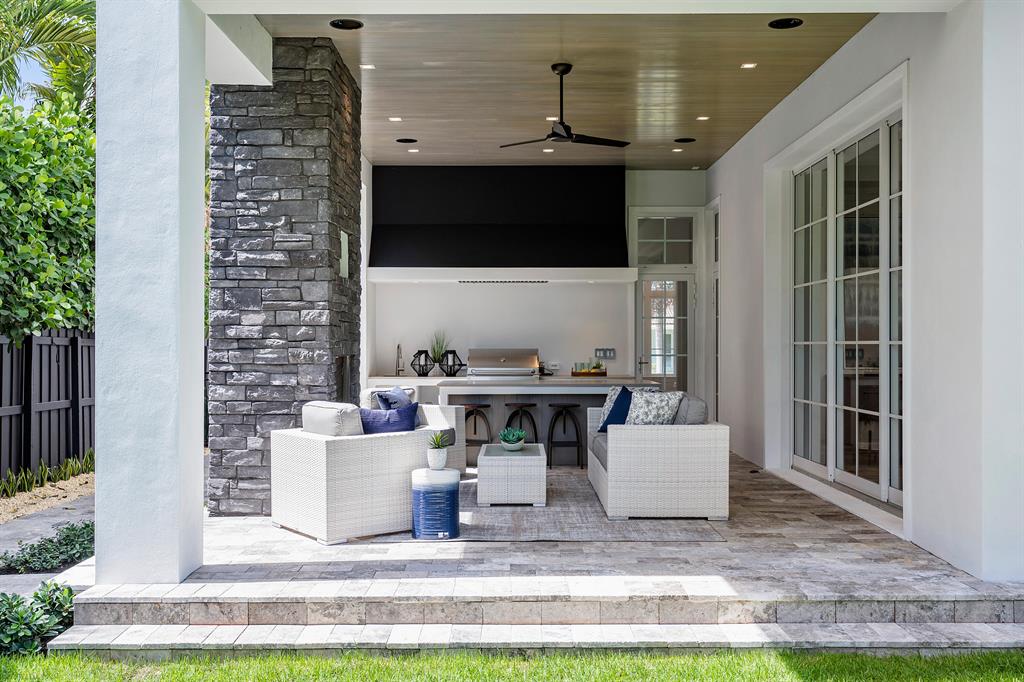 High End Seaside New Construction Estate just completed Located in the exclusive East Boca neighborhood just blocks from the ocean and The Boca Raton Resort. This luxurious, designer home features 4 en-suite bedrooms, 5 bathrooms, 2-car garage and a stunning pool area. Masterfully designed by Sketch A Design Studio & built by Shoreline Building Group; this two-story unique build showcases subtle, sophisticated spaces with beautiful light oak wood floors throughout main areas, vaulted ceilings with cascading chandeliers & elegantly blends warm woods and stone features with sleek industrial finishes. The open-concept main floor boasts a European-style kitchen with Neff cabinetry, hidden butlers pantry, 10 ft* chef's island & Thermador appliances. owners morning bar, his & hers wa