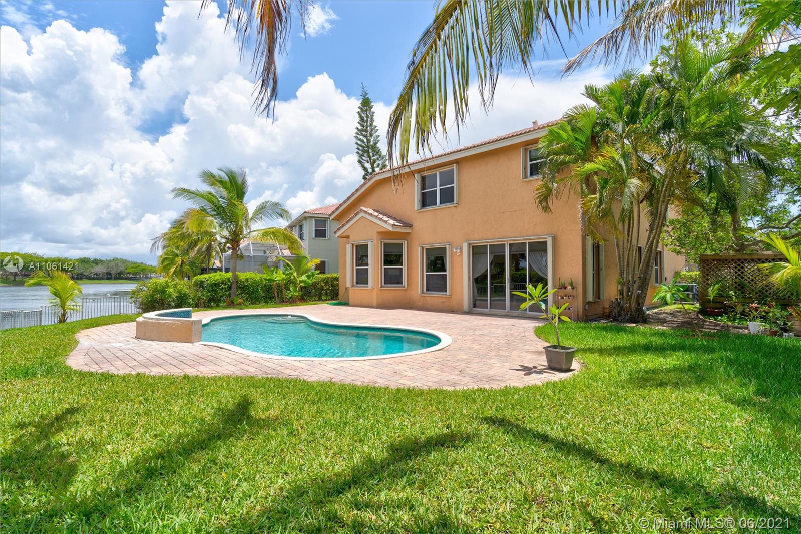 SILVER SHORES LAKEFRONT CONE SHAPE LOT!!! 4 SPACIOUS BEDROOM, 4 BATHROOMS, 1 BEDROOM AND 1 BATHROOM ON LOWER FLOOR, MASTER BEDROOM HAS 2 BATHROOMS, 2 WALKING CLOSETS, THE OTHER 2 ROOMS HAS JACK AND JILL BATHROOM TO SHARE; KITCHEN HAS BREAKFAST AREA WITH BEAUTIFUL POOL AND LAKE VIEWS AND IS ADJACENT TO COZY FAMILY ROOM WITH LAKE AND POOL VIEW AS WELL, ALSO BACKYARD HAS MANGO, PAPAYA, BANANAS, COCONUT TREES AND A BABY AVOCADO TREE, AND SHADED ORCHID HOUSE, HURRICANE SHUTTERS, NEWER DOUBLE A/C, UPGRADED TILE FLOOR, 2 CAR GARAGE, GATED COMMUNITY 24/7 SECURITY GUARDS AT ENTRANCES, AMENITIES INCLUDE GYM, 2 POOLS, PUTT-PUTT GOLF AREA, PLAYGROUNDS, BASKETBALL AND TENNIS COURTS, OUTDOOR FITNESS EQUIPMENT, PAVILION AND CLUBHOUSE RENTALS. LOW HOA MONTHLY FEES $157.OO CLOSE TO HIGHWAYS AND SHOPPING