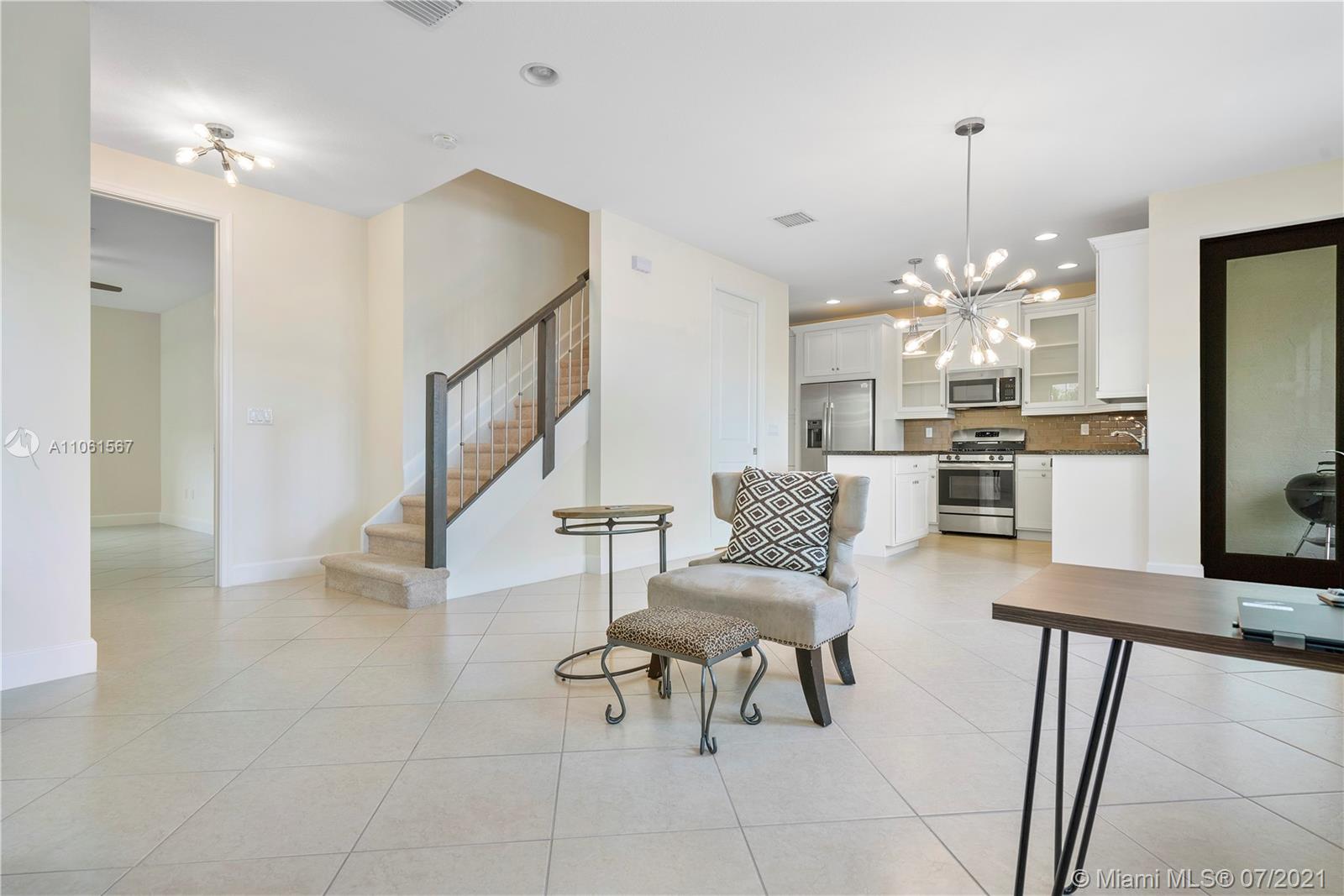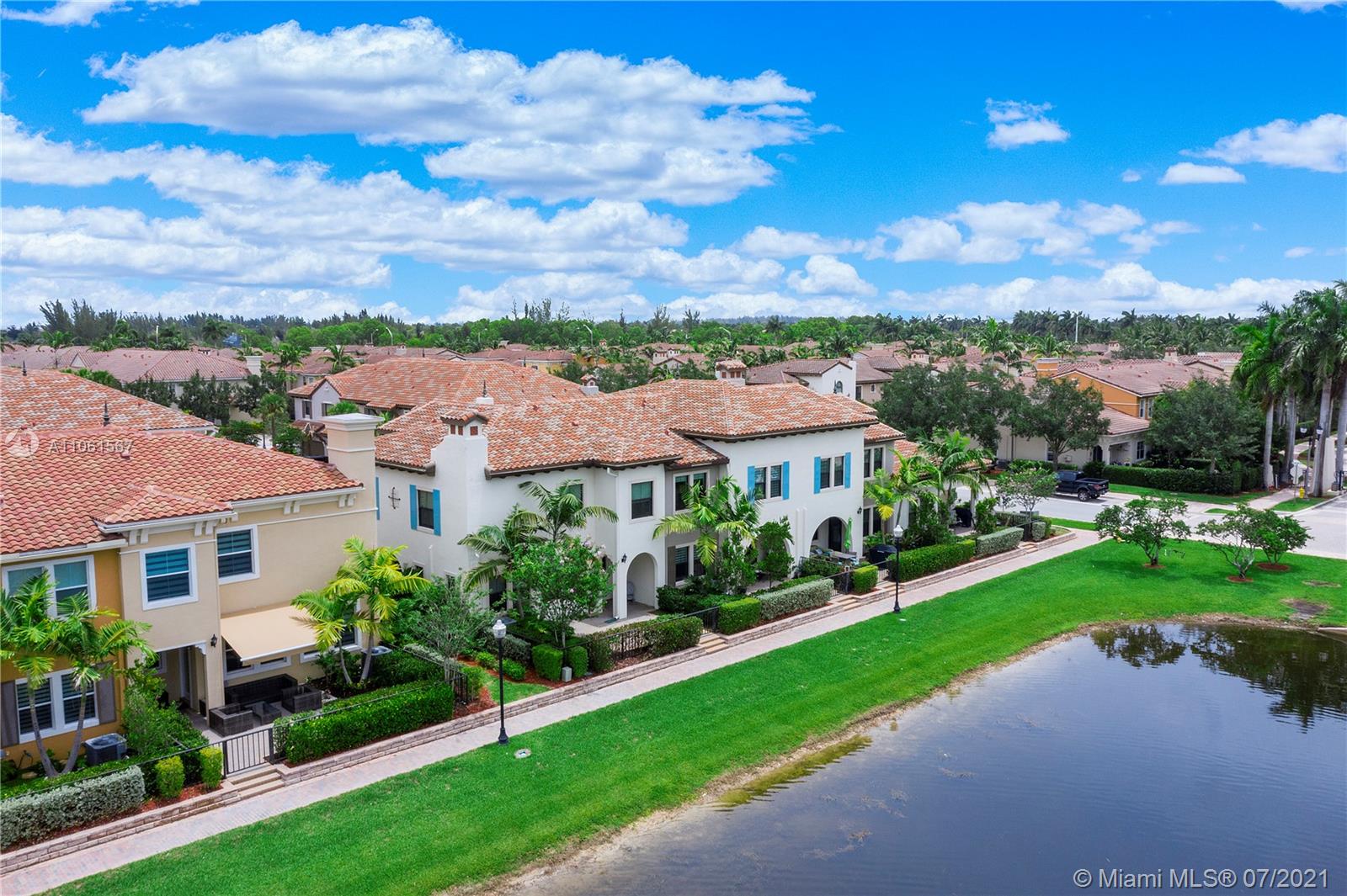2019 Artesia Torino model townhouse with a view of the lake. 4 bedrooms, 3.5 baths with a full suite on the first floor, and a 2 car garage, this home is move-in ready. Lots of storage! All appliances included including a gas range, washer, and a gas dryer. Come sip your morning coffee by the water and then enjoy all this community has to offer. All hurricane IMPACT windows! The Artesia community offers many amenities such, indoor basketball, tennis, gym, business room, pool, and more.