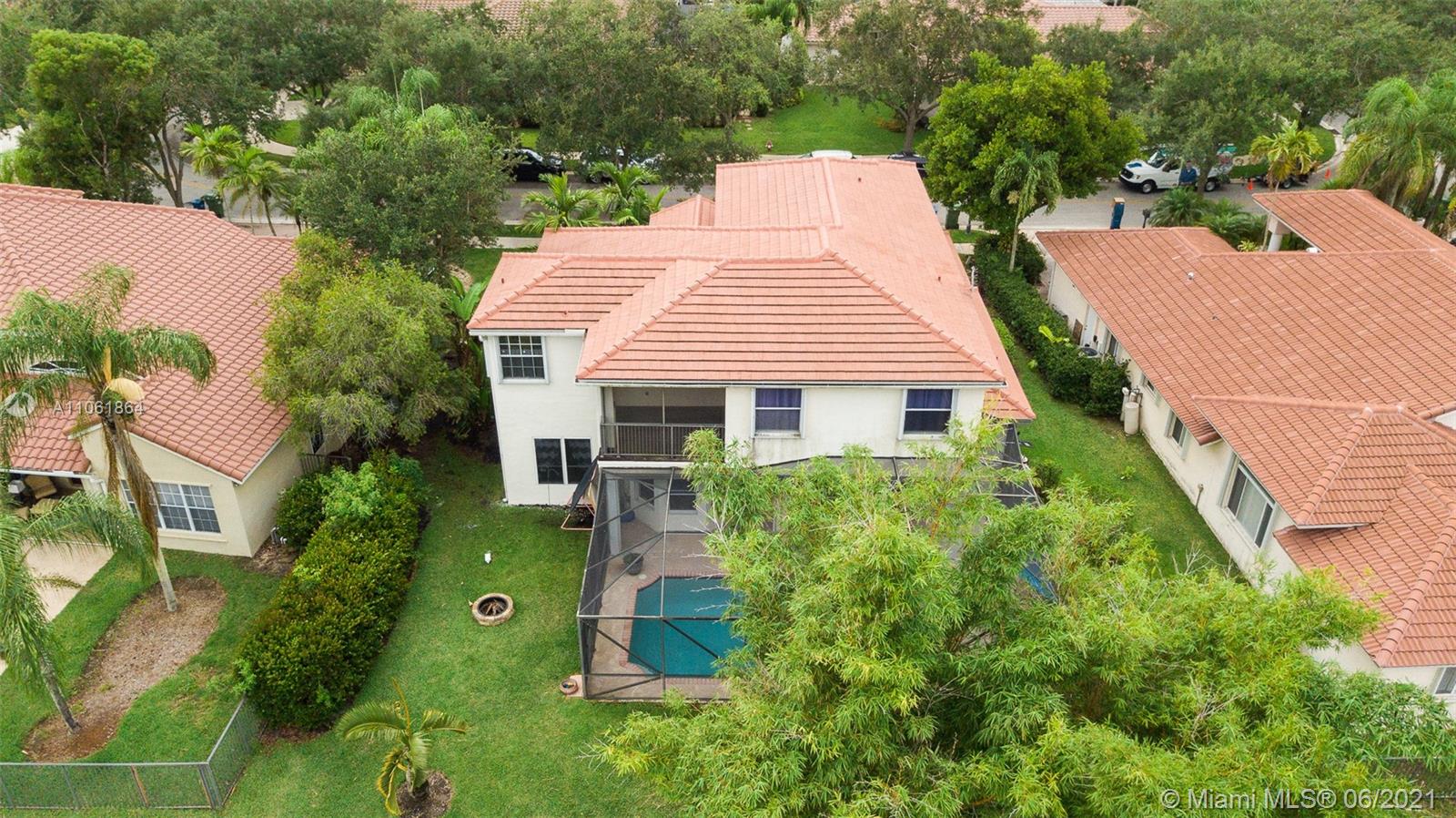 This lovely 5 bedroom, 4 bathroom home features a pool with waterfront view in a quiet Weston Hills neighborhood. Walk into the main floor and you are welcomed by its spectacular vaulted ceilings as well as marble floors throughout and with natural light that pours into the entire first floor. This floor offers large gathering areas like the family room and professional-grade kitchen from where you can view the breathtaking sunsets over the lake, a formal dining room, guest suite alongside a full bathroom, laundry room, and a 3 car garage. Roof, hurricane impact garage door and front doors are newly installed. Upstairs features a grand primary suite with balcony, 1 ensuite bedroom, and 2 additional bedrooms. This home won’t last long with all these great features!