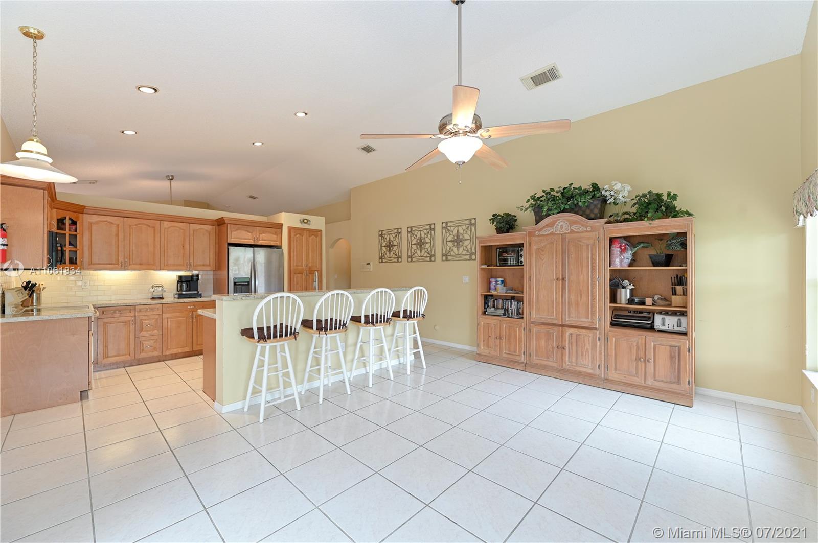 Wonderful 3 Bedroom / 2 Bathroom home in the desirable community of Huntington Gardens with charming lake views. The home is warm and welcoming with volume ceilings and a spacious floor plan creating ease of use for large gatherings and entertaining. Kitchen features updated cabinets and granite counter tops, ceramic tile throughout with laminate floors in the bedrooms and a double car garage. Security cameras and system in place will transfer over to new owner. A+ rates school surround this community with easy access to major roads, I-75, Miramar Memorial Hospital + premier shopping & dining. ***NEW PHOTOS COMING SOON***