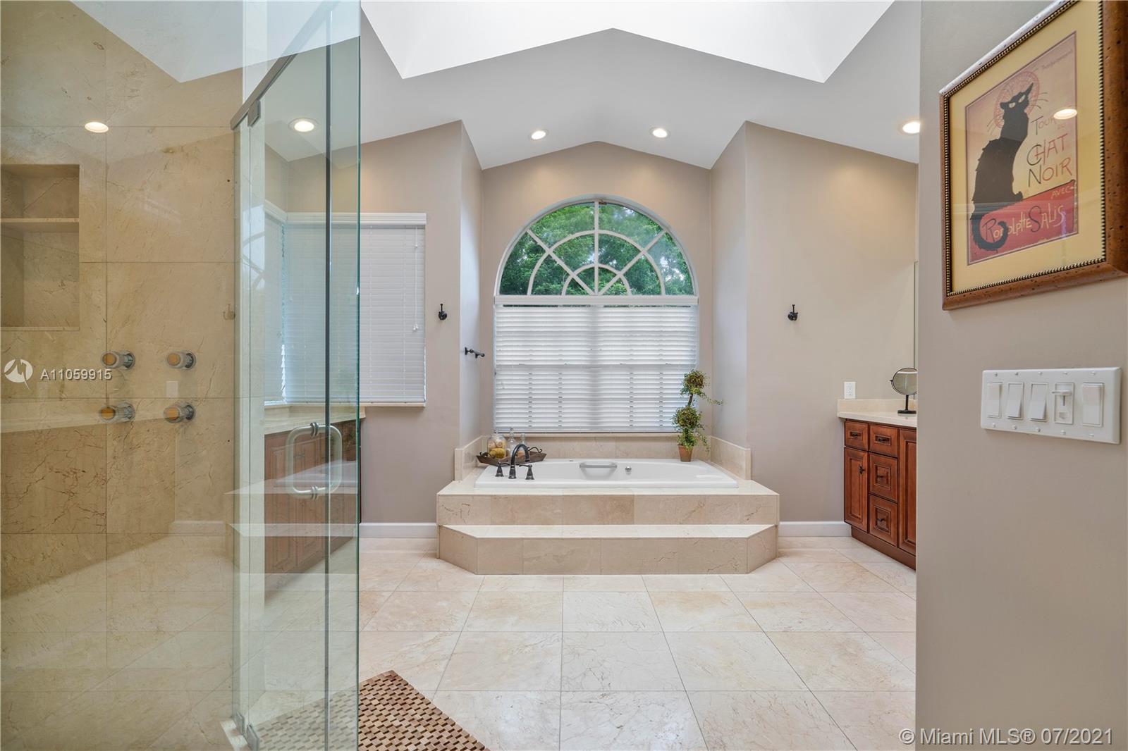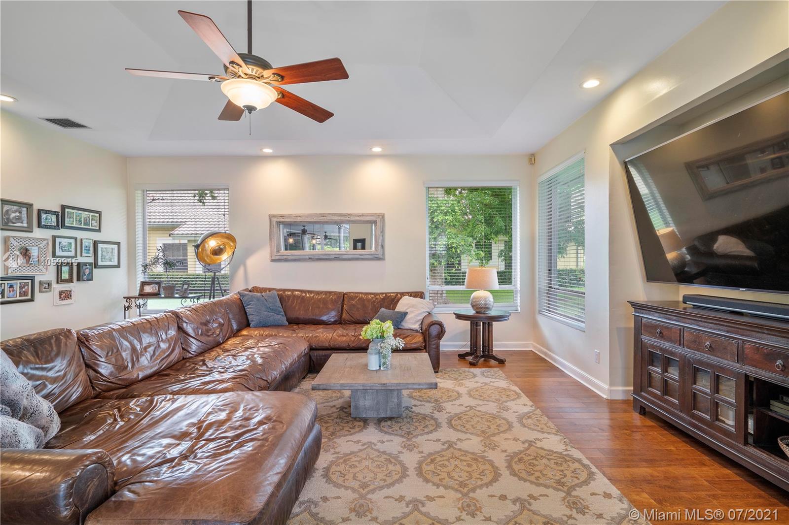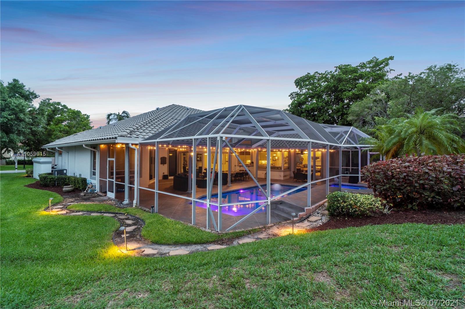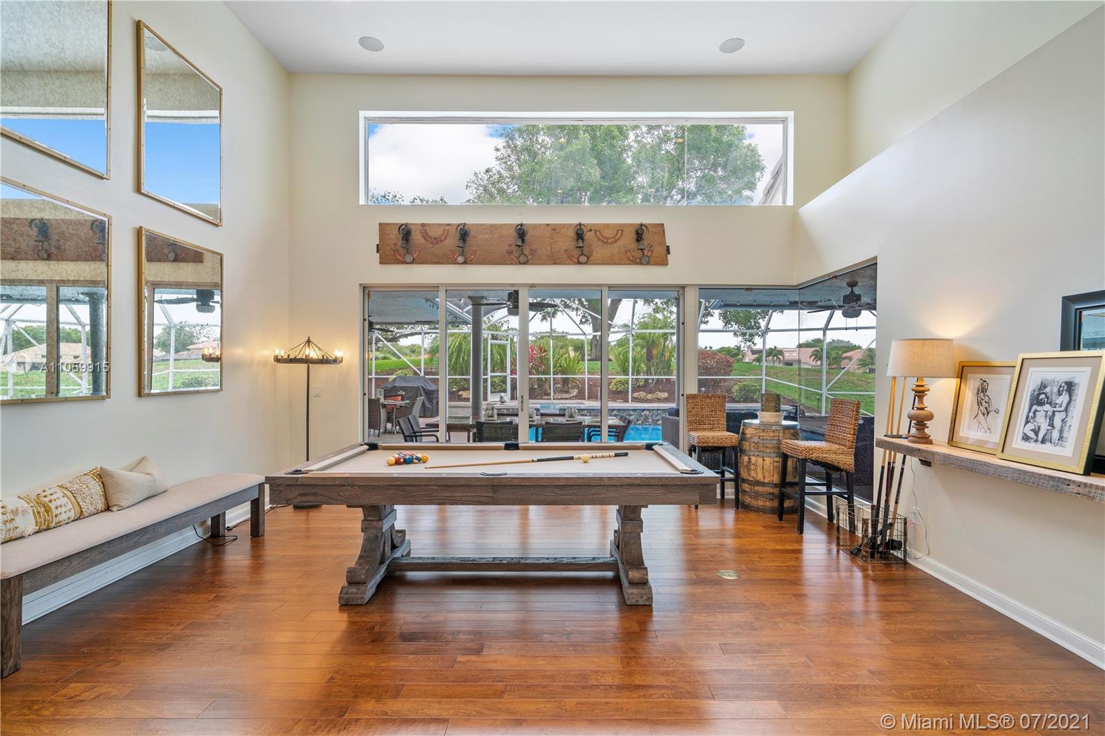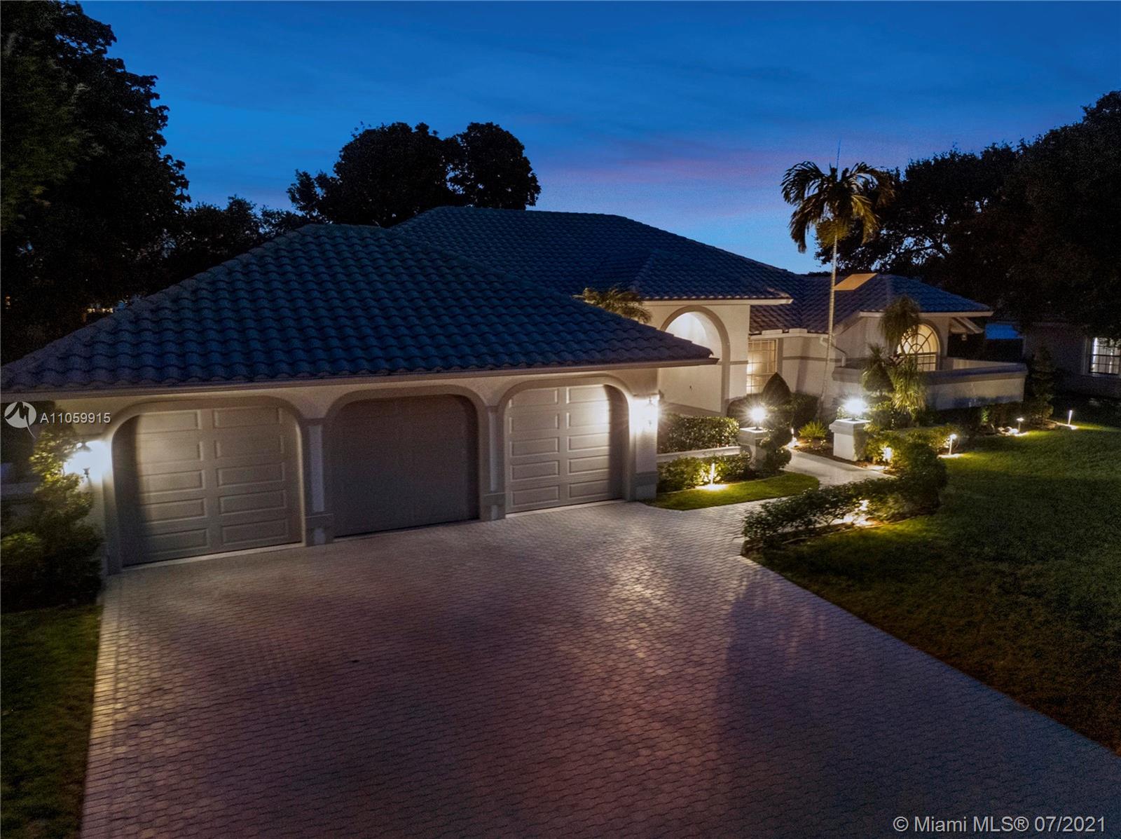 Beautiful 5-Bed, 4-Bath Pool Home W/ 3-Car Garage & Panoramic Views Of Golf 5th Hole & Lake Located In Prestigious Eagle Trace Coral Springs. 24 x 24" Tile Floors In Common Areas & Hardwood/Wood-Plank Tile In Bedrooms. Custom Upgraded Eat-In Kitchen W/Quartz Counters/Backsplash, Kitchen Aid SS Appliances, Wood Cabinets, Pantry W/Pull-Outs, & Recessed Lighting. Formal Dining Room, Large Open Living Room, & Mudroom W/Samsung Washer/Dryer & Farmhouse Sink. Hall Cabana Bath W/Frameless Shower. 4 Guest Bedrooms, 1 EnSuite W/Quartz Counters, Wood Vanity & Shower/Tub. French Doors Open To Master Suite W/Sitting Area & Bath W/Dual Head Shower, Jacuzzi Tub, Custom Built-In Closets, & Bay Window. Resort Style Yard W/Saline Heated Pool/Spa, Lush Landscaping W/Lighting. 2018/2019 3 Zone AC, Must See!