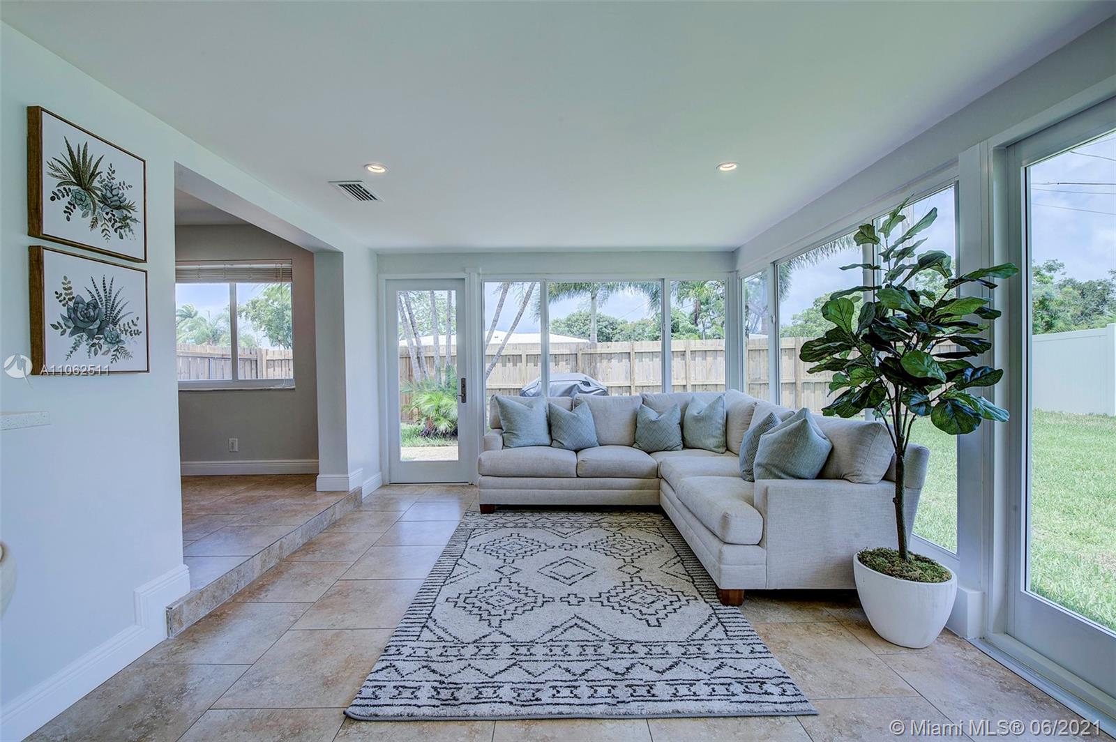 Beautifully Renovated Corner Lot in the Heart of the Highly Desirable Imperial Point. This spacious 3/2 is energy efficient with all new impact windows and doors, new A/C which was replaced in 2018 and all new LED lighting throughout. This property features a Gorgeous Sunroom with Panoramic views which let in lots of natural light through the new custom impact windows. The Kitchen was fully remodeled with all new cabinetry and stainless steal appliances. Other new renovations include exterior re-stucco, paint inside and out, fully landscaped, roof coating, new bathroom cabinets, and new sprinkler system installed. Perfect Move in Ready Home in Imperial Point!