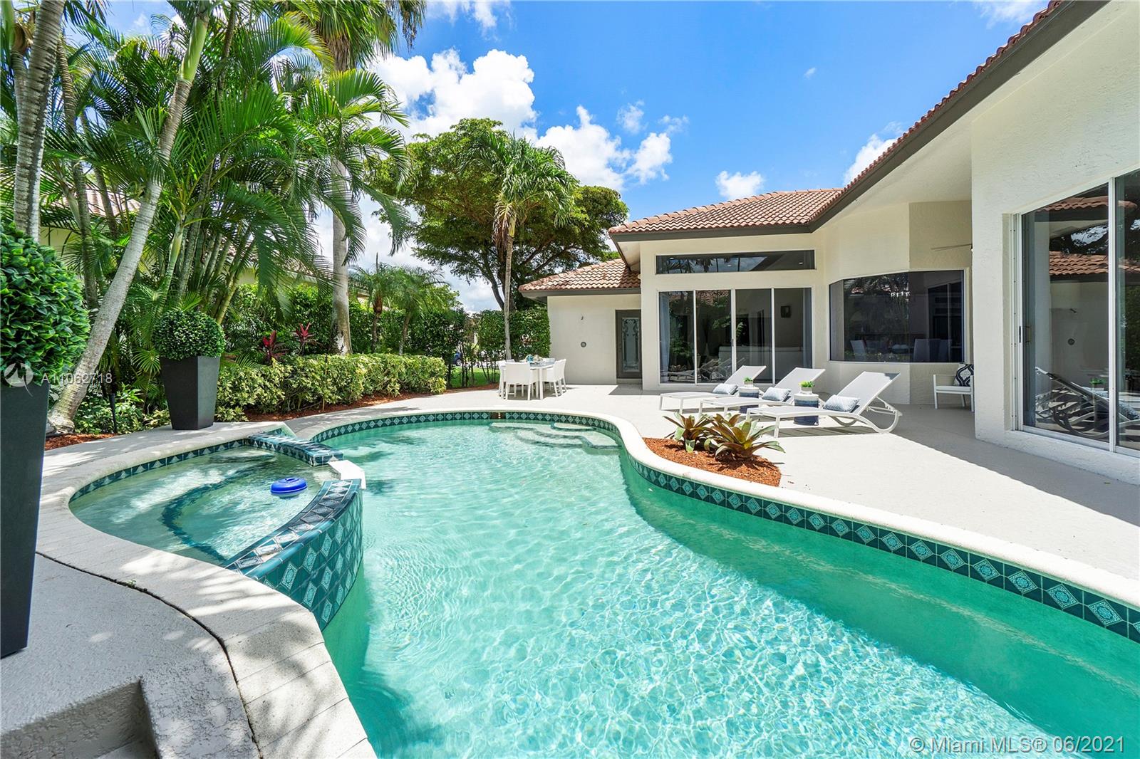 Welcome home to the premier gated community of Meadow Run! This beautiful 5/3 with a den features new floors, contemporary eat in kitchen, LED lighting, quartz countertops throughout, crown molding, remote control fans and designer chandeliers. THe master bathroom boasts elegance with its free standing tub, LED state of the art shower system and quartz countertops. Enjoy your morning coffee in your tropical oasis or a cocktail at the end of the day while relaxing in your waterfall jacuzzi. 2 new a/c units, Electrolux washing machine/dryer, a true three car garage with a closet in it and a fabulous dressing room that is perfect to display his/hers shoes, handbags and clothing. All lighting, fans and window treatments stay. $950 capital contribution to Meadow Run due at closing.