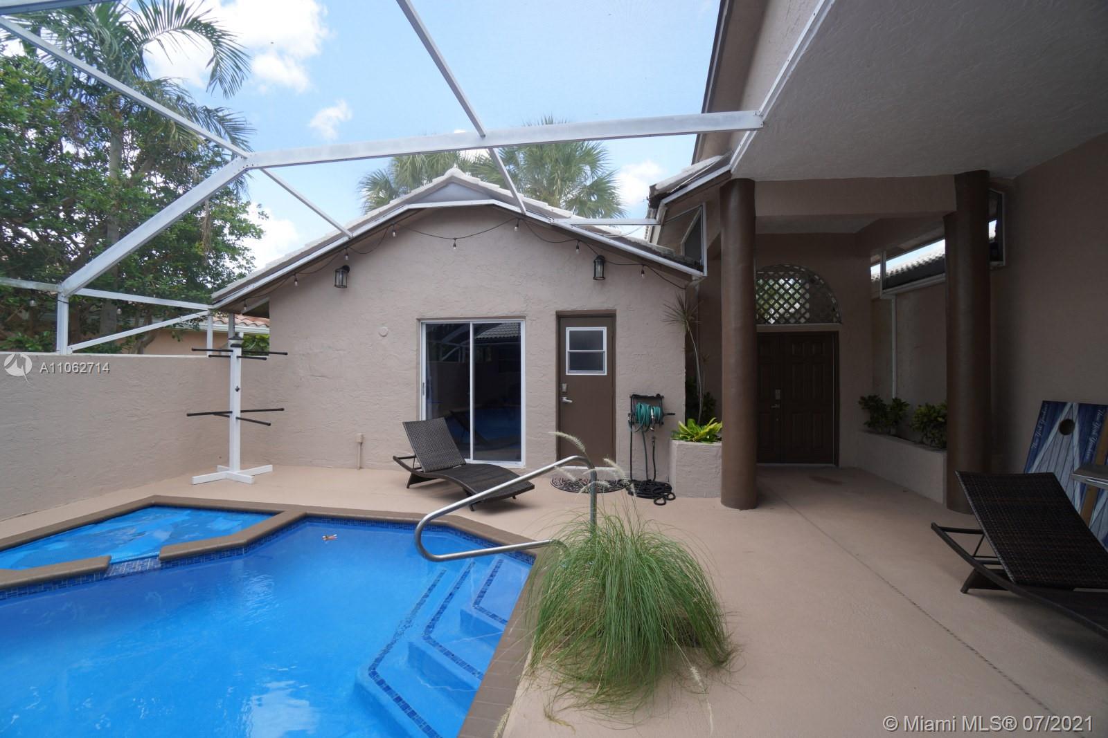 JUST REDUCED! Come Relax and live in this spacious, beautiful pool home with courtyard entrance that has relaxing view of the pool area and lake from the main living area. Totally updated in 2016 with granite countertops, SS appliances, wood cabinets, new flooring, etc. Quad Spit bedroom floor plan, crown molding, sky lights, loft area for media room/office, fire place, etc. Roof replaced in 2007. Impact windows on outside and hurricane approved film protection on the courtyard windows, detach maid/in-law quarters. Located in the Boca Winds complex that has children play areas, 2 pools & tennis courts. A great family community with all school districts on the Excellent List for the last three years! Home is tenant occupied until Aug 31. Appointments only at selected times & days.