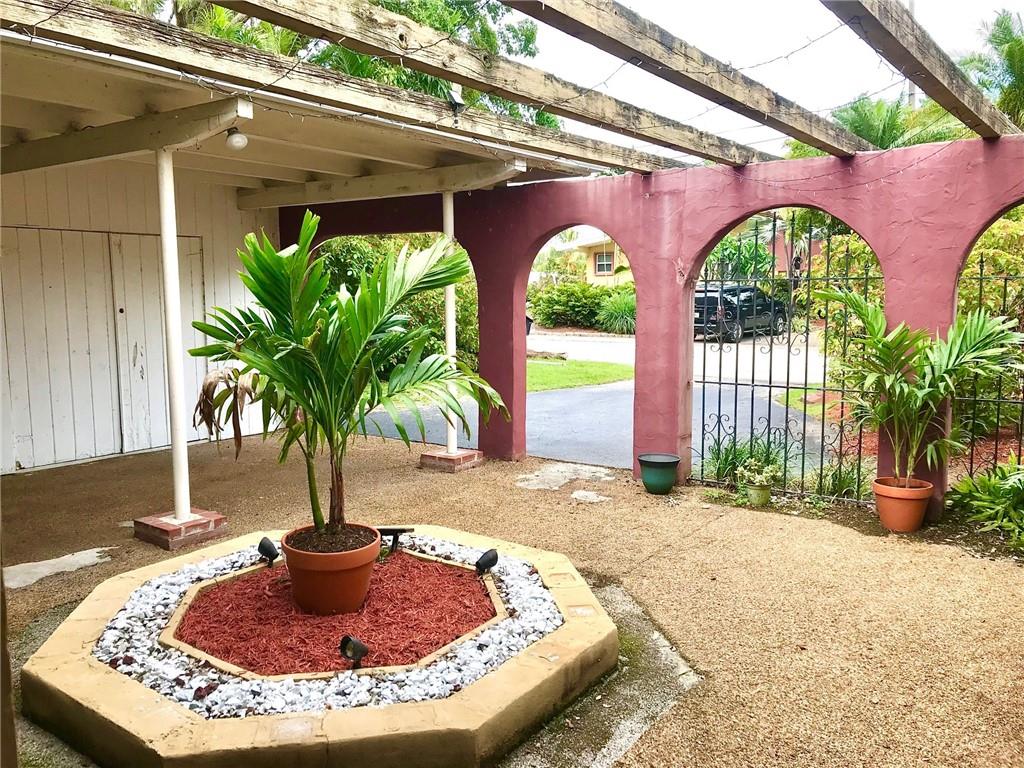 Spacious ranch style home in the waterfront neighborhood of Lauderdale Isles. Community boat ramp just around the corner. Open floorplan with vaulted beam ceilings throughout. Convenient access to the park right from your very own backyard. Charming Florida room with wood burning fireplace. Unique kitchen layout has atrium dining area. Completely fenced and private backyard. Relax out back on your deck and access the park from the gate on your fence. Enter the home through the front arches and wrought iron fence adorning the courtyard and covered parking. Dead end street with very little traffic. No HOA. A great place to call home.