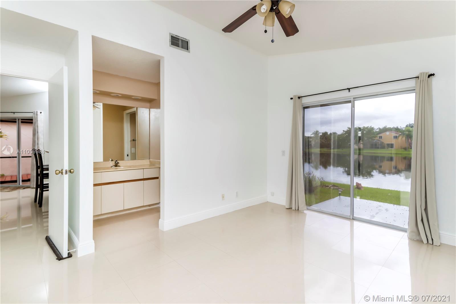 Beautiful 2/2 Weston home on a lake. Beautiful views from the patio, kitchen and master bedroom. Kitchen has a bay window that overlooks the lake, sliding doors that lead to the screened in spacious patio. Master bedroom has a walk-in closet and sliding doors that overlook the lake as well. Come see this home!