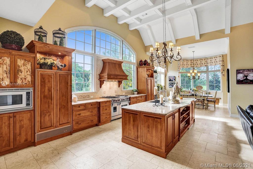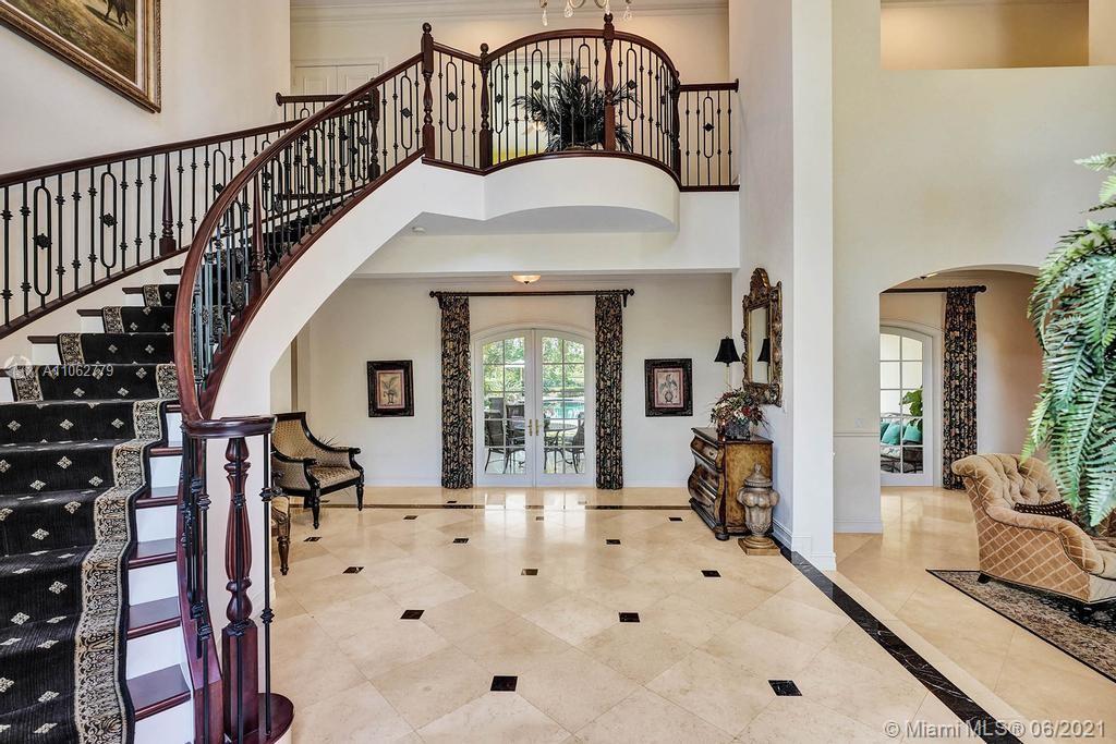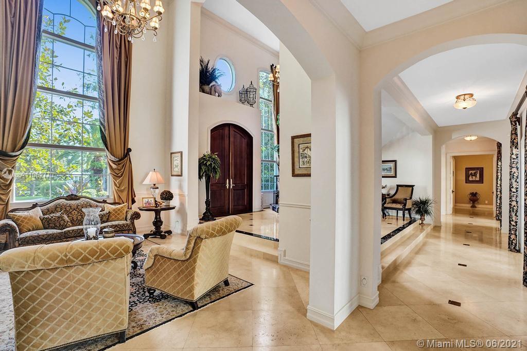 The moment you pass through the gated entrance & approach this spectacular private residence, you are greeted by elegant French Colonial architecture nestled in a wonderland of cypress & palm. Situated on 2 acres, this property offers luxury, recreation & plenty of space while remaining warm & inviting. A blend of marble & wood floors, custom moldings & coffered ceilings stretch throughout the interior. The open planned kitchen is washed in natural light & perfect for entertaining with oversized island & butler's pantry. The spacious owner's suite has a sitting area, wet bar & walk in closets. Additional features include city water & sewer, impact windows, media room, 2 gas fireplaces, 4 car garage, outdoor kitchen, resort style pool & a gazebo to watch the beautiful waterfront sunsets.