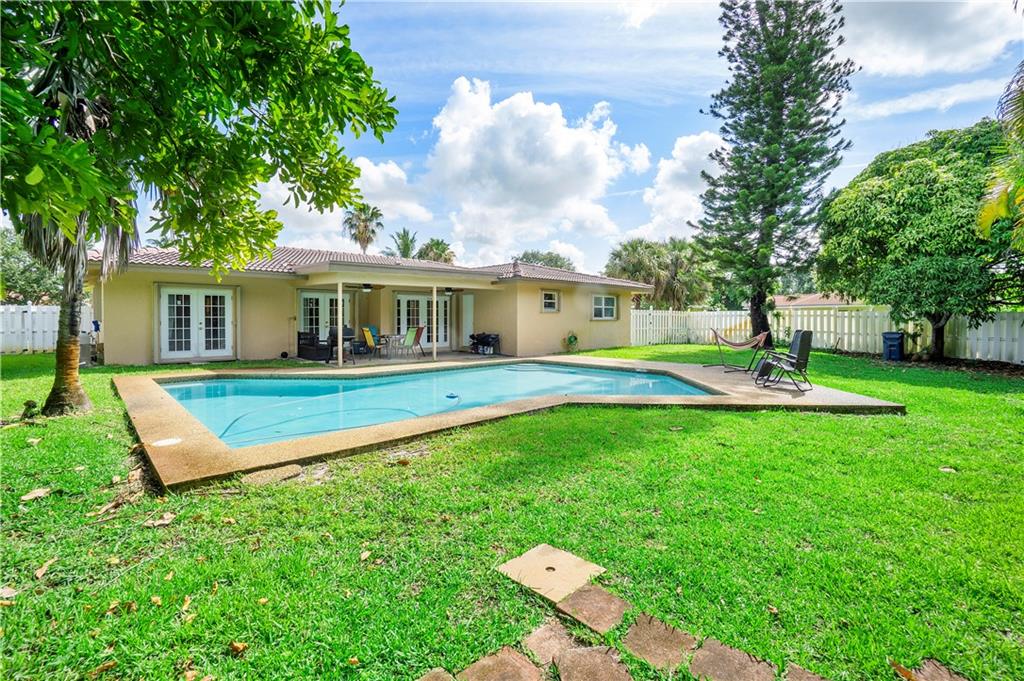 This 3 BED / 2 BATH home located in desirable Deer Run Springs is perfect for those looking to have more living and outdoor space. This property features a formal living and dining room, an open-concept eat-in kitchen, granite countertops, and a spacious family room with french doors and accordion hurricane shutters. The primary and secondary bedrooms are oversized and both bathrooms include showers with dual sink vanities and granite countertops. This home sits on a corner lot that is almost 13,000 sqft and it has a privacy fence, two driveways, lots of green space, fruit trees, and a beautiful swimming pool. Hurry hurry this one will not last!!!
