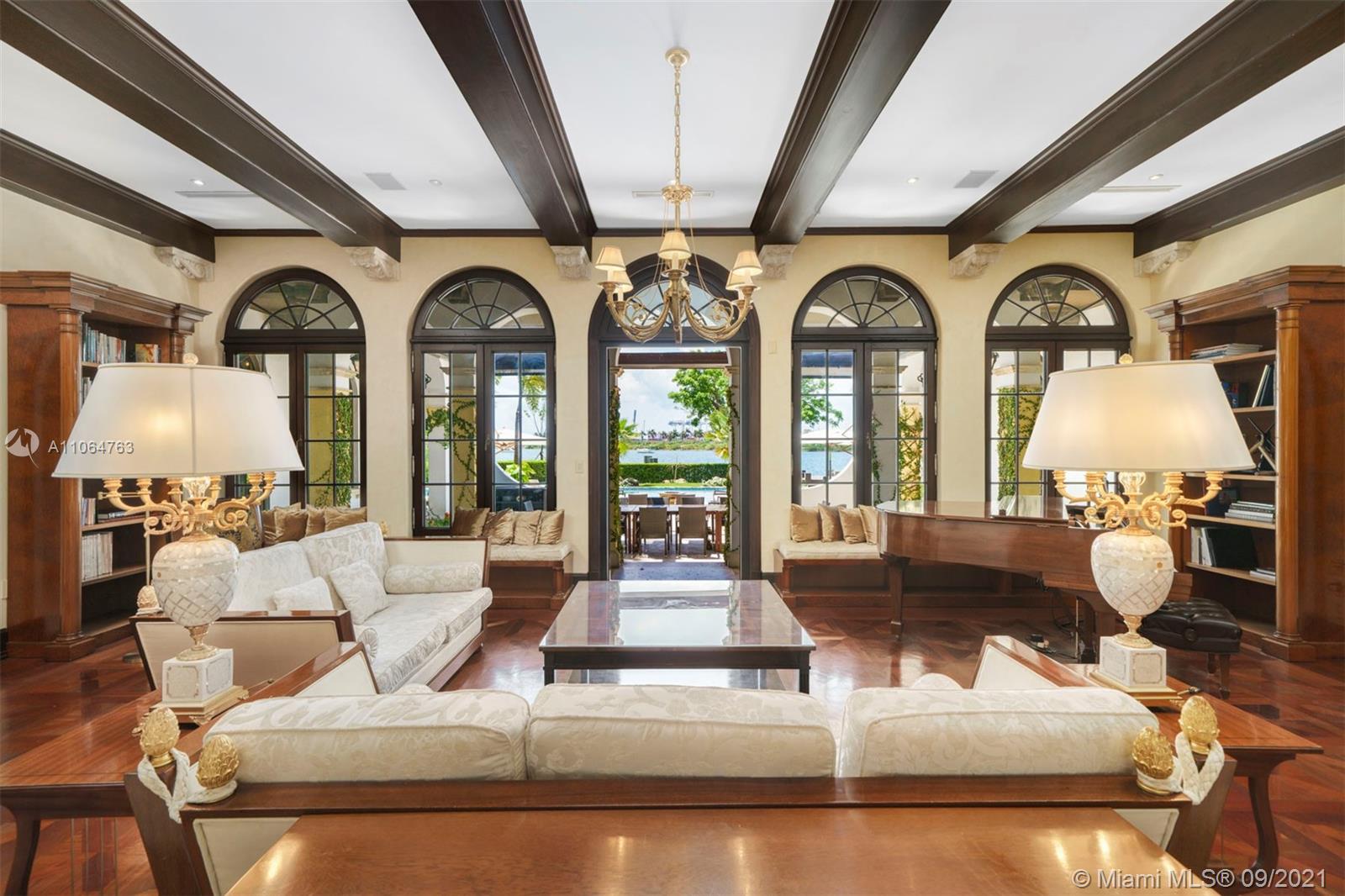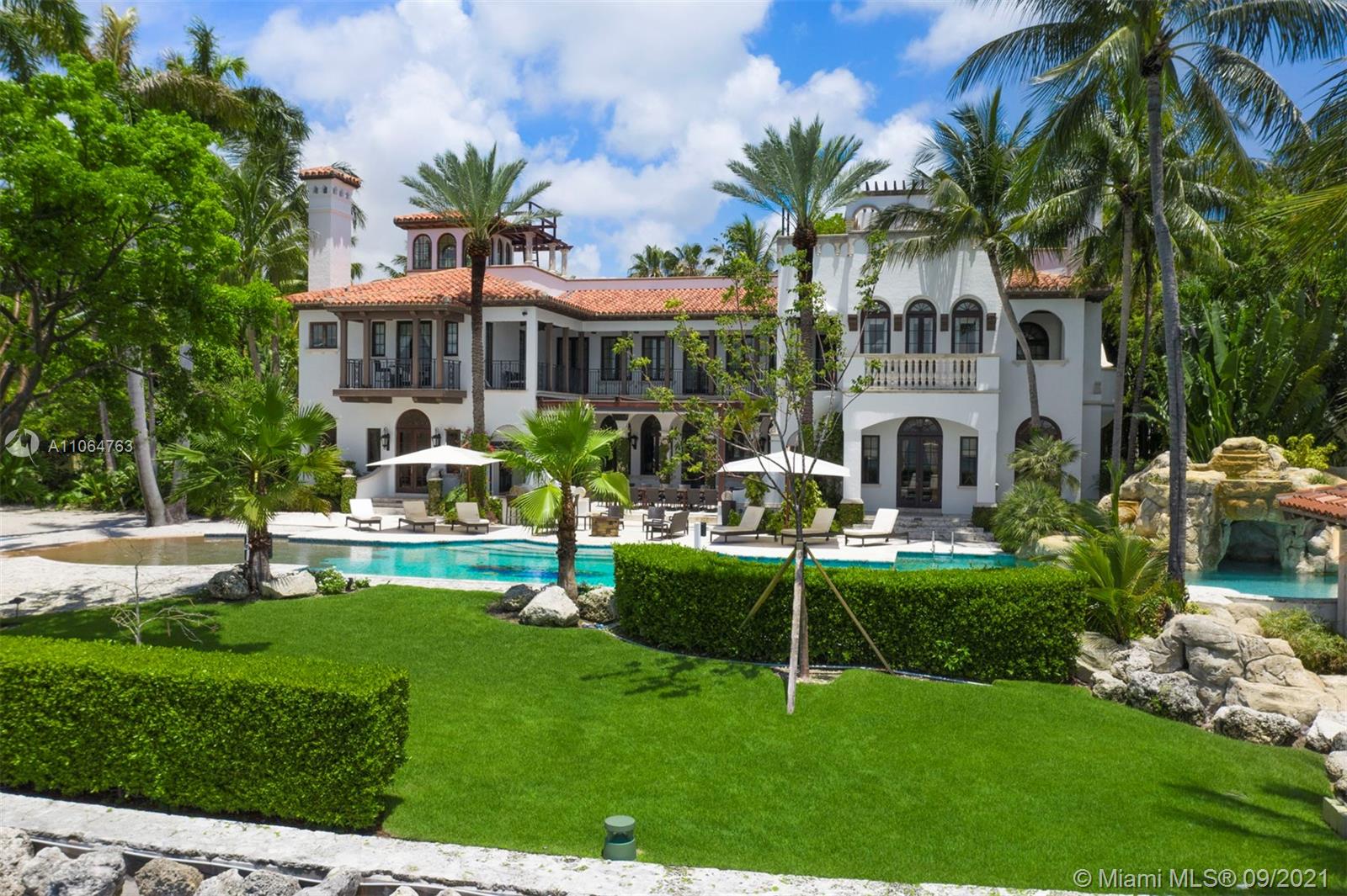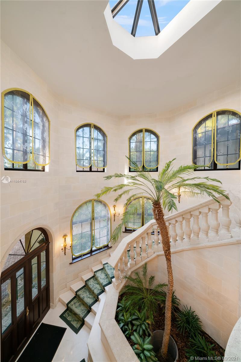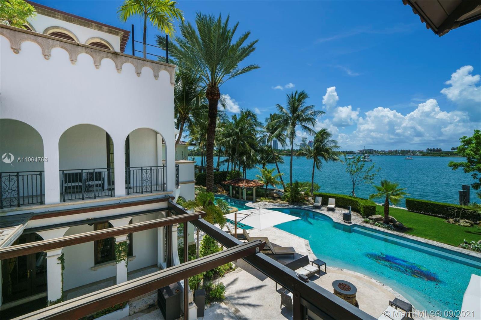 The property sits on a huge double pie-shaped lot with bay views & views of Star Island. A private playground with endless amenities. From the temperature controlled wine cellar, to the rooftop & groundfloor jacuzzis. As you enter, you’re greeted by its 35-FT foyer with its interior courtyard & inside, you’ll find a fully equipped gym, a cinema, along with Crestron smart operating systems. Step out to the tropical oasis with a resort style 120-FT long pool, Jacuzzi, a volleyball court, a fire pit, a waterfall slide, cabana bath, pool built-in bar stools, BBQ and an outdoor dining area with a custom built retractable awning that encloses the entire space. This property offers a rare dock capable of accommodating large yachts.