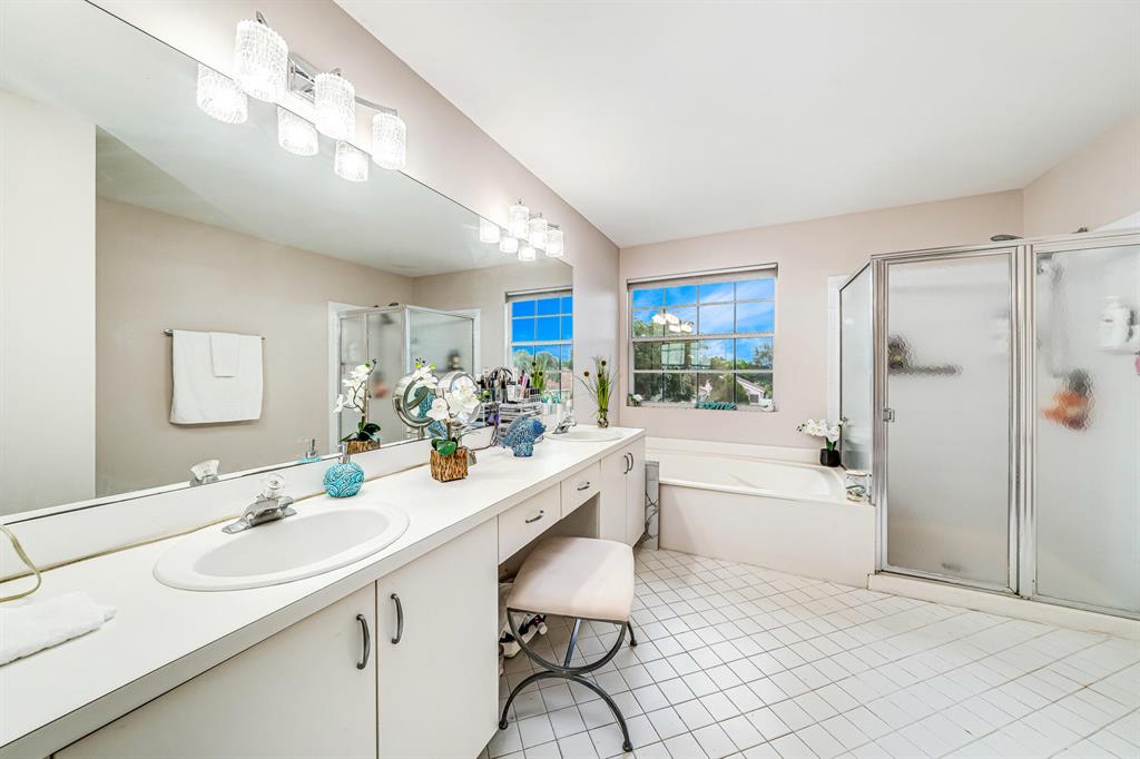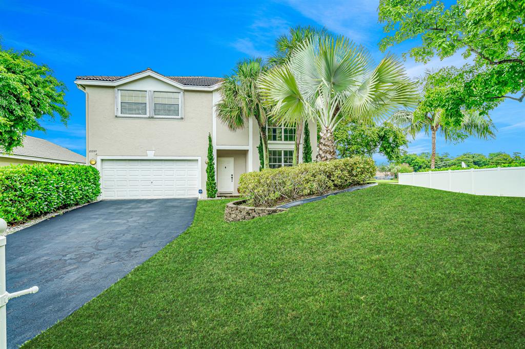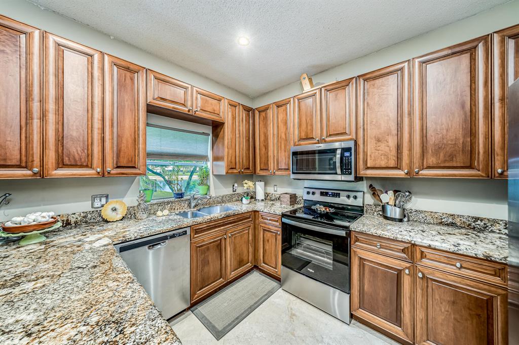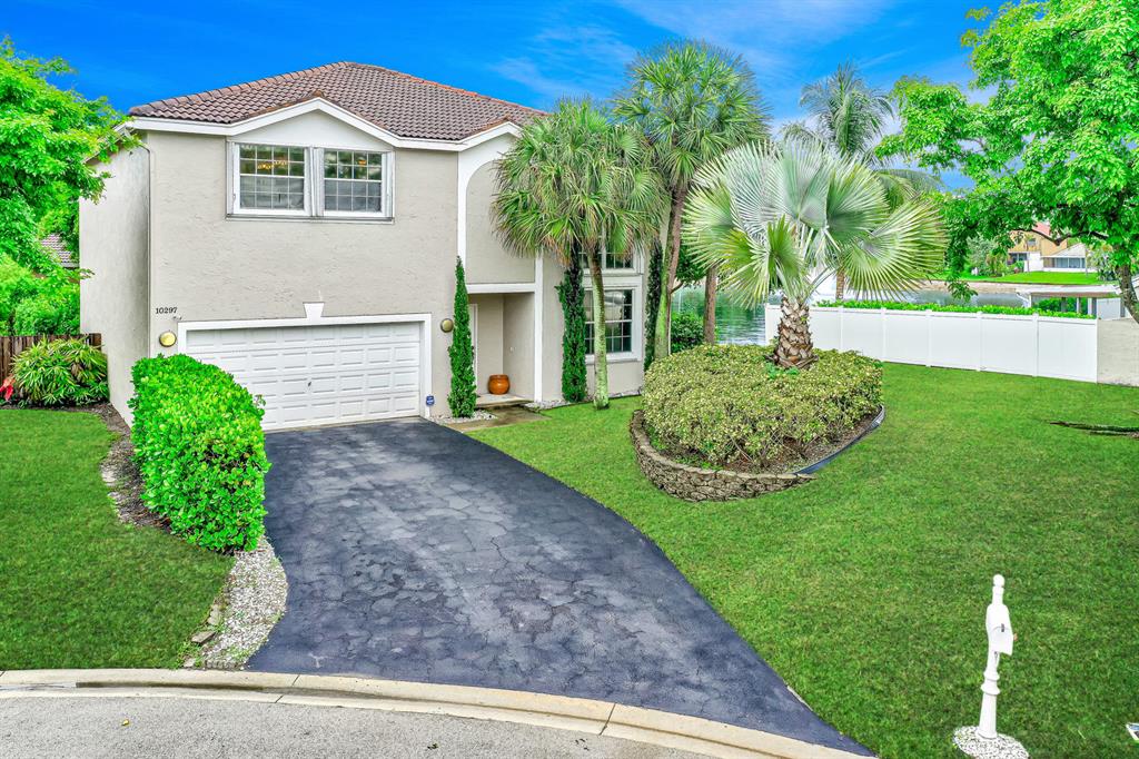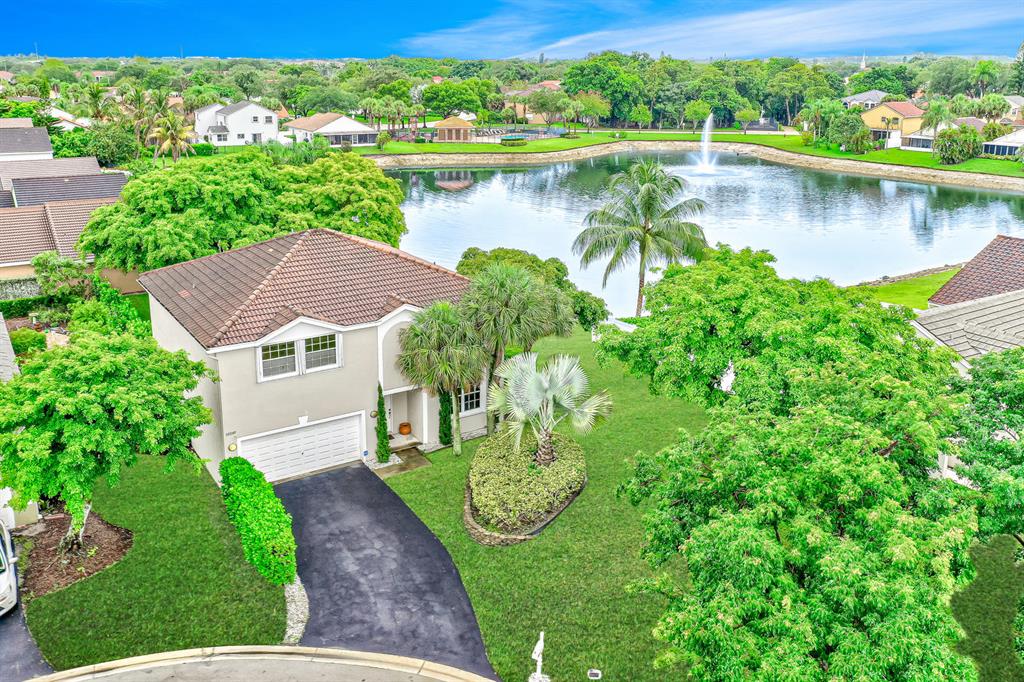 Spacious Waterfront Renovated Home on the largest lot in the community featuring 4 bedrooms, 2.5 baths, & 2 Car Garage, on a cul-de-sac. Dramatic entrance w/soaring 2 story volume ceilings & picturesque windows. Enjoy the sense of openness, volume, & space. Downstairs features travertine/all 4 bedrooms are upstairs w/real hard wood flooring plus wood staircase. Gourmet chef's kitchen with wood cabinets, granite counter tops, Plus brand new SS Whirlpool appliances. Sunny eat-in area and then a family room. Hunter-Douglas Blinds. Large inside laundry room w/LG Washer and Dryer. Everything has been lovingly maintained and well thought out. Lights can be turned on from your cell phone. Largest lot ''by far''