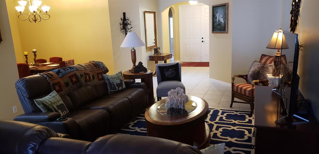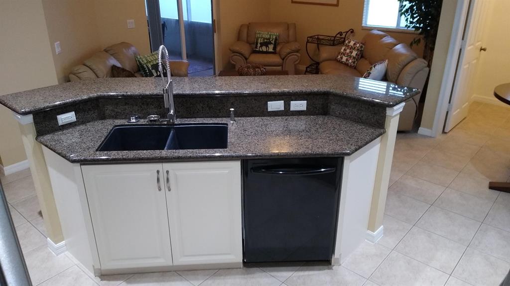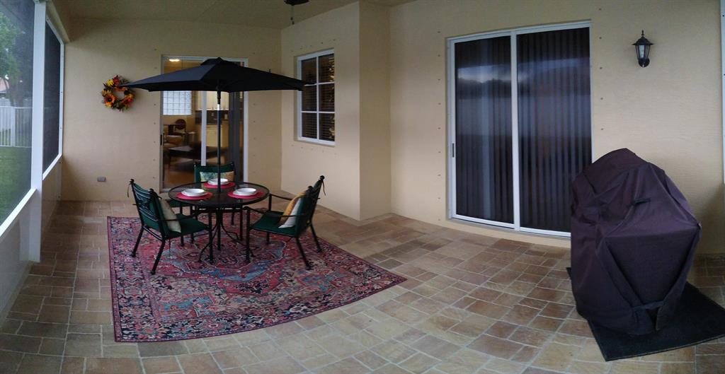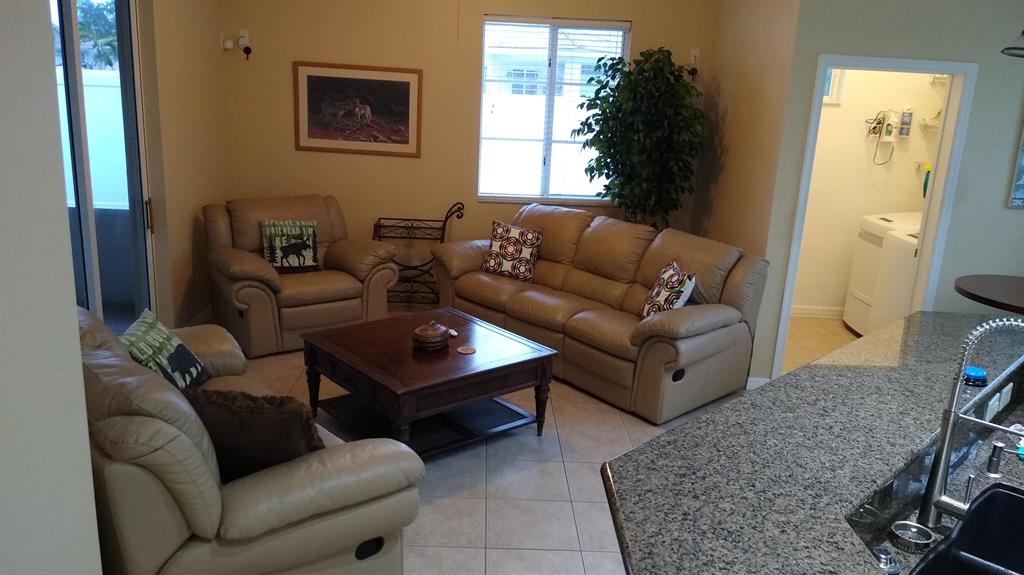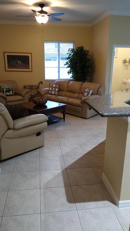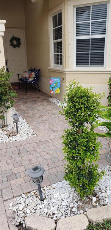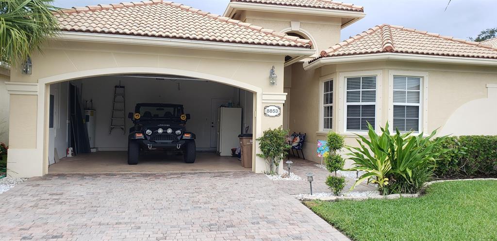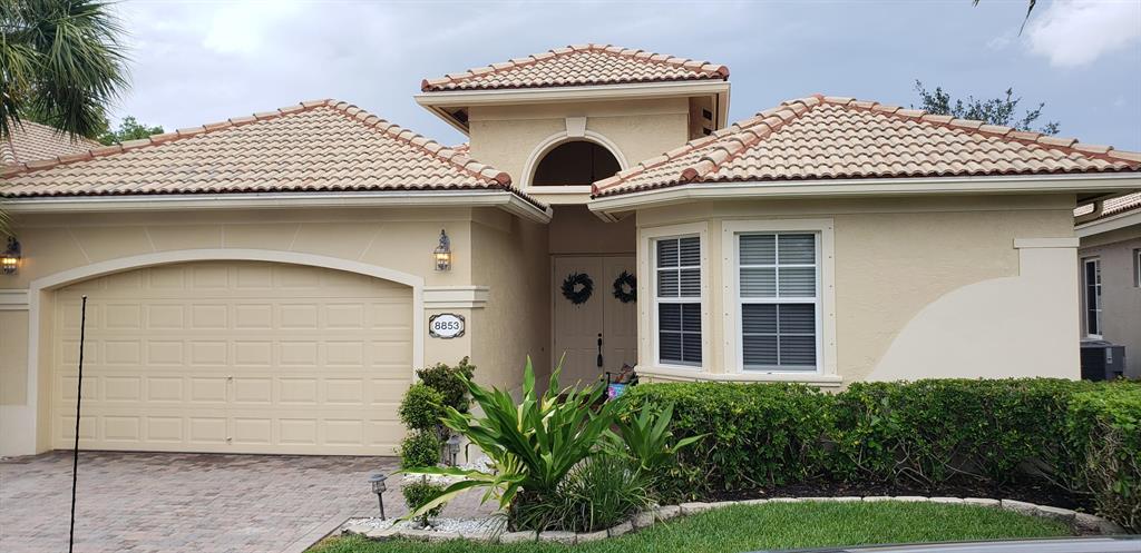 This former model has granite countertops and backsplash, 42 inch cabinets, tile in living areas, newer carpet in bedrooms, crown moulding, 2 year old stainless steel appliances, 3 year old Lennox AC system, new vanity, taps and toilet in guest bath, new toilets and faucets in all baths and new faucet and disposal in kitchen. Master bed/bath is spacious with 2 closets (one walk-in), power jacuzzi tub, separate shower and water closet. Huge screened patio with pavers and 6 foot privacy fence. High ceilings throughout. HOA includes lawn maintenance, basic cable, monitored security, gate staffed 24/7, clubhouse with fitness center, pool, tennis, pickleball, basketball, sauna. Easy access to the turnpike, airport and downtown WPB.