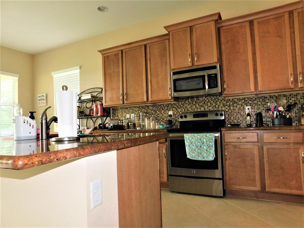 Wow! Porto Sol community! This amazing home offers: Large living room with diagonally laid tile. high hat lighting. Formal dining room, Kitchen has granite tops with wood cabinets, stainless appliances, tile backsplash and nook breakfast area. Large master bedroom offers 2 walk in closets, wood laminate flooring. Master bath has marble bath tops with double sinks and make up area with wood cabinets and huge walk in shower. A/C laundry room with washer and dryer and sink with cabinets. Sit on your own covered back patio with lake view.