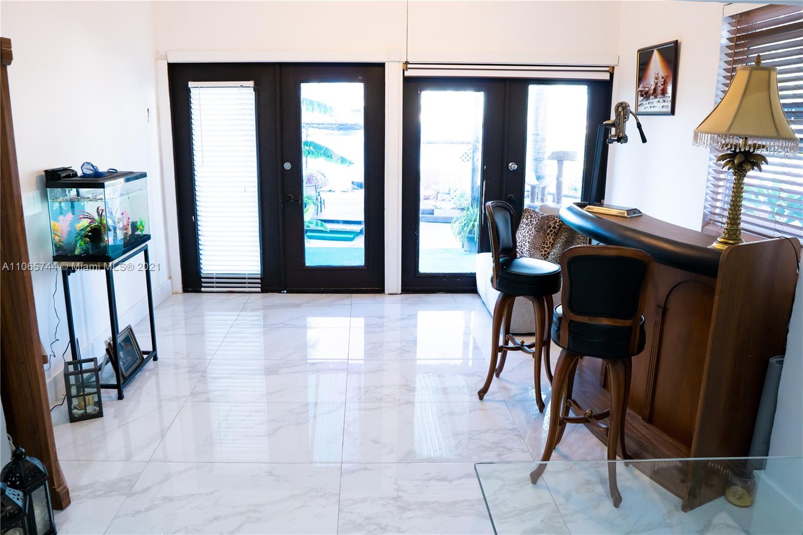 Beautiful home on the intercoastal waterway with an 50' boat dock. Located in the private island of Atlantic Isles. Kitchen is updated with granite countertops, s/s appliances, breakfast counter, work island & ample cabinet space. Open layout with high ceilings, white tile throughout, bar area, private stairs to Master Bedroom & French doors to backyard. Large Master w/ample closet space, large bathroom has Jacuzzi roman tub & bidet. Guest bath is renovated with elegant glass shower. There's a complete private studio apartment downstairs, perfect for in-law quarters or rental income. Home has huge driveway perfect for entertaining with large back yard, covered sitting area on the dock with a dock room for boat & a jet ski. Backyard is gated with a wood fence on both sides for privacy.