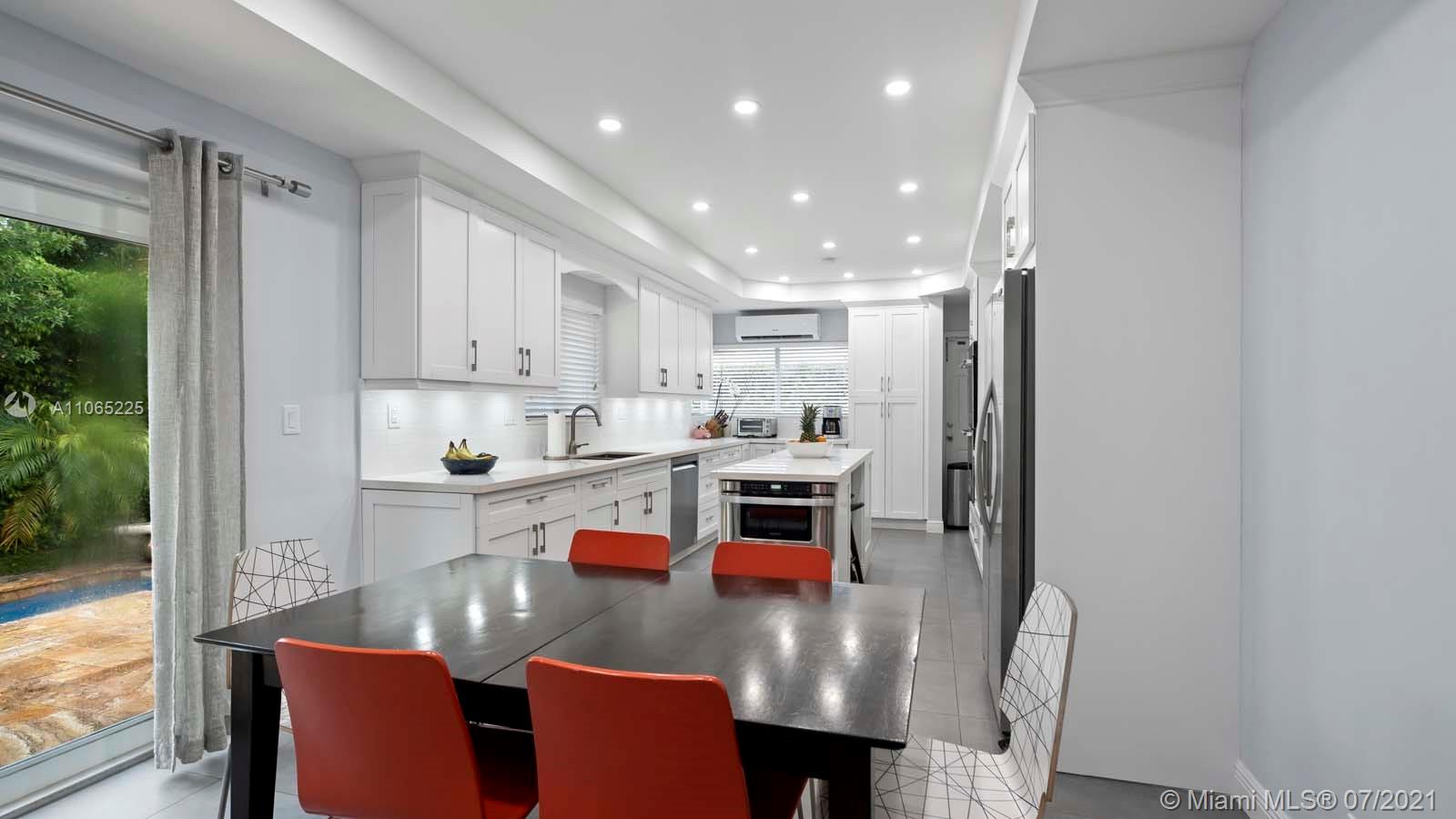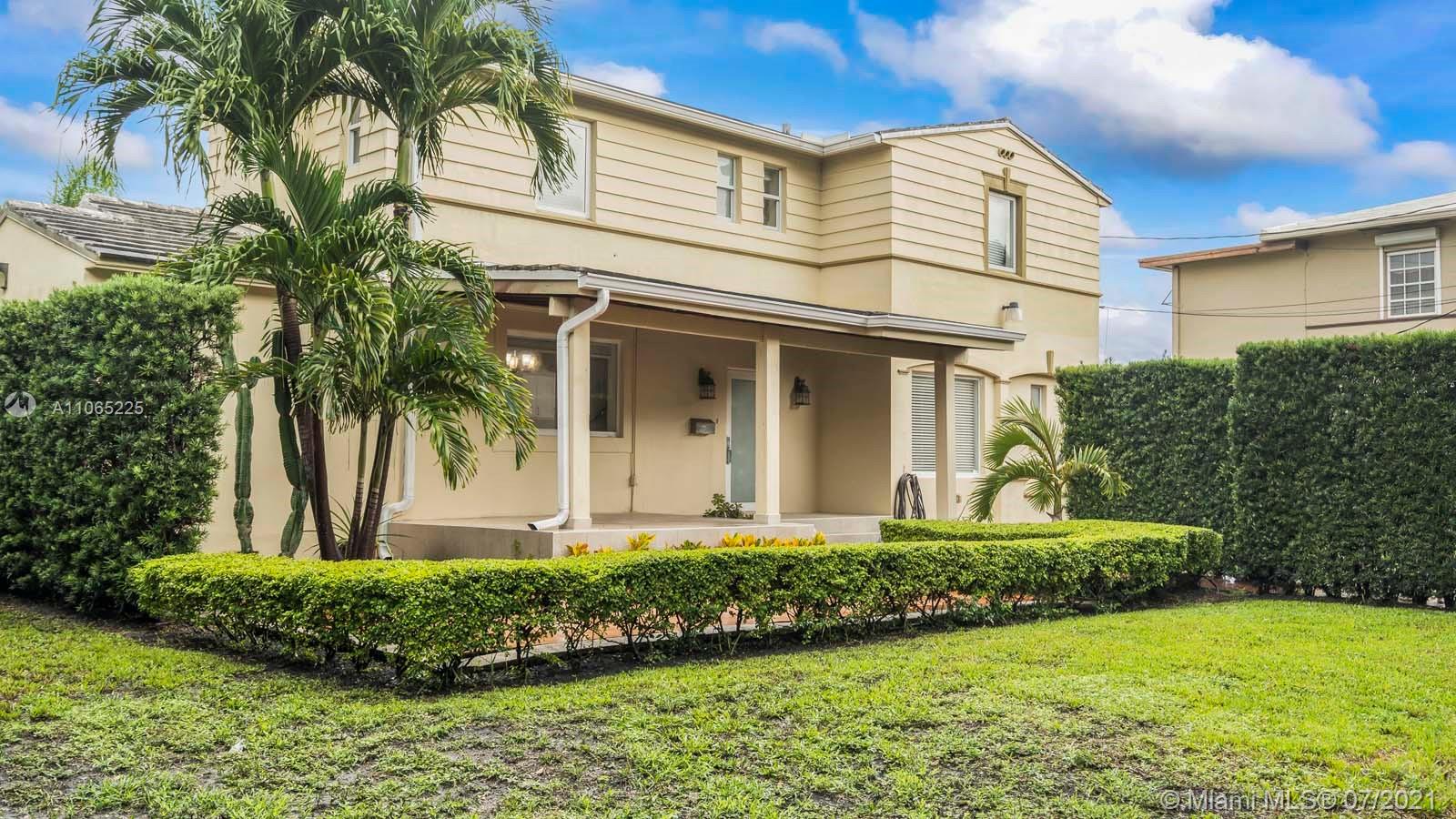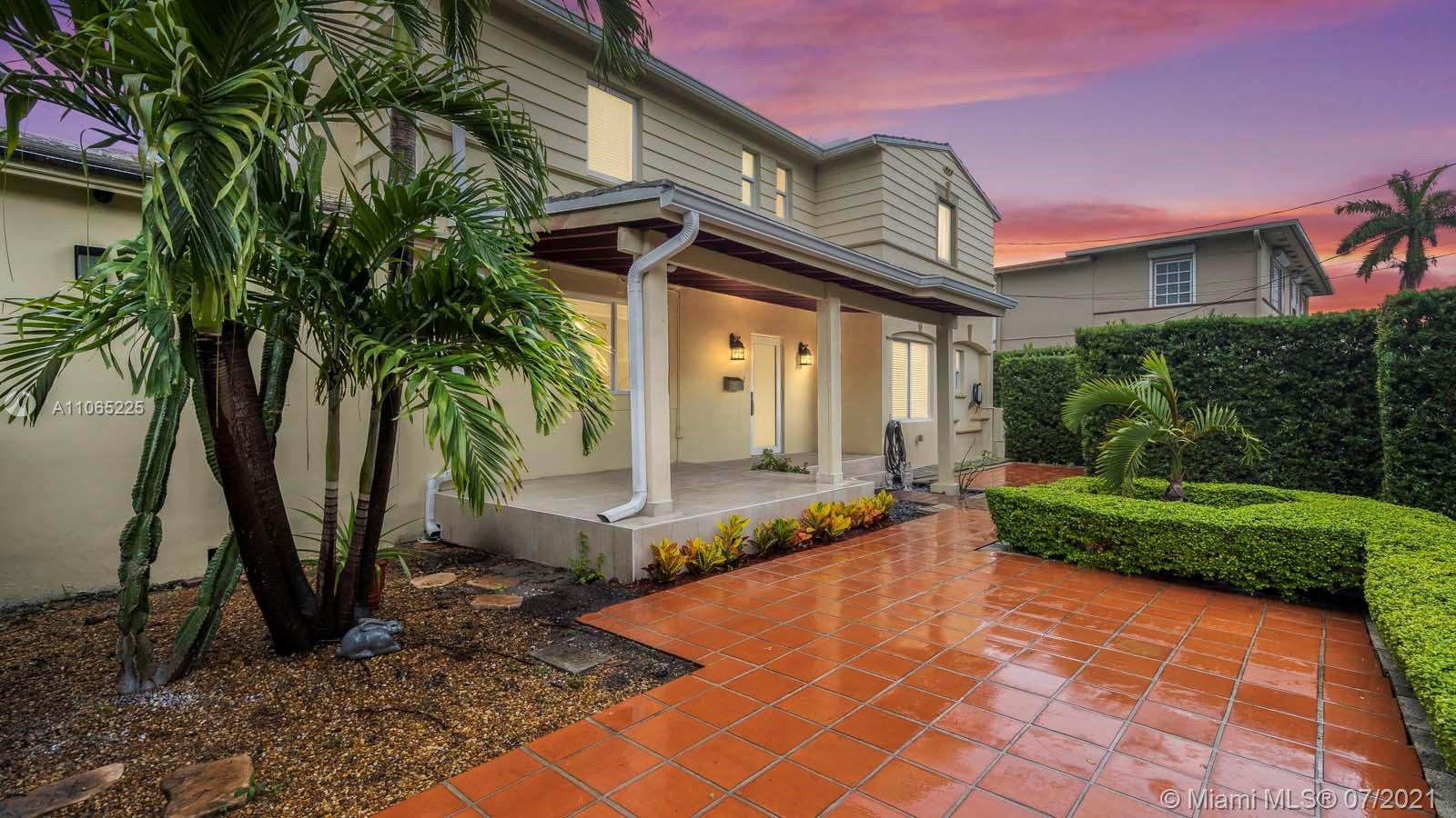 Here is your chance to own a charming, very desirable Mid-Miami Beach pool home. This captivating light and bright home has full impact windows throughout, new modern white gorgeous kitchen, with stainless steel appliances and gas thermador stove, updated bathrooms, wood and marble floors, beautiful pool area, storage/guest house plus a storage room attached in the back with lots of tropical foliage on an 8480 sqft lot. The master bedroom and bath are downstairs and upstairs you will find 2 nice size bedrooms and bathrooms with lots of windows making it very light and bright. Tankless water heater. The house is in an excellent location, close proximity to all kinds of houses of worship, schools, shopping and restaurants. Realtors please go through show request no texts please.