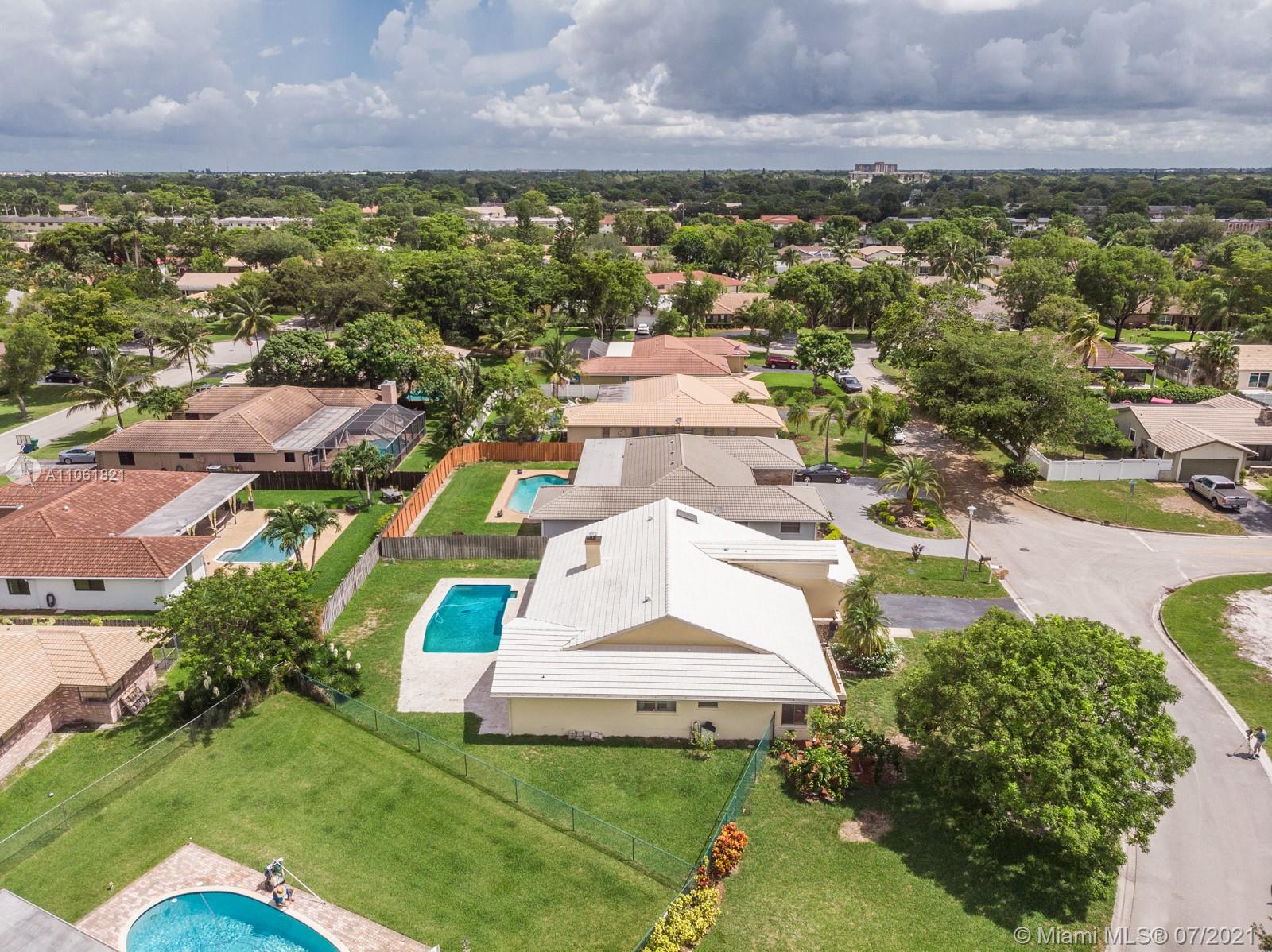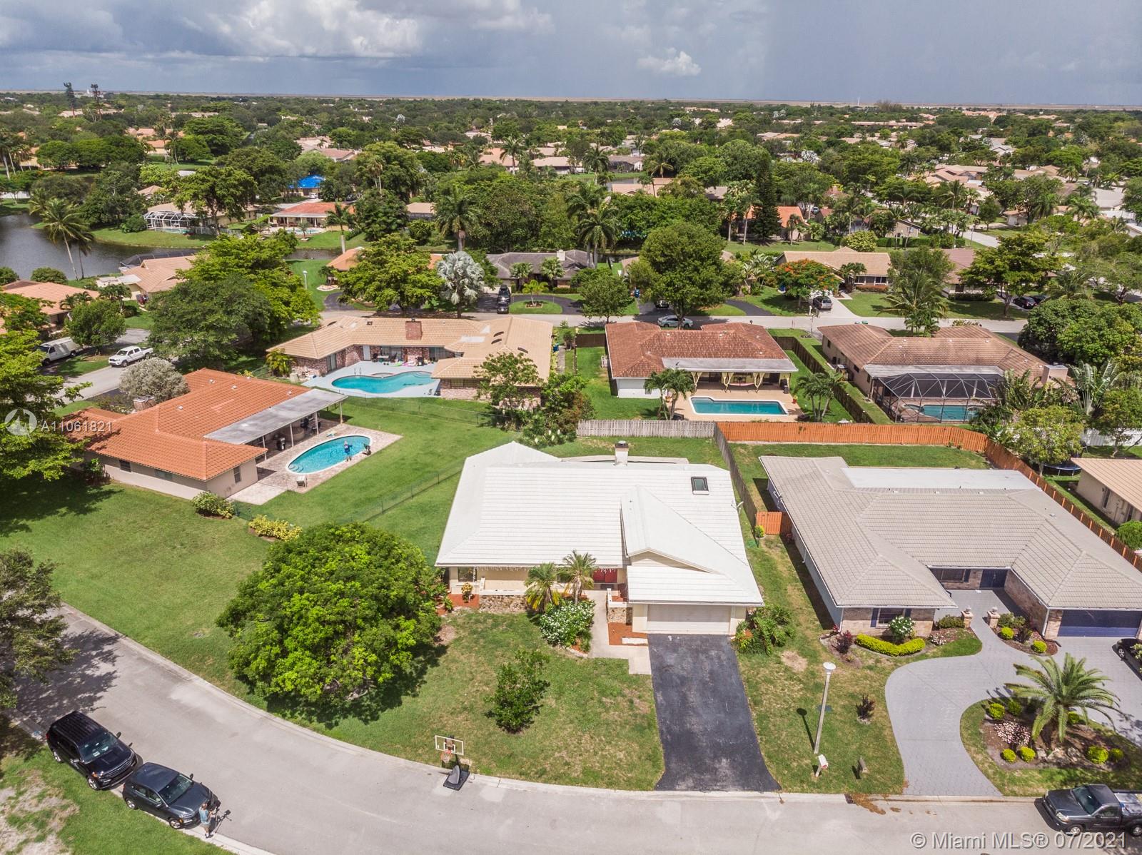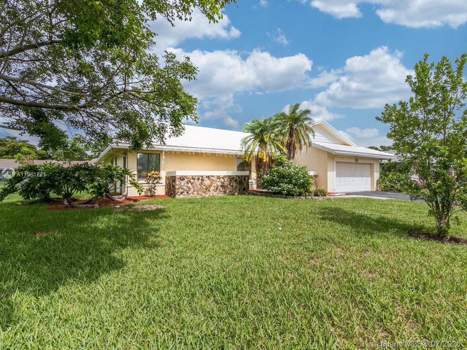 LIVE THE SOUTH FLORIDA DREAM! Rarely available 2,200+ living sq. ft. 4 bedroom 2 full bathroom pool home in heart of Coral Springs! Features large vaulted smooth ceilings (no popcorn) upon entering with tile and NEW wood-like vinyl flooring throughout. Custom kitchen with Corian counter tops, island, and newer S.S. appliances. Master bedroom overlooks patio and pool, features walk-in closet with custom built-ins. Exterior features fenced in backyard with an abundance of yard space and NEWLY extended patio surrounding pool with travertine tile, great for entertainment! COMPLETE hurricane protection for insurance credits. NEW A/C, NEW water heater, NEW pool pump, interior fleshly painted, ROOF replaced 2009, and auto sprinkler system.