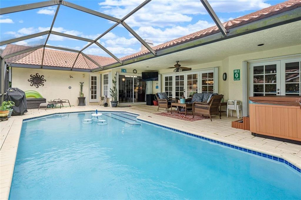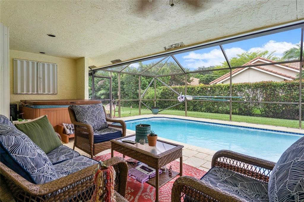 WELCOME TO THIS BEAUTIFUL 4 BEDROOM PLUS A DEN/OFFICE AND 3 FULL BATH HOME IN DESIRABLE EAGLE POINT IN EAGLE TRACE. INTERIOR BOASTS SOARING CEILINGS, HUGE KITCHEN WITH LOTS OF COUNTER SPACE WOOD CABINETRY AND STAINLESS STEEL APPLIANCES, BRAND NEW CABANA BATH, QUARTZ COUNTERS IN MASTER AND 2ND BATHS. NEWLY RESURFACED AND HEATED POOL, ACCORDION SHUTTERS, NEWLY LANDSCAPED AND UPGRADED SPRINKLER SYSTEM. HOT TUB AND PATIO FURNITURES WILL STAY.
