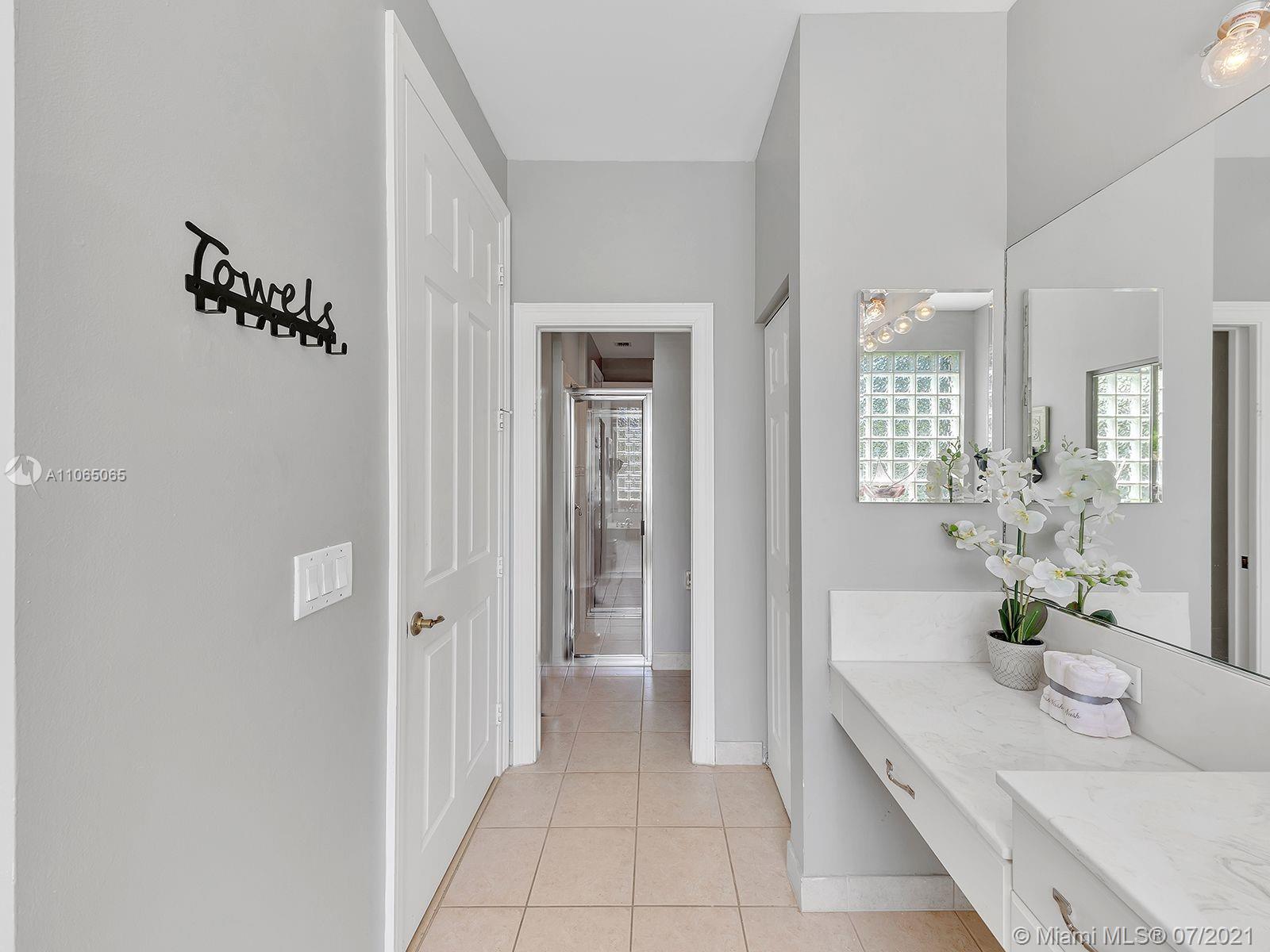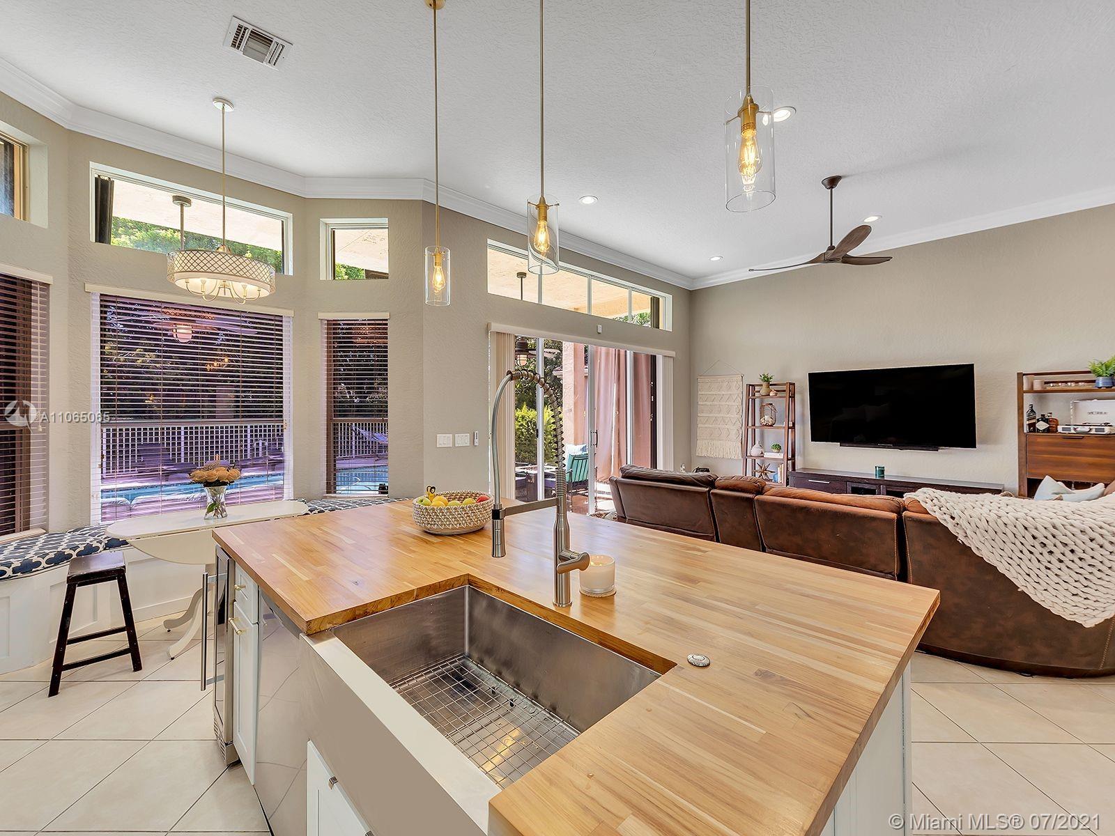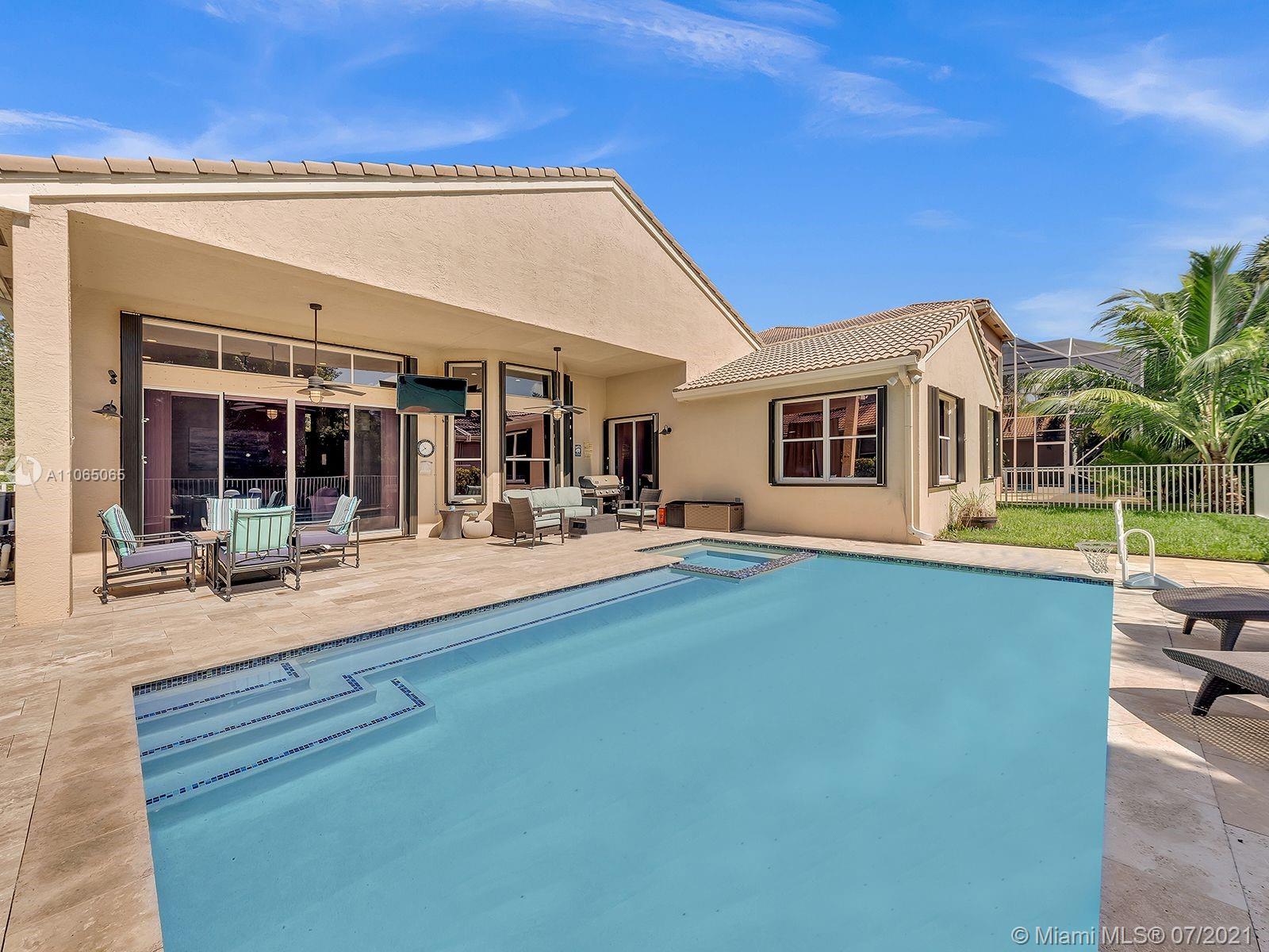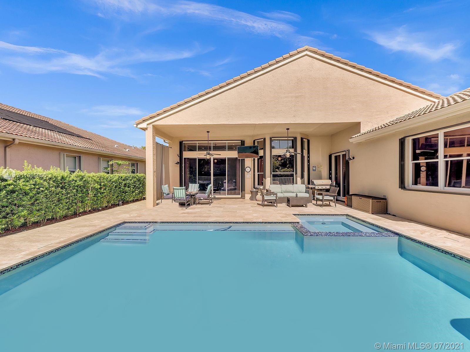 Envision living in this beautiful, bright & spacious home full of upgrades! This Isabela floorplan is one of the only two floor plans built within the entire community boasting separate bathrooms in the Master Suite with a connecting shower. Newly remodeled kitchen with a stunning & expanded butcher block island boasting plenty of cabinet storage, a built-in seating bench in the breakfast area, and a backyard with an expansive covered terrace and beautiful travertine pavers around the new saltwater heated swimming pool and spa. Enjoy an abundance of amenities in the first-rate clubhouse with a fully-equipped fitness center, tennis courts, & so much more. **First showings will take place July 10th & July 11th from 12-1:30pm. Offers below the offer price will NOT be considered.**
