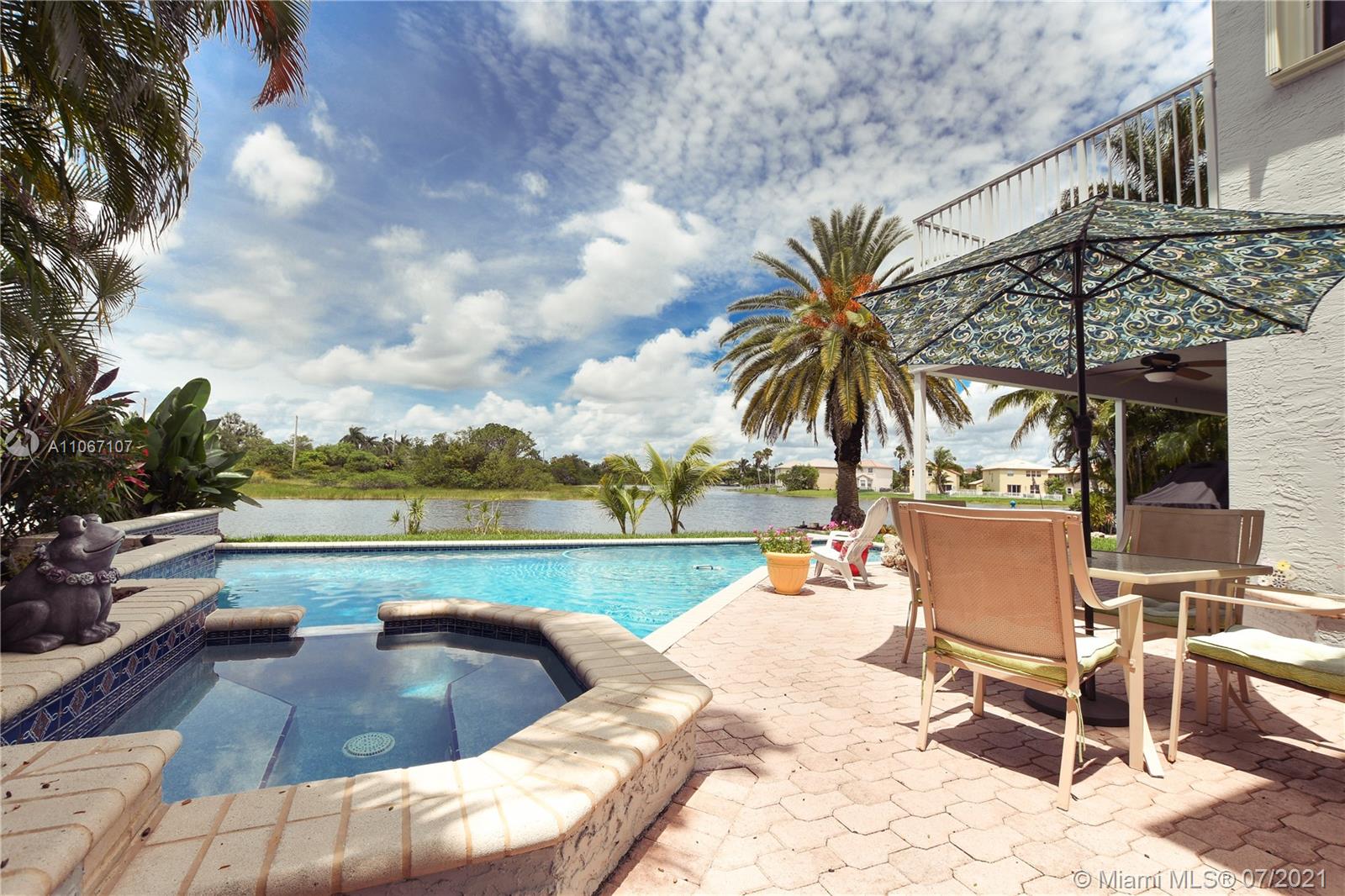 Just repainted beautiful home! Best positioned home in Pelican cove with no neighbors behind, only a perfect unobstructed lake view. Beautiful pool and spacious backyard! 2 bedrooms converted into 1 over sized room. Don’t miss out on this gorgeous home! Pool tabel, dining table with chairs, and familyroom entertainment center all for sale seperatly as well.