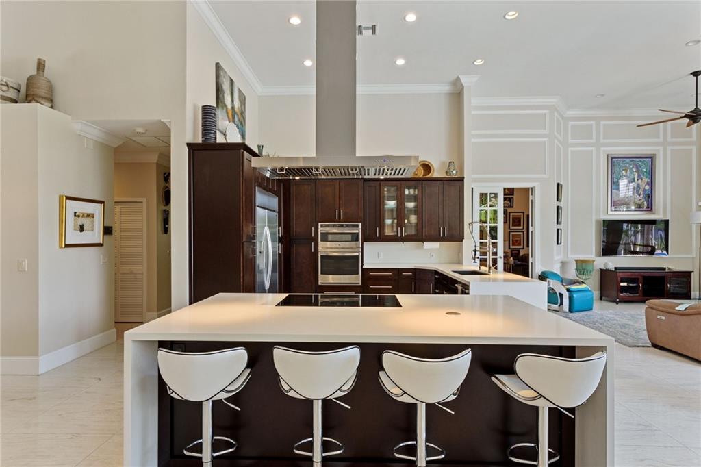 Weston living at its BEST. Lakefront Pool luxury, this is a rare GEM of an opportunity. (Roof is 8). Meticulously designed with all the Bells and Whistles. Soaring ceilings, marble floors, impeccable upgrades and finishes, completely open and modern for today's living. Walls of glass doors with special glass transomes offer abundant natural light. Gourmet Chef's kitchen, top-of-the-line appliances and fine cabinetry, fully open to lovely breakfast room, living and family rooms. Large formal dining room. Primary suite with 2 huge walk-in closets, sitting area and its very own laundry room. Huge, luxurious contemporary primary bath. Secondary bedrooms w/large walk-in closets. All bathrooms upgraded to the max. CONT' ON SUPPLEMENT REMARKS