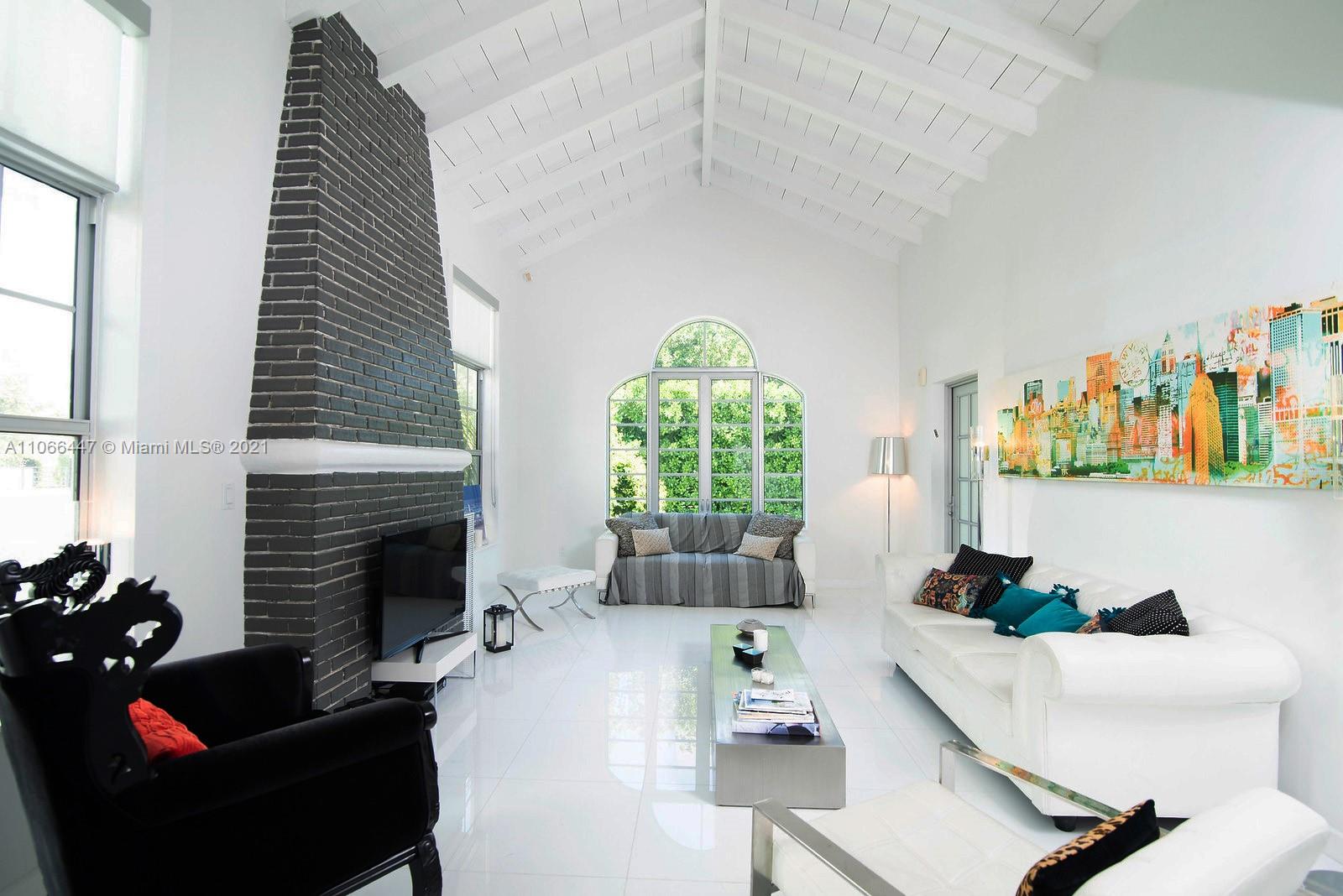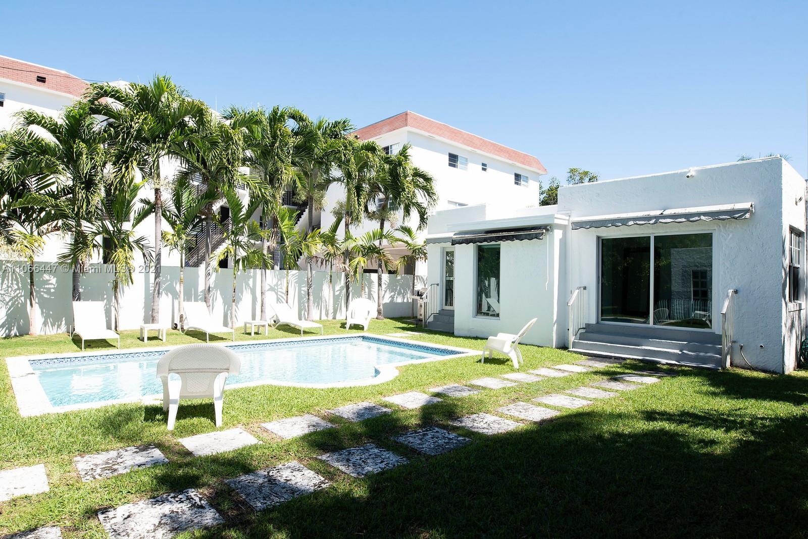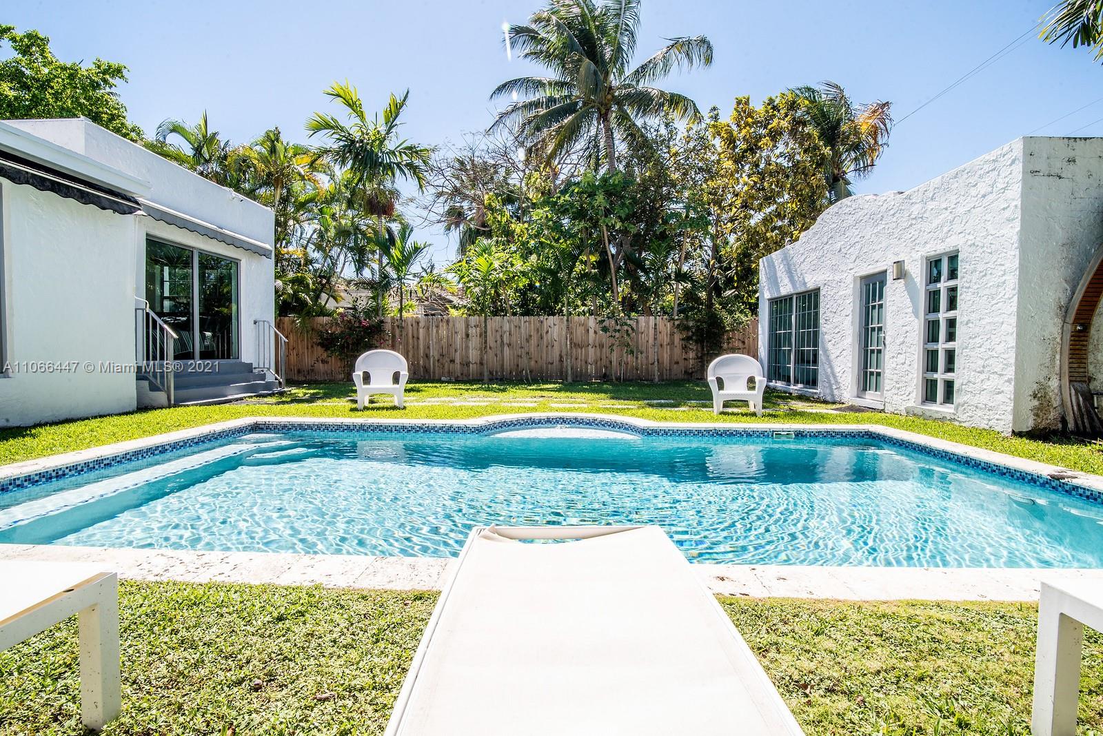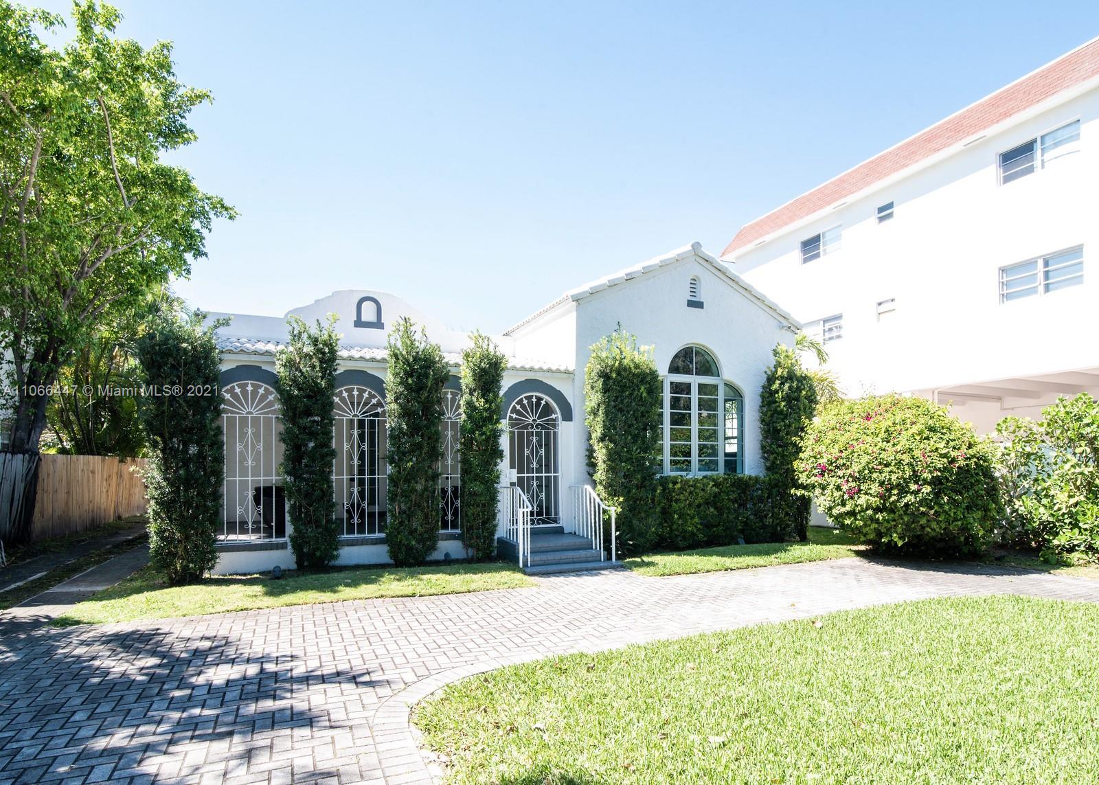 Very charming Art Deco home in a beautiful quiet South Beach neighborhood. Completely renovated. Perfectly located, 2 blocks away from Lincoln Rd and a few minutes drive to the beach! The property is gated (electric) and has high hedges for privacy. The driveway can easily accommodate up to 6 cars for secure parking. The layout of the house is absolutely amazing. 3 Bedrooms/2.5 Baths in the main property and an additional complete 1/1 in the guest house! With its original vaulted wood ceiling complementing the new modern look, this home is the perfect mix between old & new. Hurricane impact windows installed. The backyard is spacious and the pool is perfectly sized and well maintained. Welcome to a South Beach icon! Please text for showings.