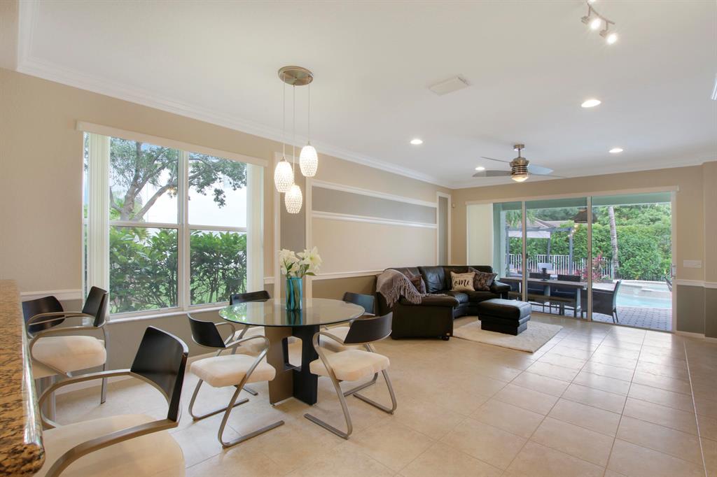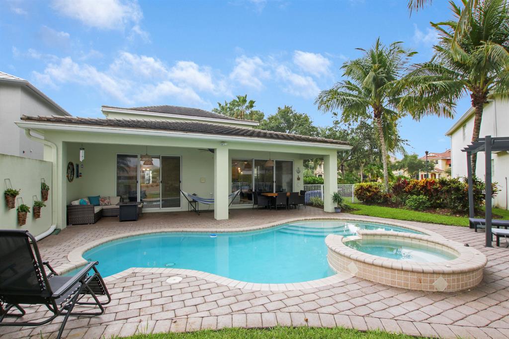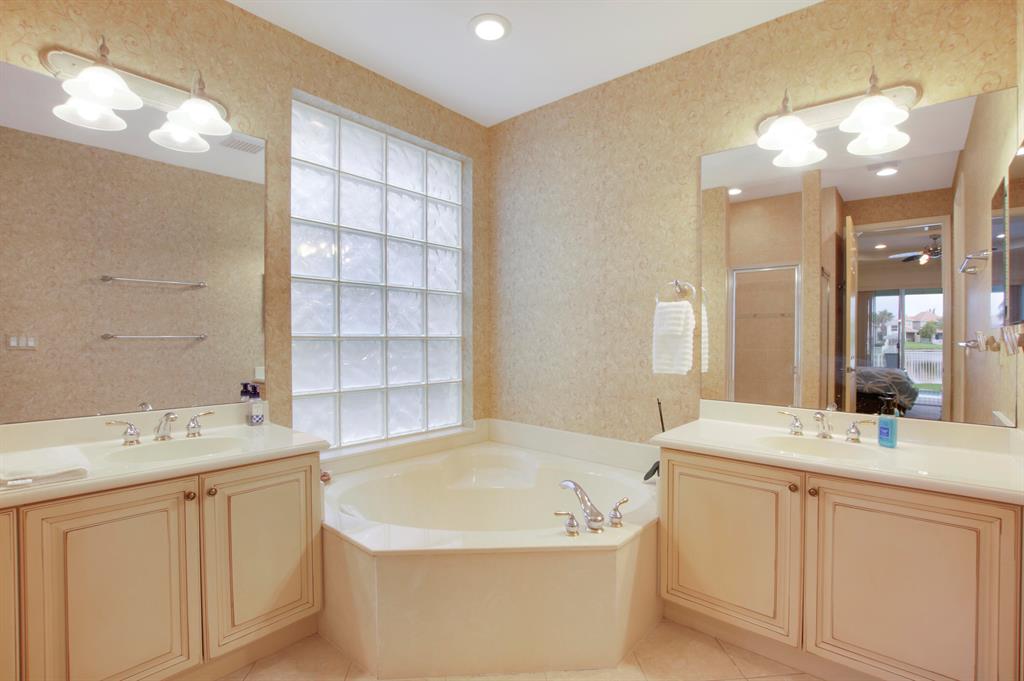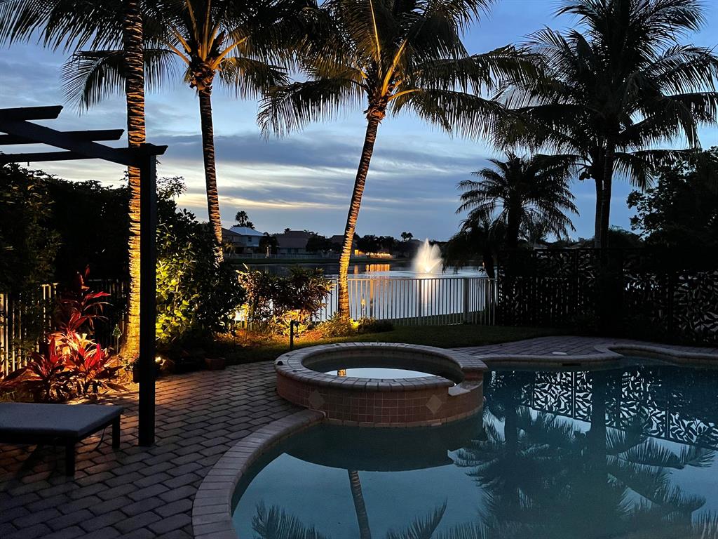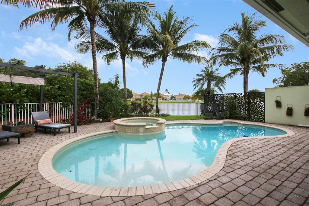 Welcome home to this gorgeous former model home in one of West Palm Beach's best neighborhoods - Palm Beach Plantation! This home is sure to impress and features 3 bedrooms, 2 bathrooms with a 2 car garage. It is located on an oversized pie shaped lot with the best lake views in the community. The oasis outside includes a heated pool with spa, custom lighting and an extended covered patio that is perfect for alfresco dining and entertaining. The first floor master suite is complete with coffered ceilings, custom walk in closets, dual sinks, garden tub and a separate shower. Large sliders welcome you to the covered patio & pool area where you can enjoy your morning coffee. The second floor is complete with a den/loft area that overlooks the downstairs formal dining area and a custom