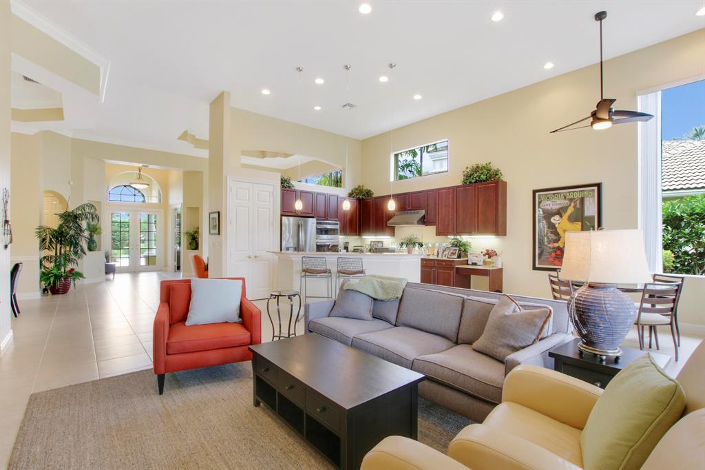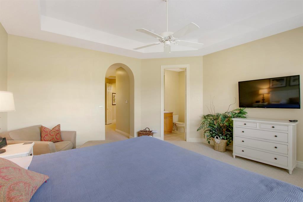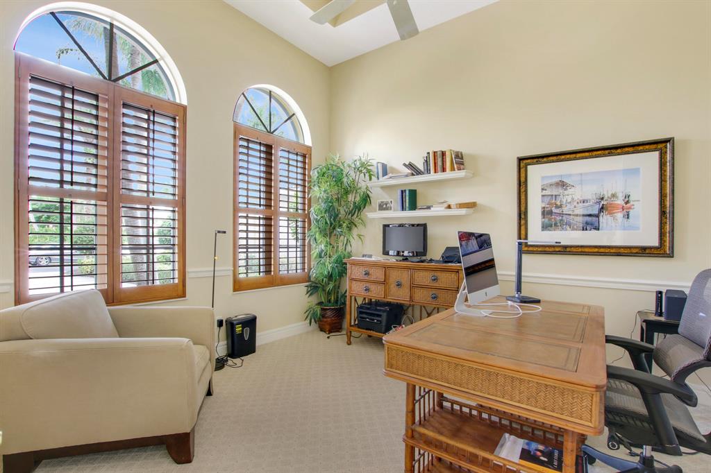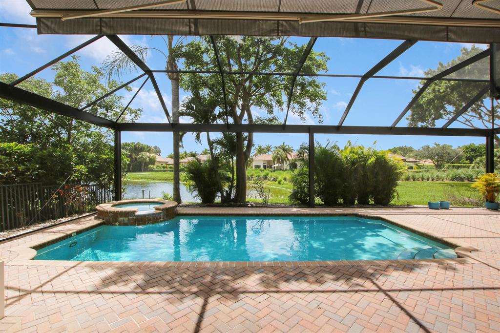 Immaculate 3 bed + den, 4 bath home sits on the oversized, top of the cul de sac, pie-shaped lot on the highly desirable street of Sand Cay. Pristine condition! Stunning backyard views of lake and golf course w/o cart path, thru new hurricane secured, panoramic lanai w/ new mechanized remote control awning. Large AC unit installed in 2020, Hot Water 2018, New kitchen applicances 2017, new plantation shutters thruout. Recently painted inside and out. 220w charger in garage for EV. Salt water pool w new pump and heater. 2 car garage + golf cart garage. This house should not be missed!