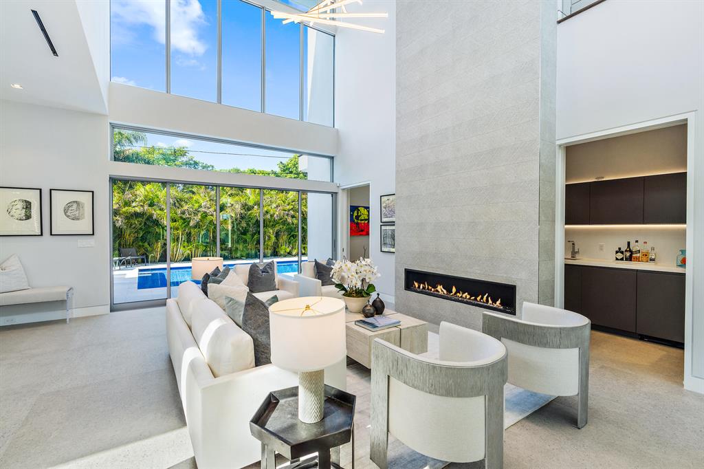 Impeccably built home with an impressive living room volume ceiling (24'), 11' ceilings throughout the balance of the first floor & 10' ceilings on the second floor. Designed for maximum flexibility, the office & media room effortlessly convert to en-suite bedrooms. The gourmet kitchen is equipped with a Thermador appliance package & ample space to create. Enjoy Beach LED lighting throughout, porcelain flooring on the first floor, engineered oak on the second floor, an imported Italian glass & steel staircase, two fireplaces, a pool, automatic screens for covered loggia & a spa. Additional amenities: elevator, generator, wine cooler & a two-car garage.