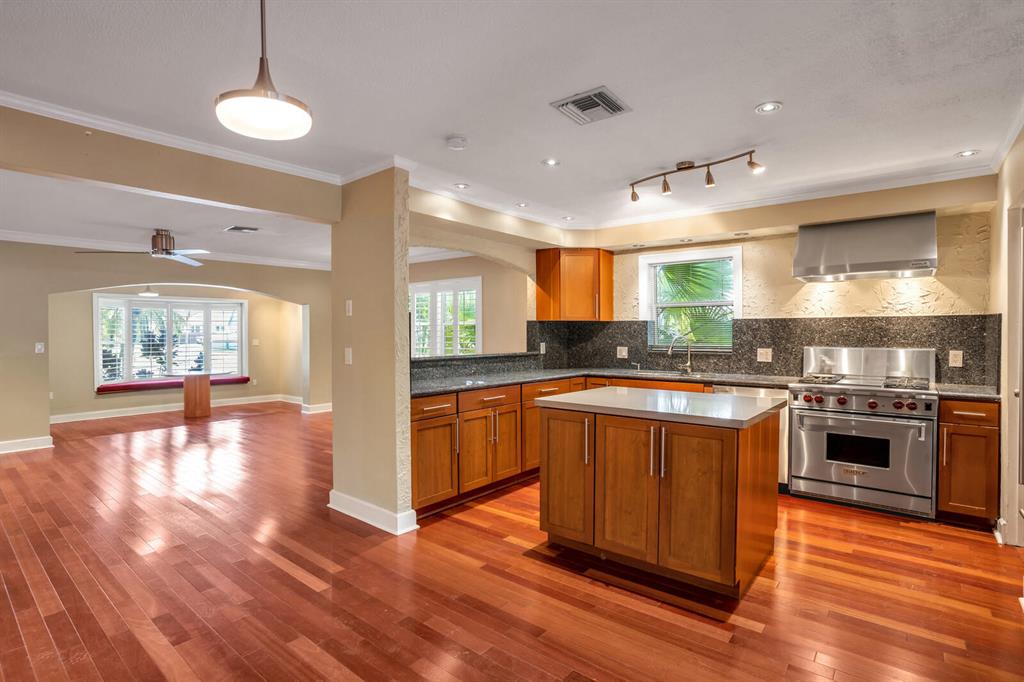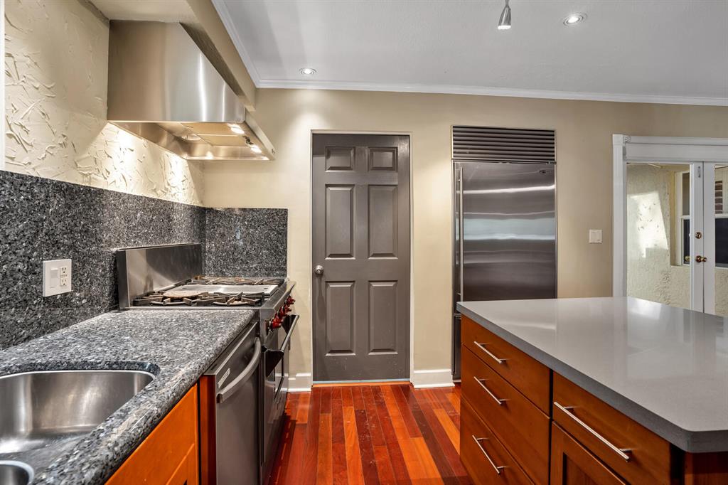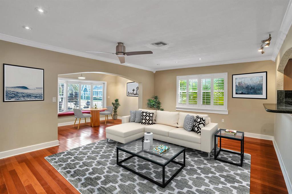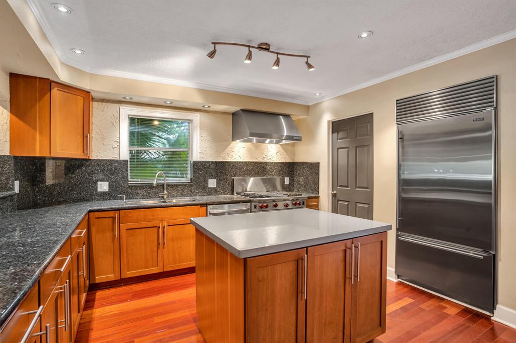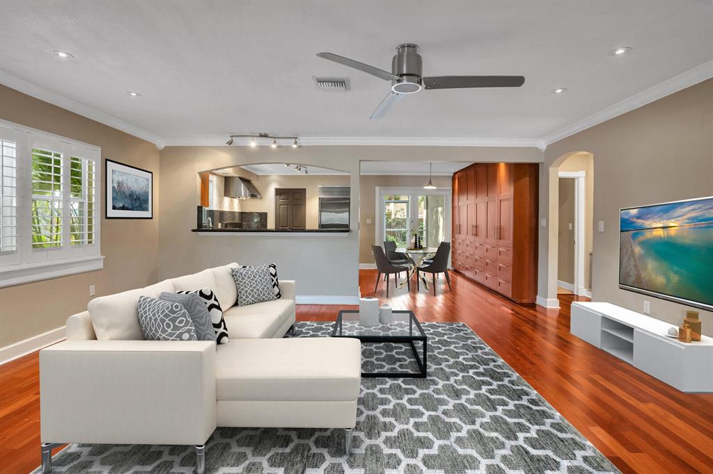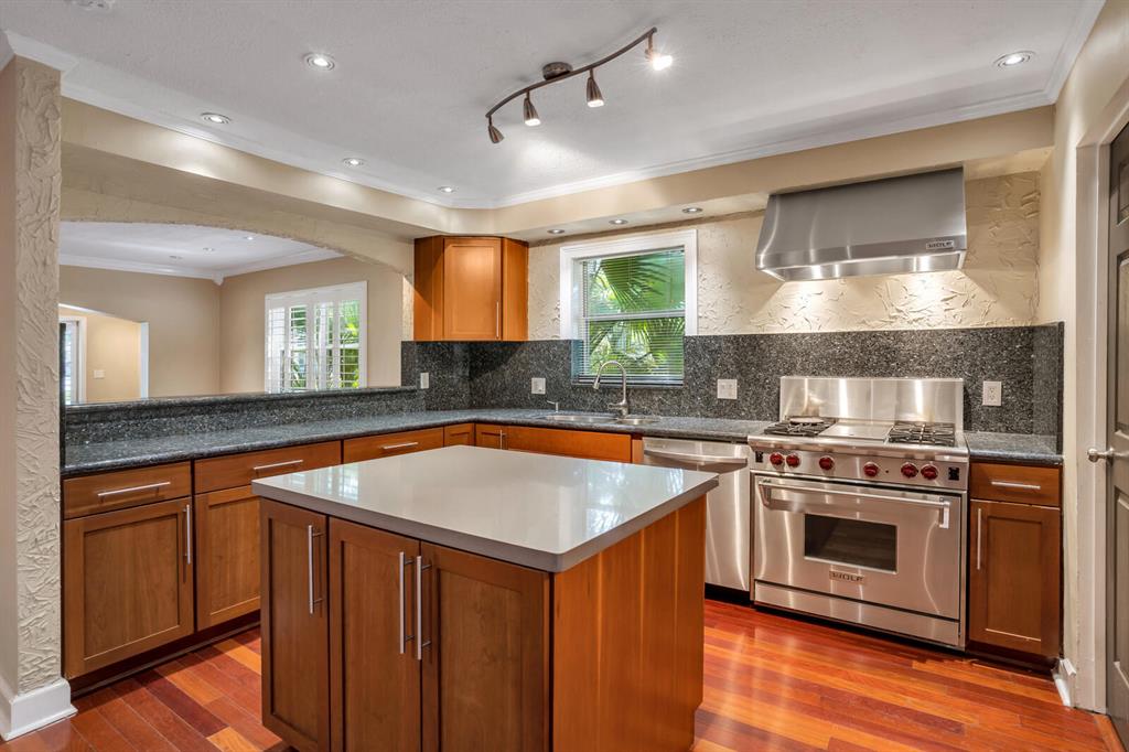 Spectacular corner Lot with street to street property. Great home with Location & Charm!Just a short walk to downtown Hollywood, & the Intracoastal This beautifully updated home has hard wood flooring throughout the living areas, plantation shutters on all the windows, a gorgeous kitchen boasting a Wolf Stove, Subzero Refrigerator, an Island & generous storage.The kitchen offers a great dining area, French doors lead to a screened portico for additional outdoor living space. Gated spacious yard and extra parking. The master has a walk in closet, the bathroom offers jacuzzi tub, walk in shower & dual vanities. 2nd bath is nicely updated & 2nd bedroom is also large. The room off the entrance can be used as an office or den area. Good size yard. Don't miss this fabulous property!