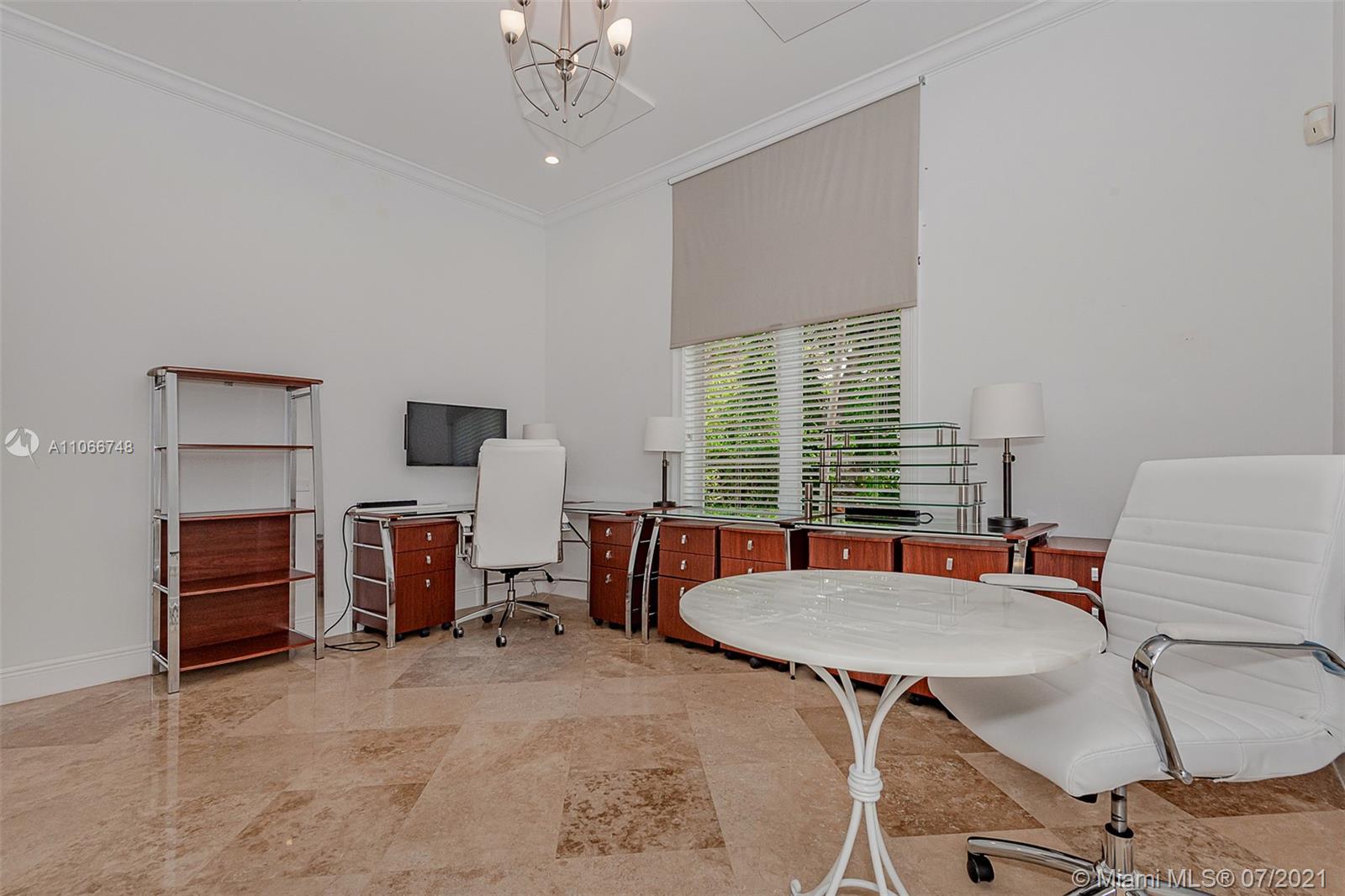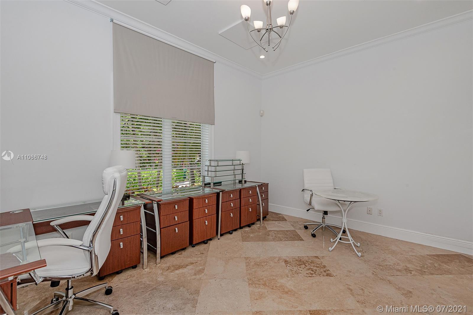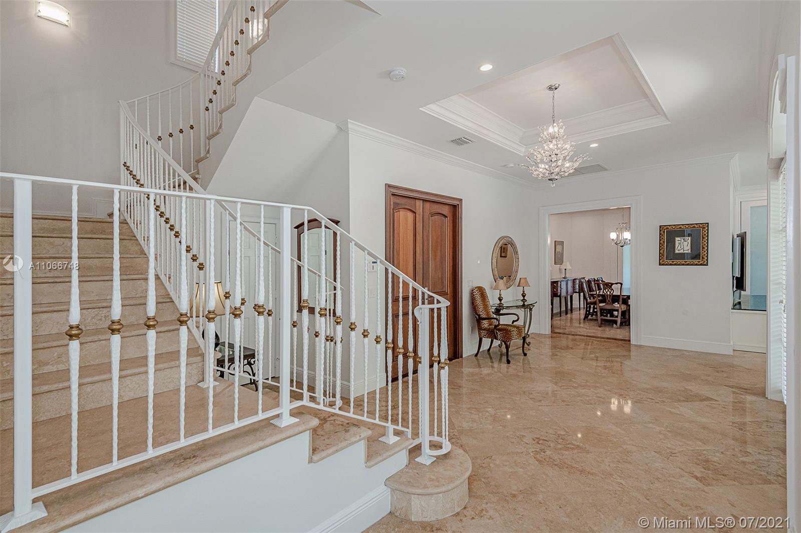 Unique home built to the old building codes allowing more living sq.ft. Well designed, 6 BD in-suite BA plus half bath. Main level offers guest suite and maids room. Upstairs landing can be expanded, 3 storage closets. Double door master entry, his/her closets. black out shades, private terrace, separate shower, tub, 2 vanities. All bathrooms have upgraded countertops. Water tight roof, 3 zoned AC, impact windows/ doors, heated pool. Two car AC garage . 4,500 sq.ft. under AC plus 5,100 total sq.ft no longer allowable. Kitchen w/ sub zero, Miele, Poggenpohl cabinets granite countertops, Extras: surround sound ,built in speakers, touch lighting, custom chandelier, Covered patio , heated pool w/fountain . Ideal for large family ready to move in. Walkable to the Village Green or school.