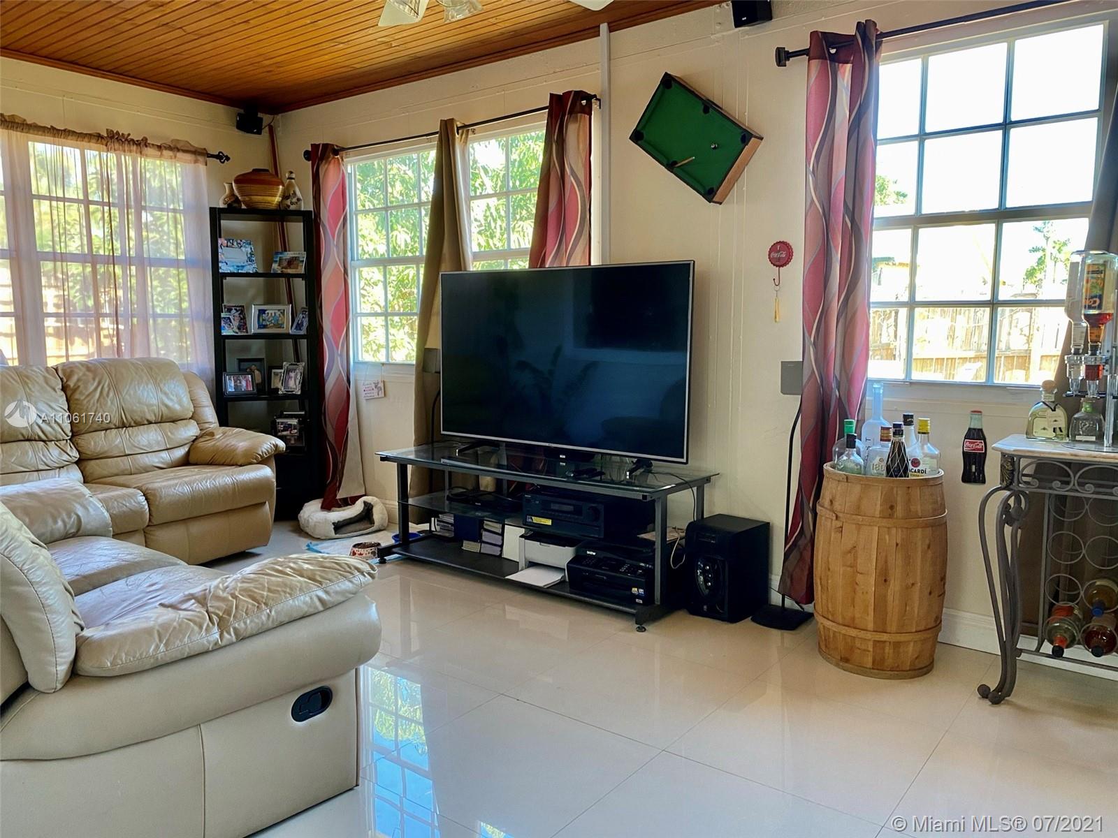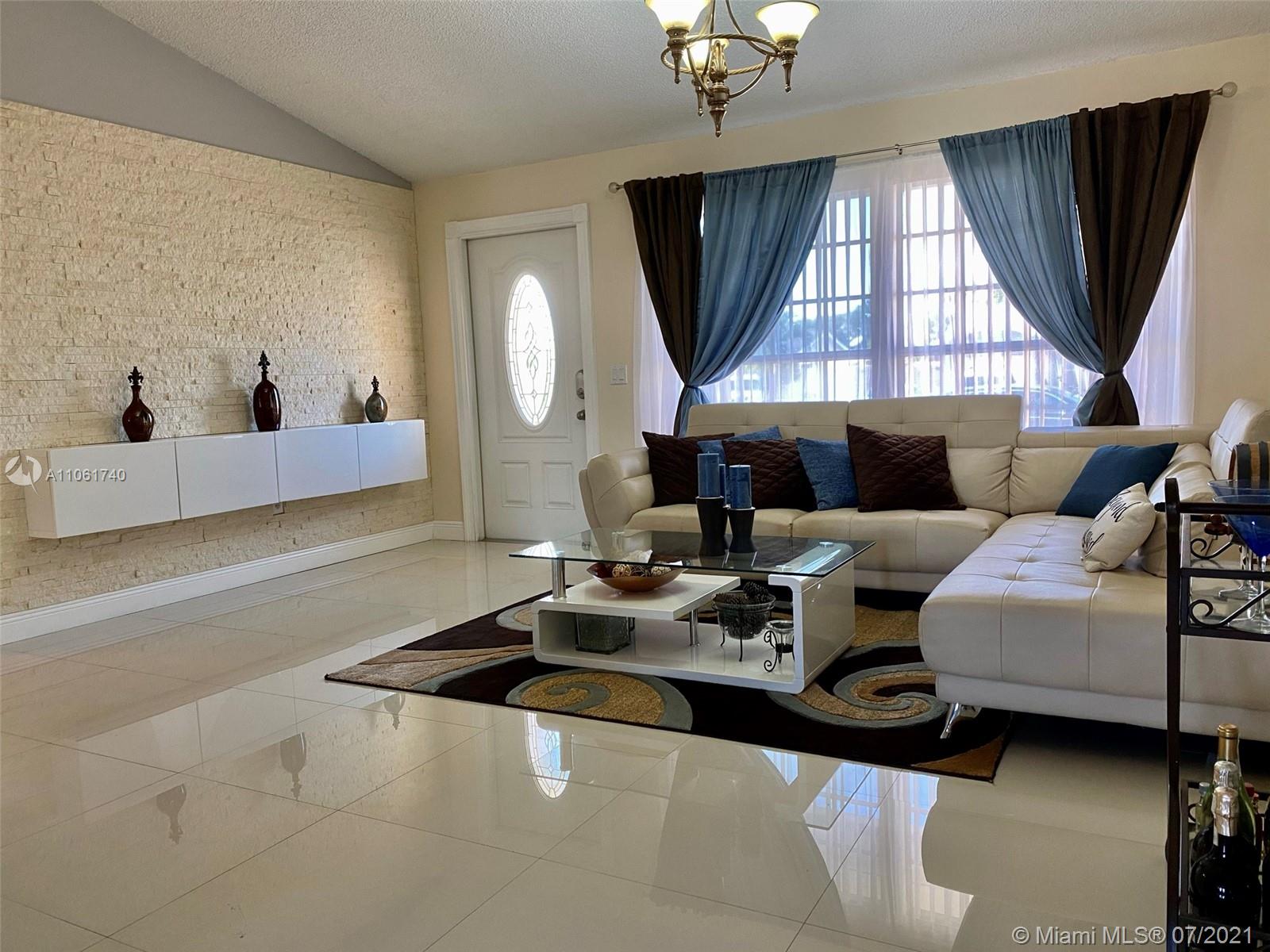 This beautifully updated home features large ceramic floors, a modern stone wall, impact windows and plenty of natural light. The kitchen has modern cabinets, quartz counter tops and stainless steel appliances. The bathrooms were tastefully updated and offer a spa feel. The bedrooms have laminate flooring. This property offers a separate in-law quarters with a separate entrance, a family room and a utility rom with newer washer and dryer. Enjoy the spacious fenced yard with fruit trees, which offers ample space for a pool a cooking station and a play ground. The two large sheds on the side yard offer plenty of storage and stay out of site. Located in the center of Pembroke Pines, close to schools, dog and children's park, stores and hospital. No association. Roof about 9 yr, air 1