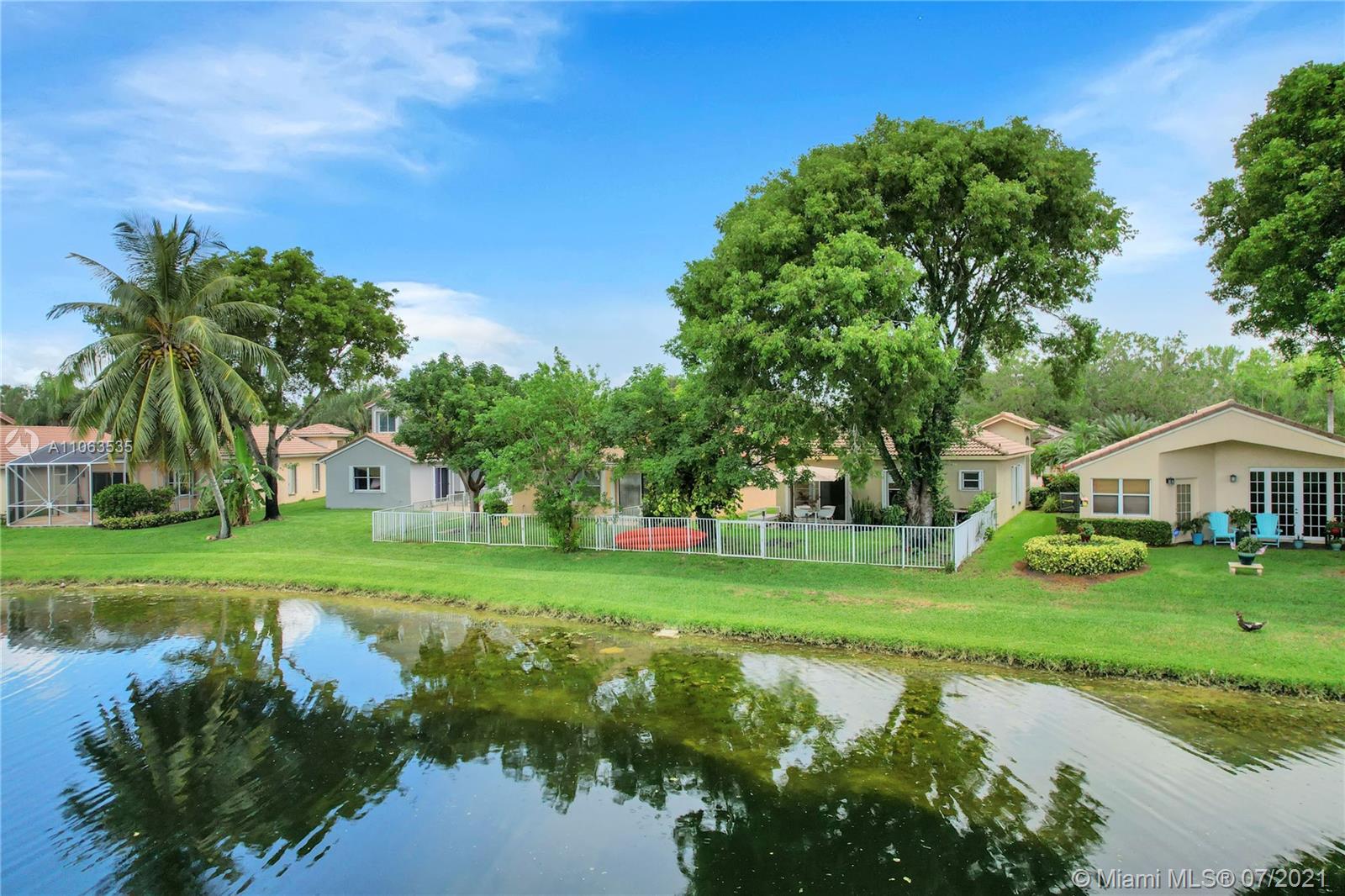 SITUATED ON A GORGEOUS, LUSH, PEACEFUL FULLY FENCED LAKEFRONT LOT WITH BEAUTIFUL WATER VIEWS, THIS CHARMING MODERN 3BED/2BATH SINGLE STORY HOME IN A DESIRABLE GUARD GATED WESTON COMMUNITY HAS JUST BEEN FRESHLY PAINTED IN CRISP COOL WHITE AND IS NEWLY RENOVATED WITH NEW LAMINATE WOOD FLOORING, ALL RENOVATED MODERN BATHROOMS, FABULOUS MODERN CHANDELIERS, NEWER STAINLESS APPLIANCES IN GRANITE KITCHEN INCLUDING NEW STAINLESS DISHWASHER & REFRIGERATOR, NEWER HOT WATER HEATER & NEWER WASHER/DRYER. HOA INCLUDES: pool, gym, tot lot, lawn care, sprinklers, security alarm system, basic cable & 24-guard gated community. A+ schools, great location, easy access to Ft. Lauderdale/Miami & beaches, close to shopping center, RESTAURANTS, CAFES, PARKS, retail stores & much more! A+ WESTON SCHOOLS!