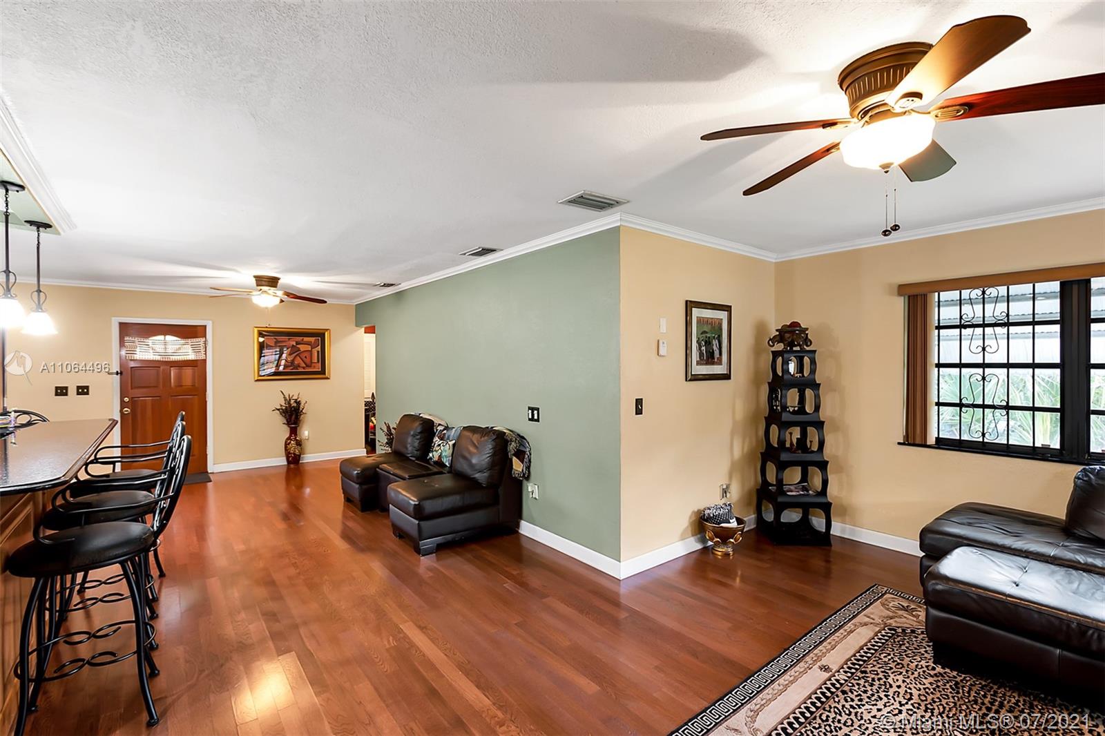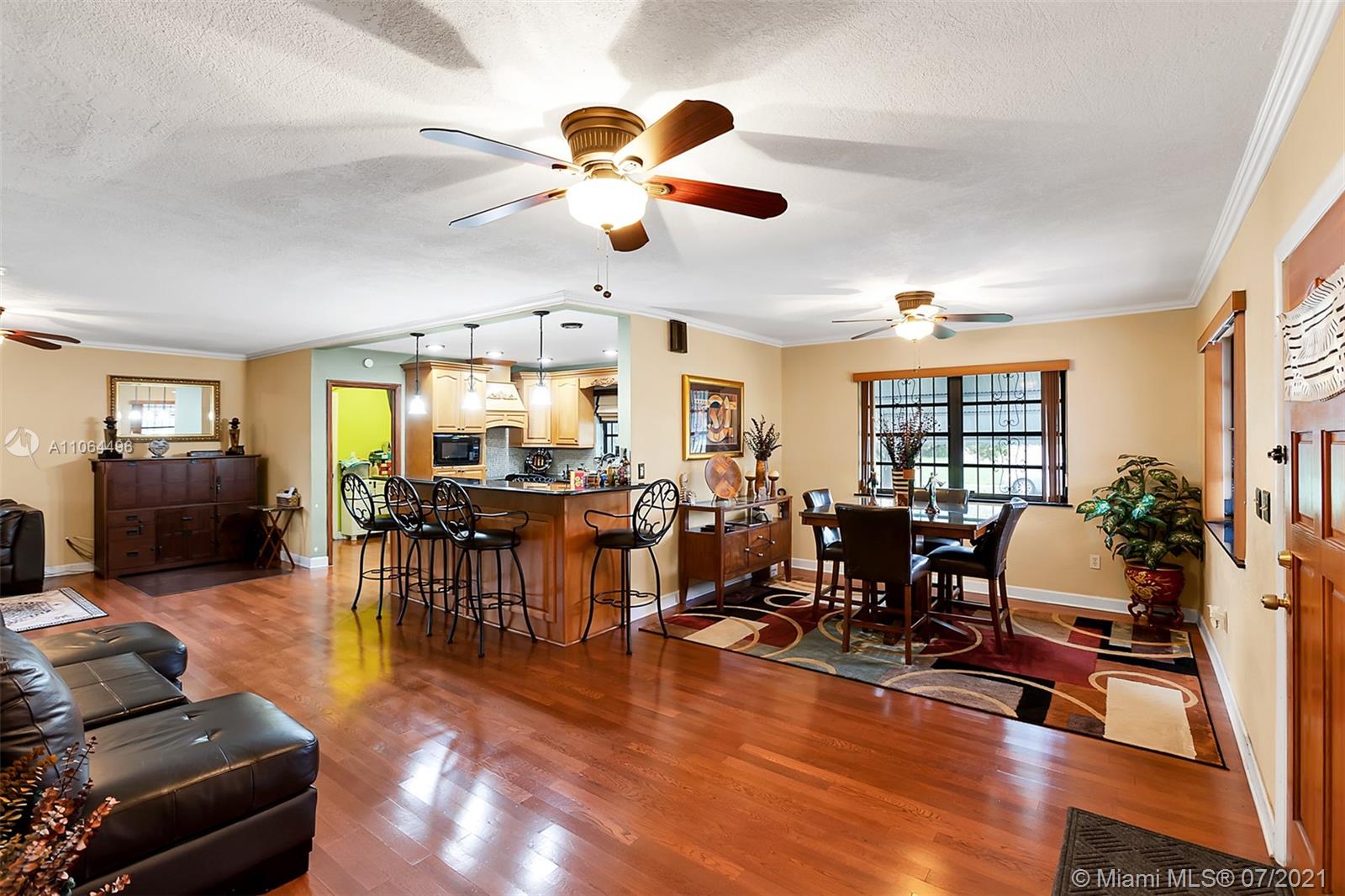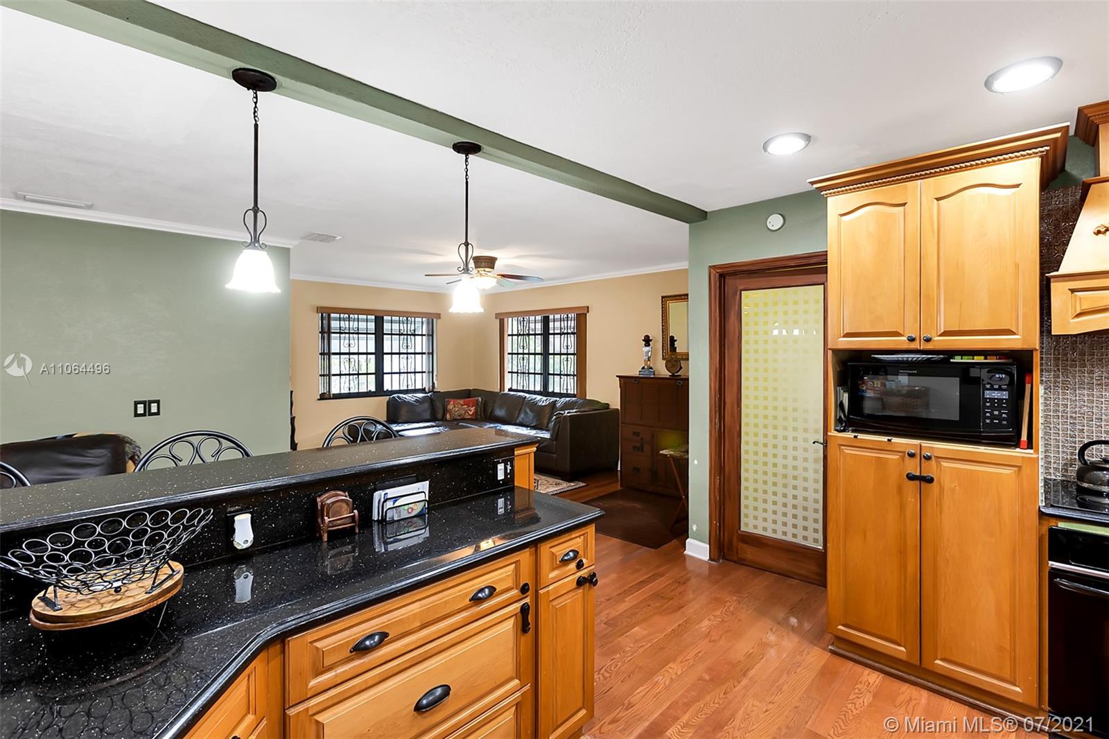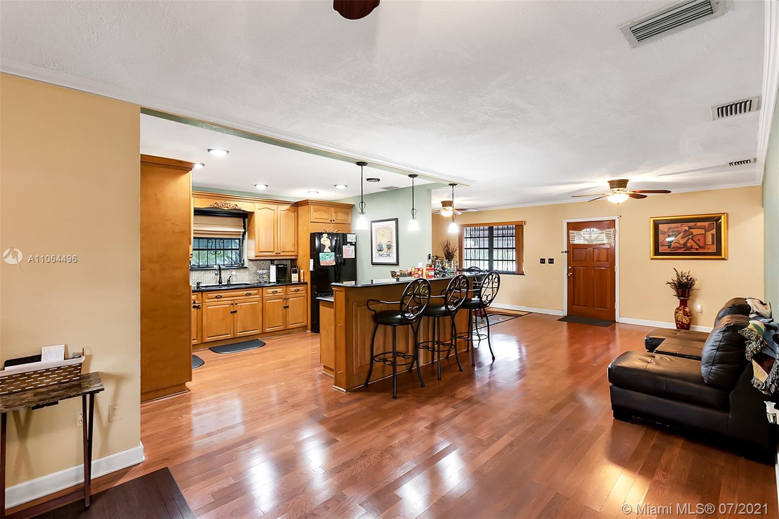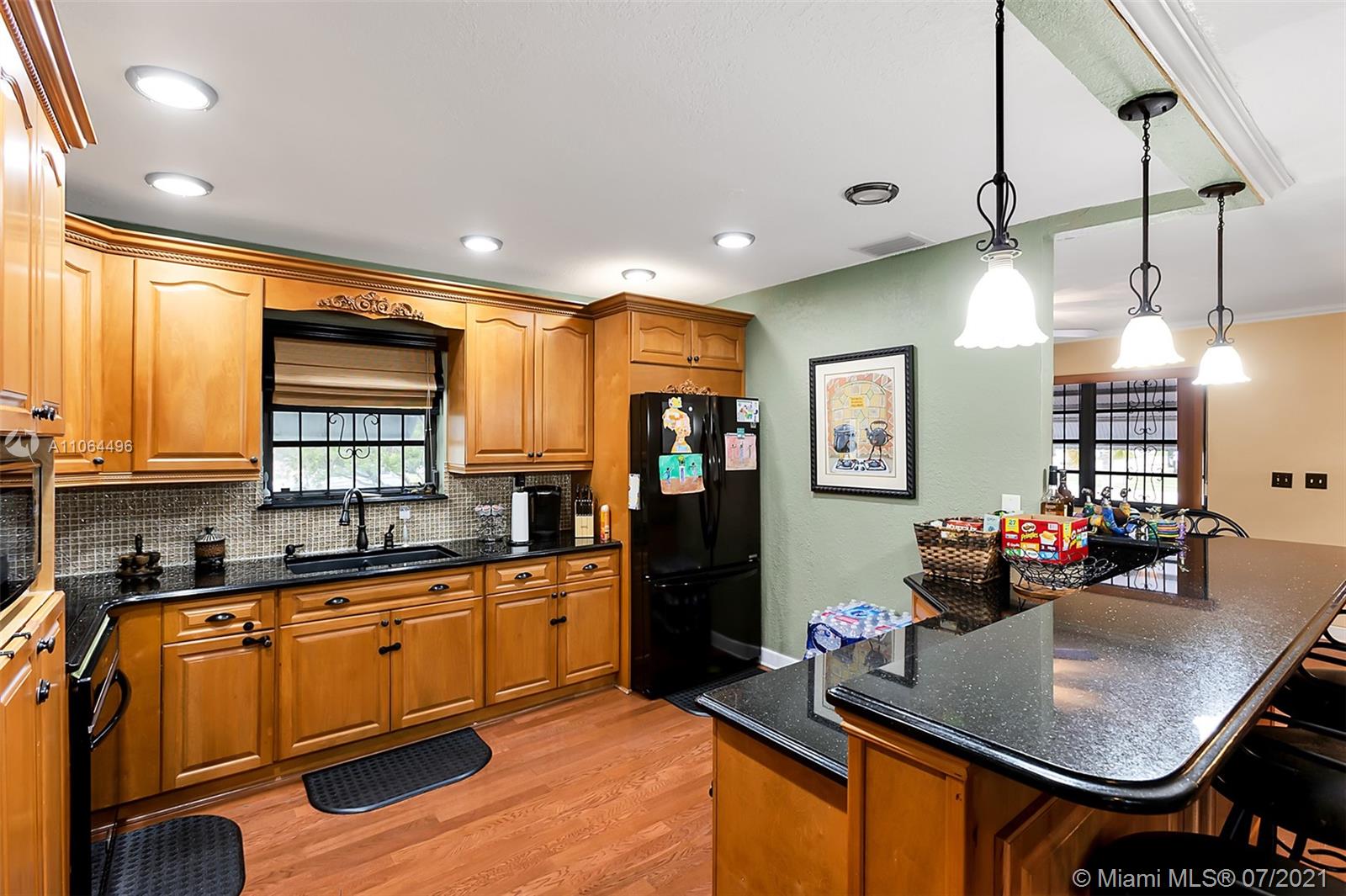 Exclusive Award-Winning 1-story Modern South Florida Home on an oversized corner lot boasts Luxury Living with 3 Bedrooms & 3 Baths. Located in the much sought-after North Miami Beach, centrally located within your dreams. Open floor plan, wood floors, walk-in closets, paired with plentiful, natural lighting throughout its open concept. In a Kitchen fit for royalty, rests a granite countertop & an intricately designed patterned backsplash, custom wood cabinetry, overlooking the custom living/family room. Crown molding throughout. Designed with you in mind. Upgraded throughout. Separate recreational room and bathroom. Audio & visual recording on-premises.