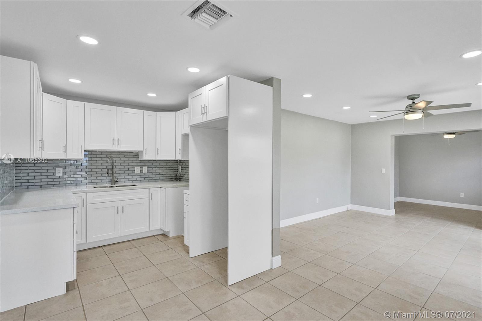 TASTEFULLY RENOVATED 4/2 WITH HURRICANE IMPACT WINDOWS. NEW KITCHEN CABINETS, NEW QUARTZ COUNTERTOPS & NEW STUNNING SUBWAY MOSAIC BACKSPLASH. NEW LED LIGHTING IN THE KITCHEN & LIVING ROOM. UPGRADED BATHROOMS WITH A TANKLESS HOT WATER HEATER. NEW WINDOW TREATMENTS & BLINDS. NEW EXTERIOR & INTERIOR PAINT & BASEBOARDS,NEW LED CEILING FANS & NEW AC HANDLER & CEILING INSULATION. NEW SPRINKLER PUMP & WORKING SPRINKLER SYSTEM. MULTI COLORED BRICK PAVER DRIVEWAY. NEW FRONT LANDSCAPING & TWO MANGO FRUIT TREES LOCATED IN THE REAR. THIS PROPERTY WILL NOT LAST!!