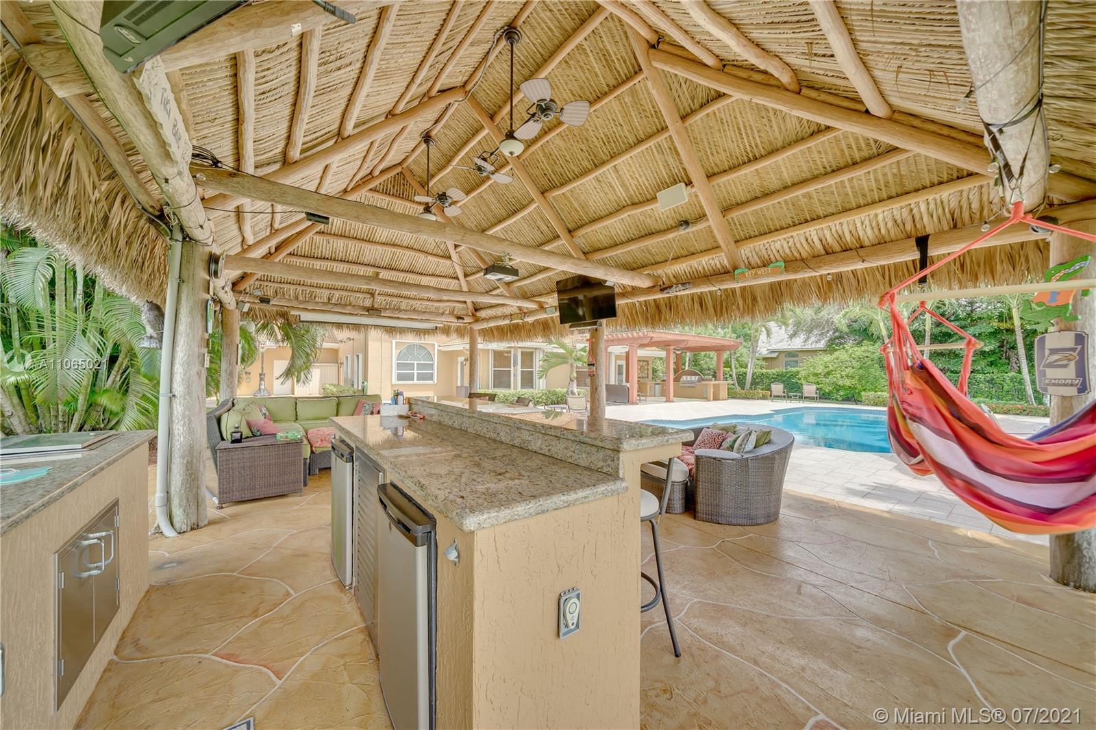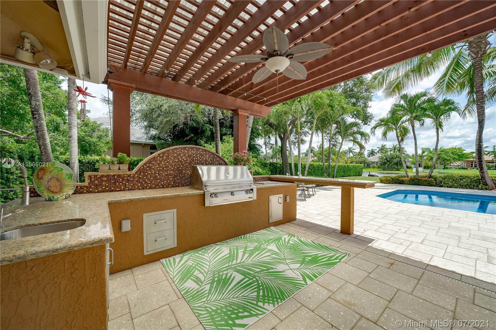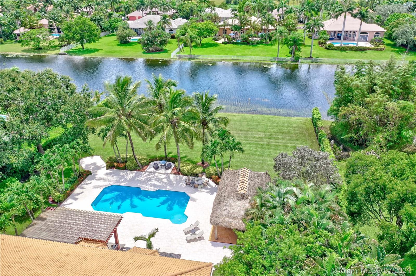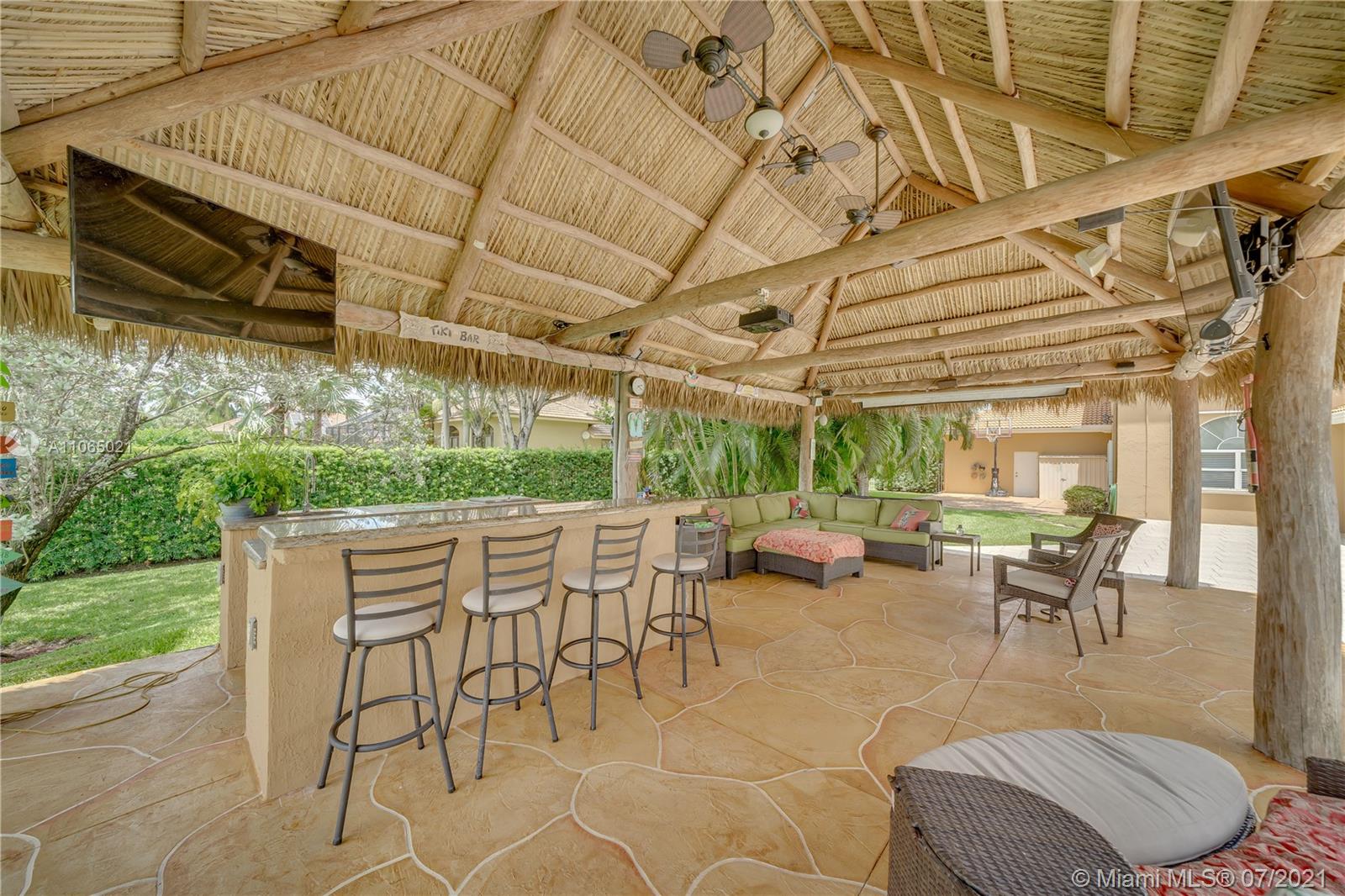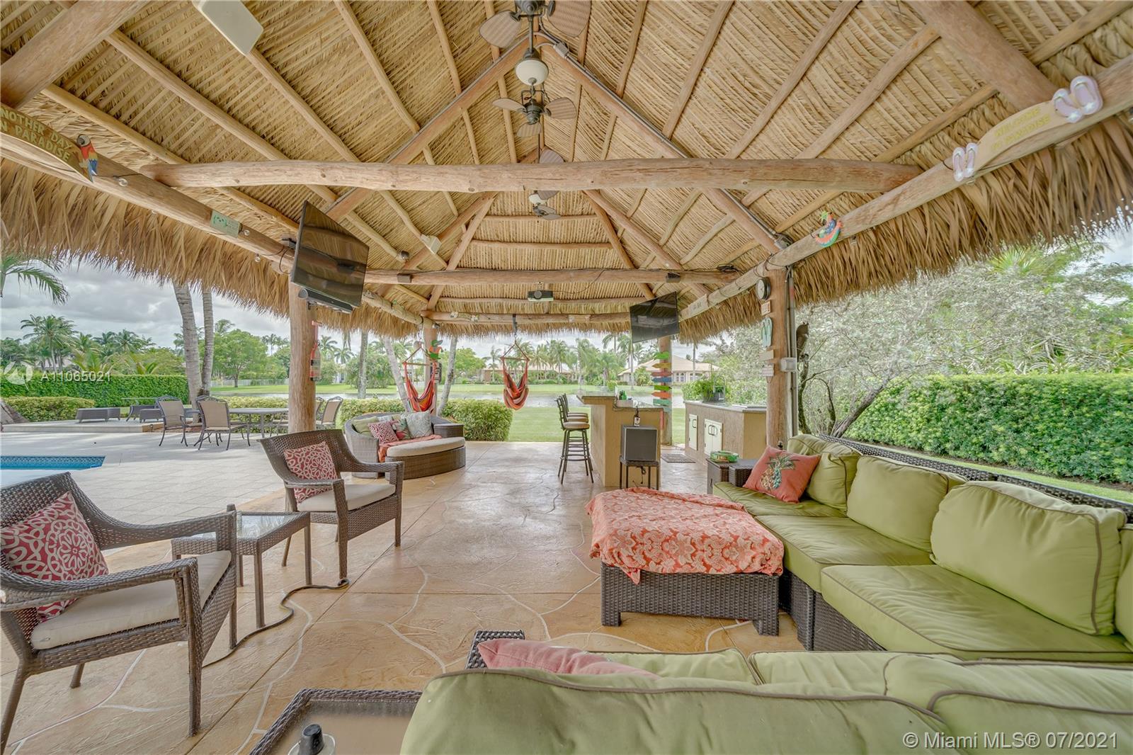 This serene lake estate offers an outdoor lifestyle as well as all the comforts you are looking for in a magnificent spacious home. Soaring entryway welcomes you. Formal living & dining room. Oversized chef's kitchen, breakfast area, open family room with an office/playroom where you can enjoy views of the stunning backyard from every room. Spectacular sunset views as you relax under your 800 sq. foot tiki hut with bar, 2 TV's and movie projector. Oversized pool, Summer kitchen, half BB court, boat launch and fire pit area are added to the upgrades list. Full house generator & a 500 gallon natural gas tank allows for 2 weeks of non-interruptive electricity. 3 car Housewall garage system, oversized driveway for 12 cars. Impact doors and Accordion shutters throughout. Don't miss this gem.