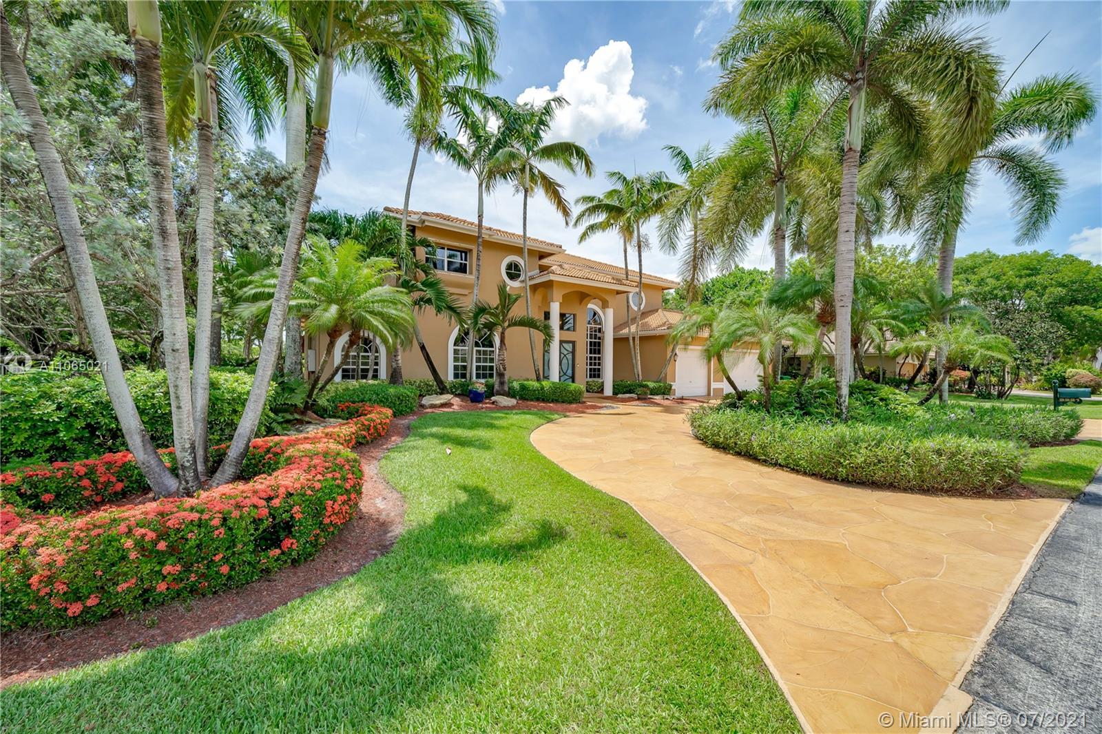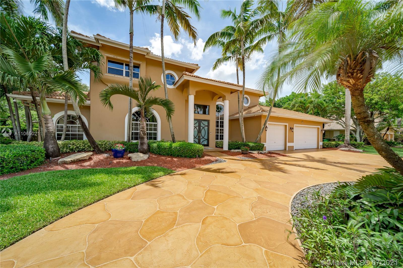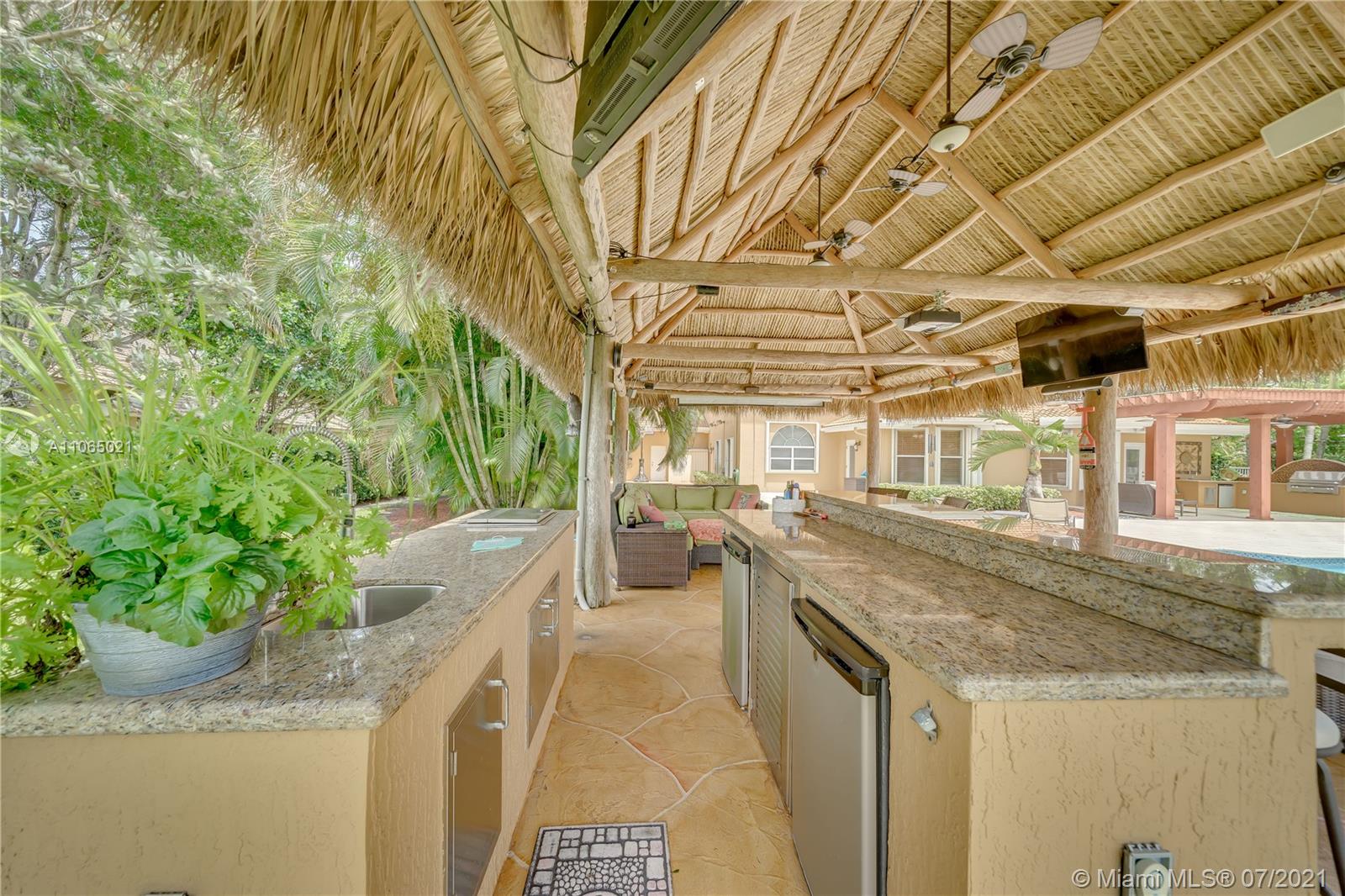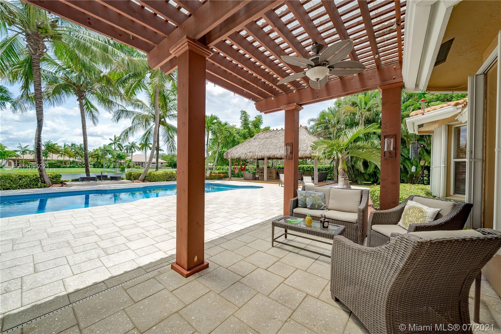 This serene lake estate offers an outdoor lifestyle as well as all the comforts you are looking for in a magnificent spacious home. Soaring entryway welcomes you. Formal living & dining room. Oversized chef's kitchen, breakfast area, open family room with an office/playroom where you can enjoy views of the stunning backyard from every room. Spectacular sunset views as you relax under your 800 sq. foot tiki hut with bar, 2 TV's and movie projector. Oversized pool, Summer kitchen, half BB court, boat launch and fire pit area are added to the upgrades list. Full house generator & a 500 gallon natural gas tank allows for 2 weeks of non-interruptive electricity. 3 car Housewall garage system, oversized driveway for 12 cars. Impact doors and Accordion shutters throughout. Don't miss this gem.