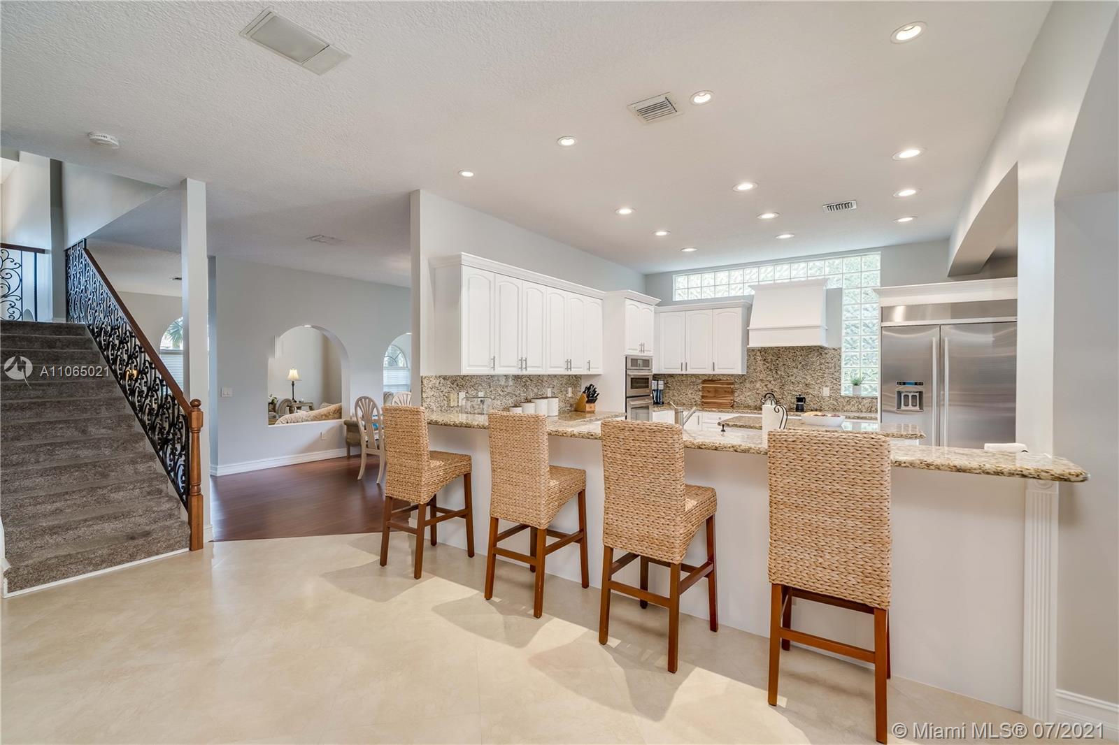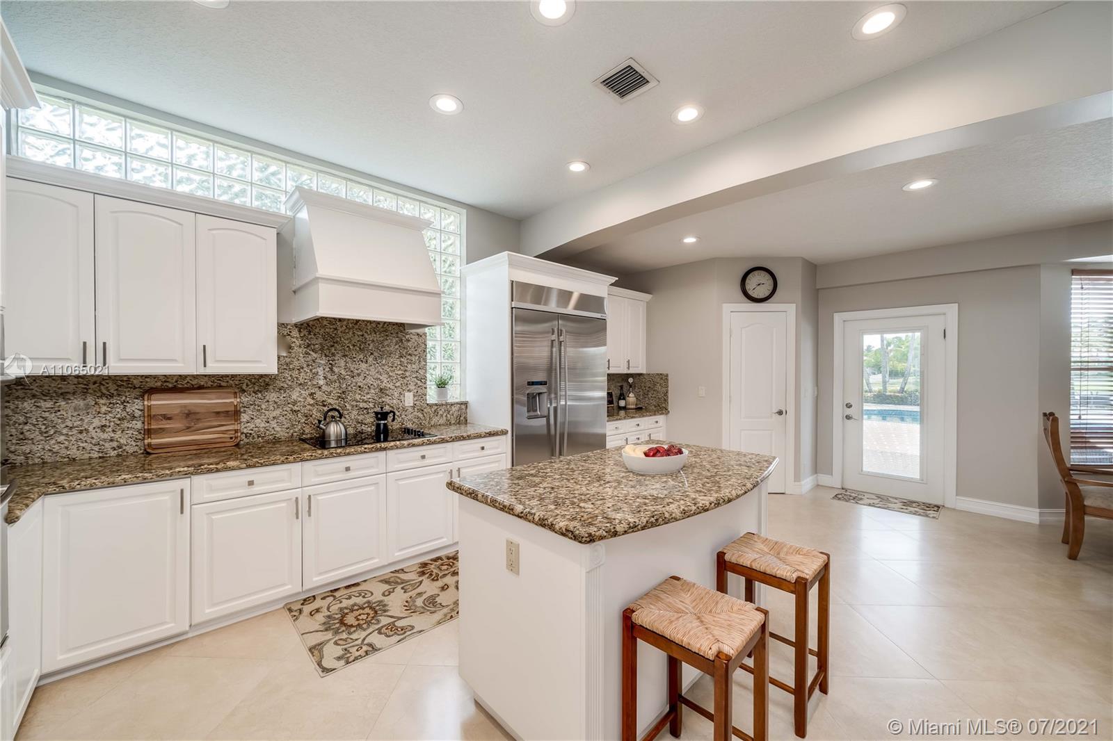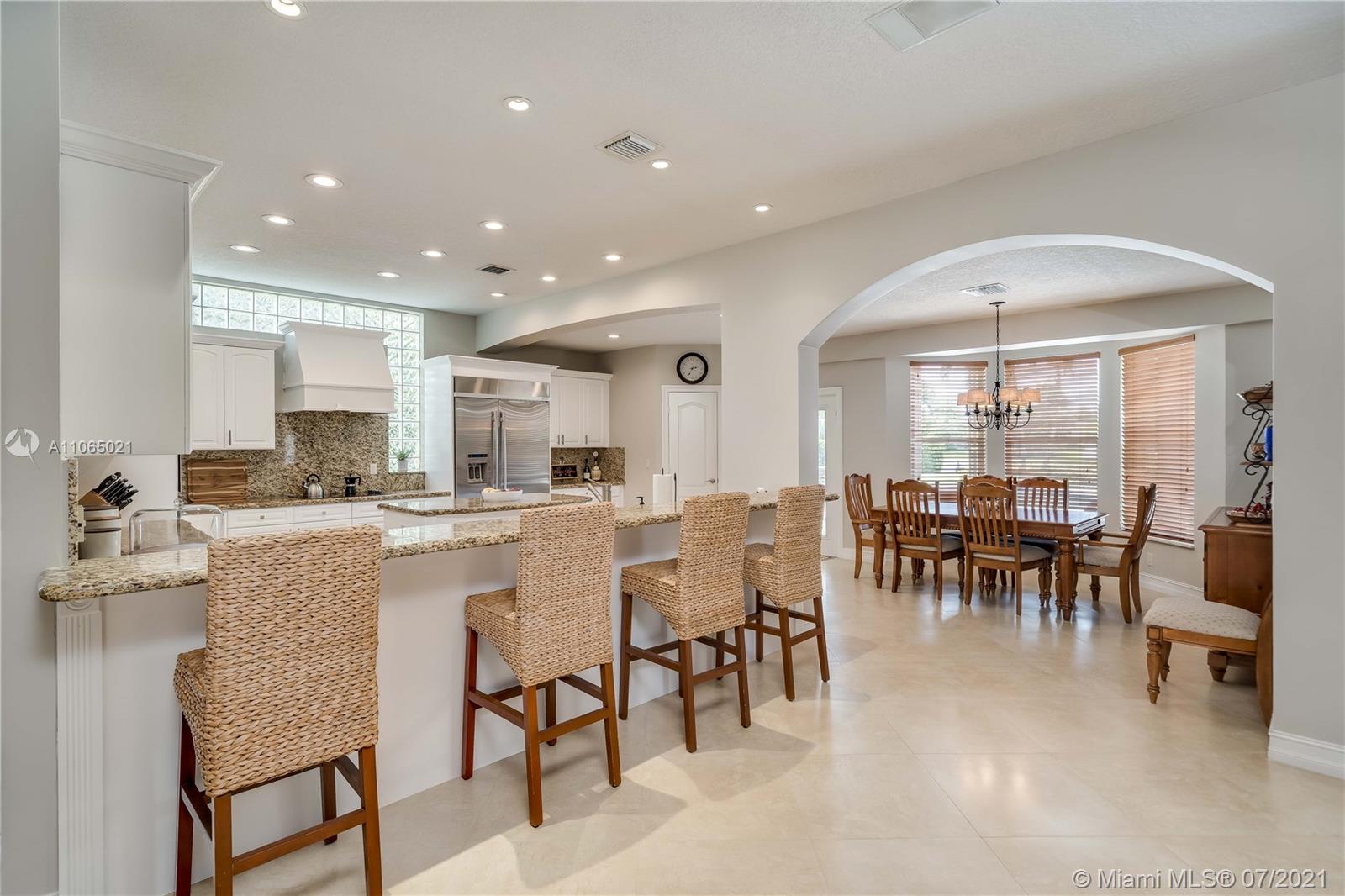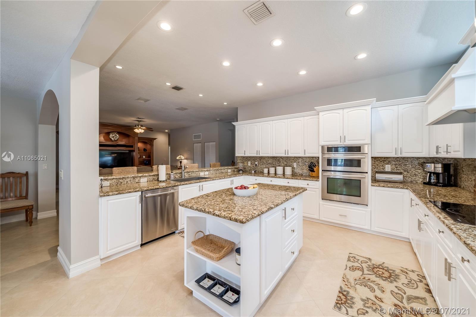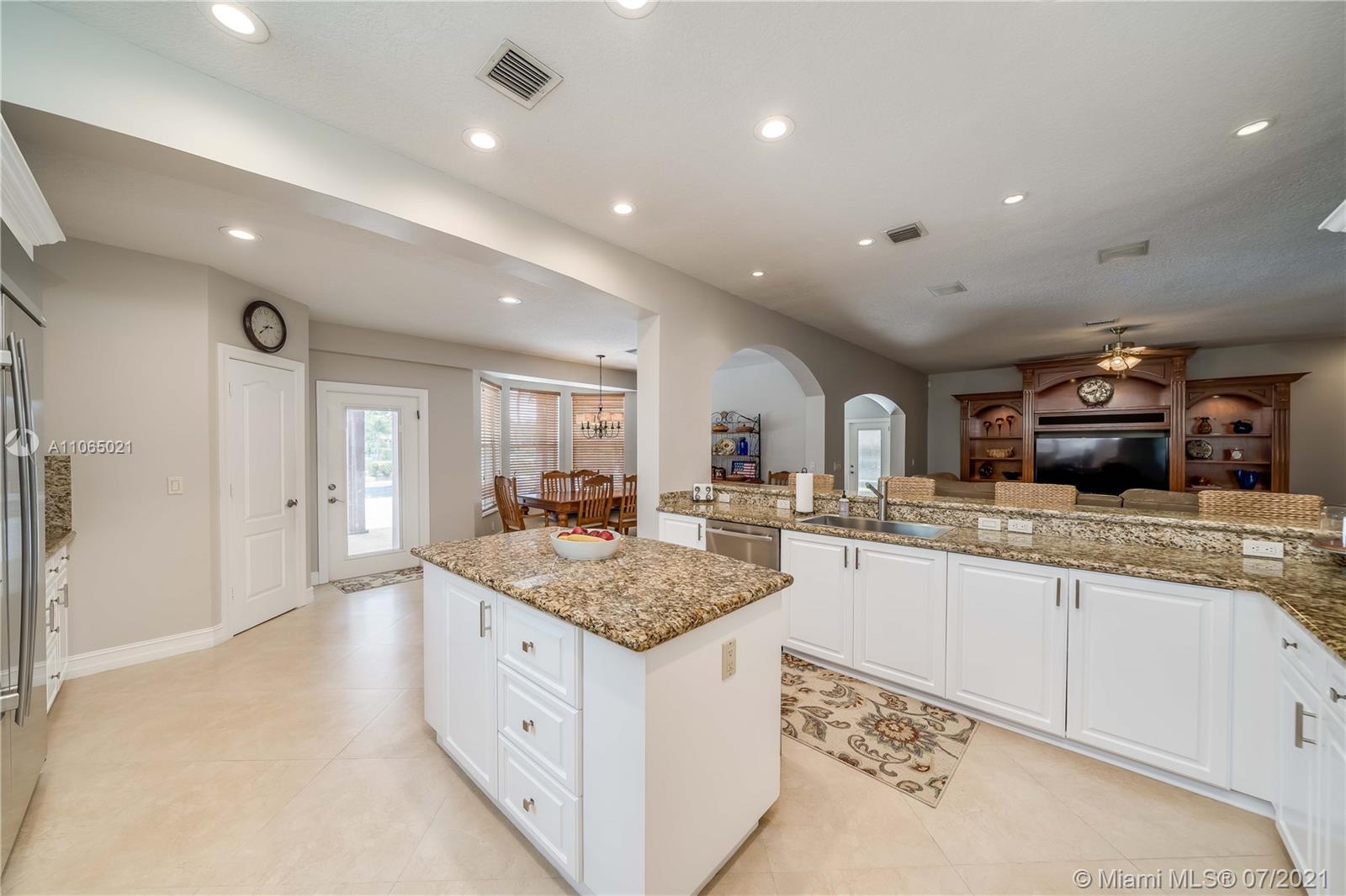 This serene lake estate offers an outdoor lifestyle as well as all the comforts you are looking for in a magnificent spacious home. Soaring entryway welcomes you. Formal living & dining room. Oversized chef's kitchen, breakfast area, open family room with an office/playroom where you can enjoy views of the stunning backyard from every room. Spectacular sunset views as you relax under your 800 sq. foot tiki hut with bar, 2 TV's and movie projector. Oversized pool, Summer kitchen, half BB court, boat launch and fire pit area are added to the upgrades list. Full house generator & a 500 gallon natural gas tank allows for 2 weeks of non-interruptive electricity. 3 car Housewall garage system, oversized driveway for 12 cars. Impact doors and Accordion shutters throughout. Don't miss this gem.