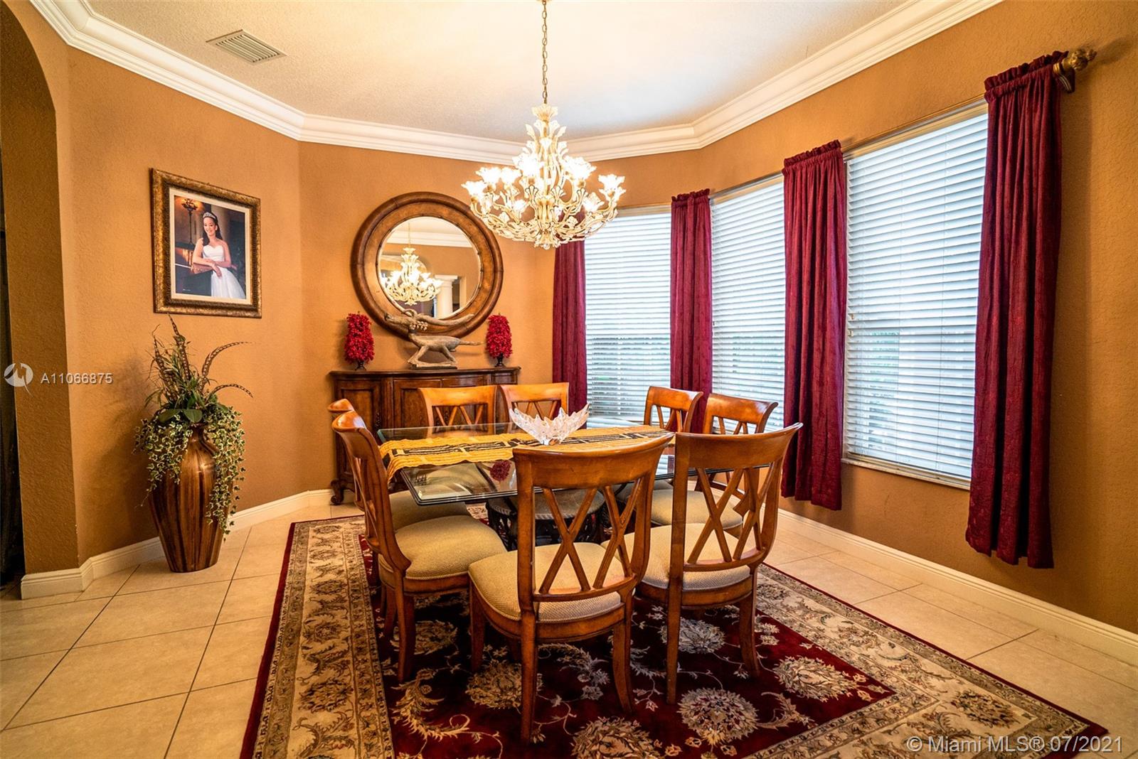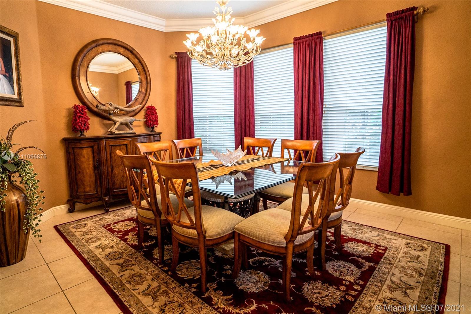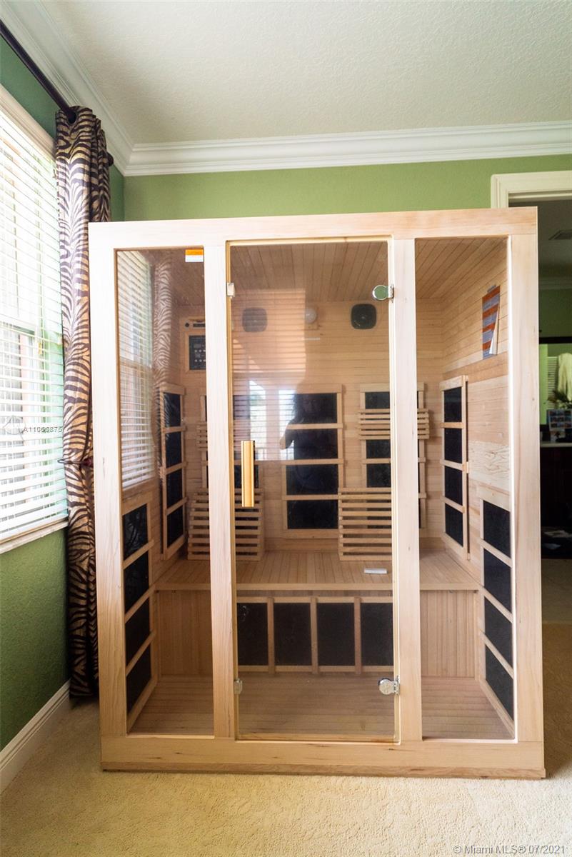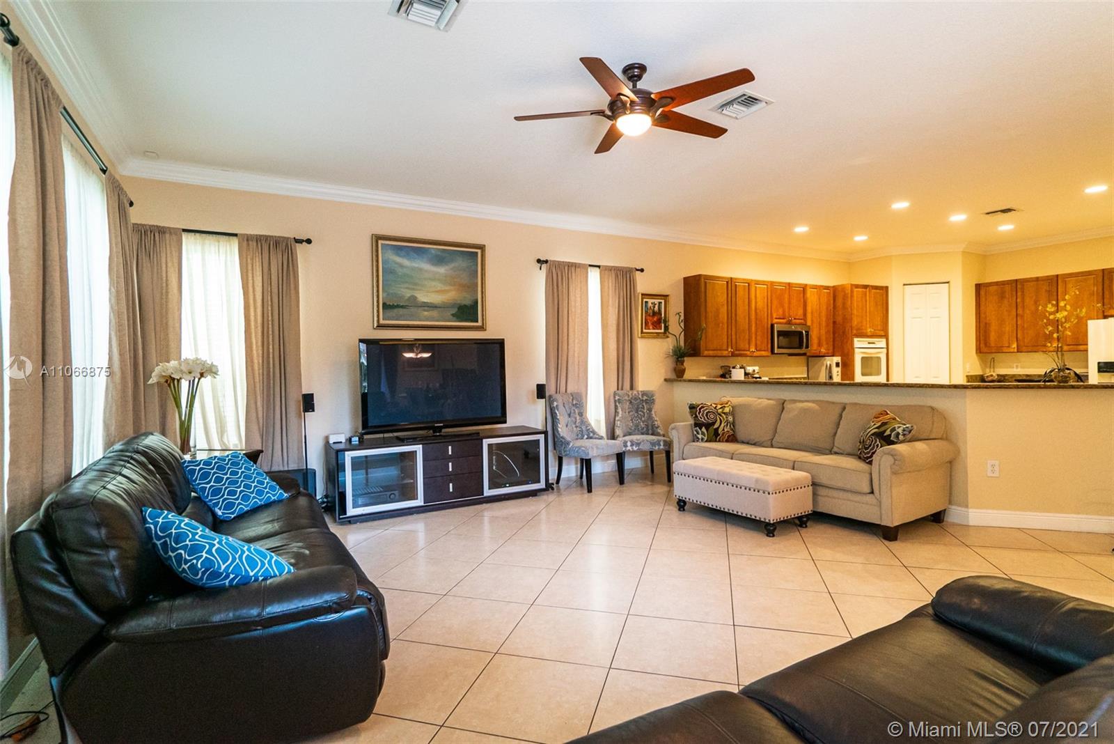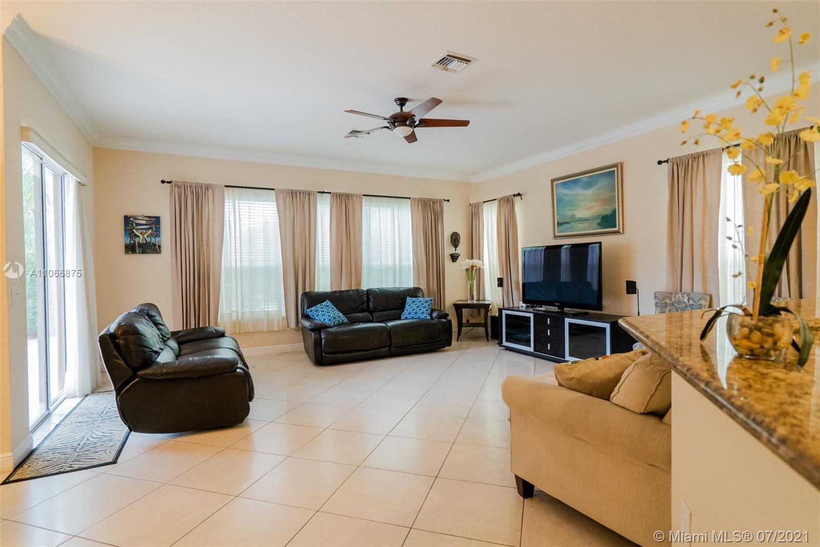 This gorgeous home greets you with its soaring 22-foot ceiling in the formal living room with large windows boasting views of the tropical oasis in the backyard. The oversized lot in a private cul-de-sac offers you a spacious backyard paved with marble, making it ideal for entertaining. The private luxury community of Sunset Lakes is a 24-hour gated community, along with amenities such as clubhouse, pool, gym, children playground, har tru and clay tennis courts in their world-class tennis center. The gourmet kitchen has solid wood cabinetry & granite countertops. On the ground floor you’ll find an office/den, bedroom adjacent to full cabana bath and half bath next to the kitchen. Upstairs you will find four bedrooms: two of which are adjoined by a jack-and-Jill bathroom,