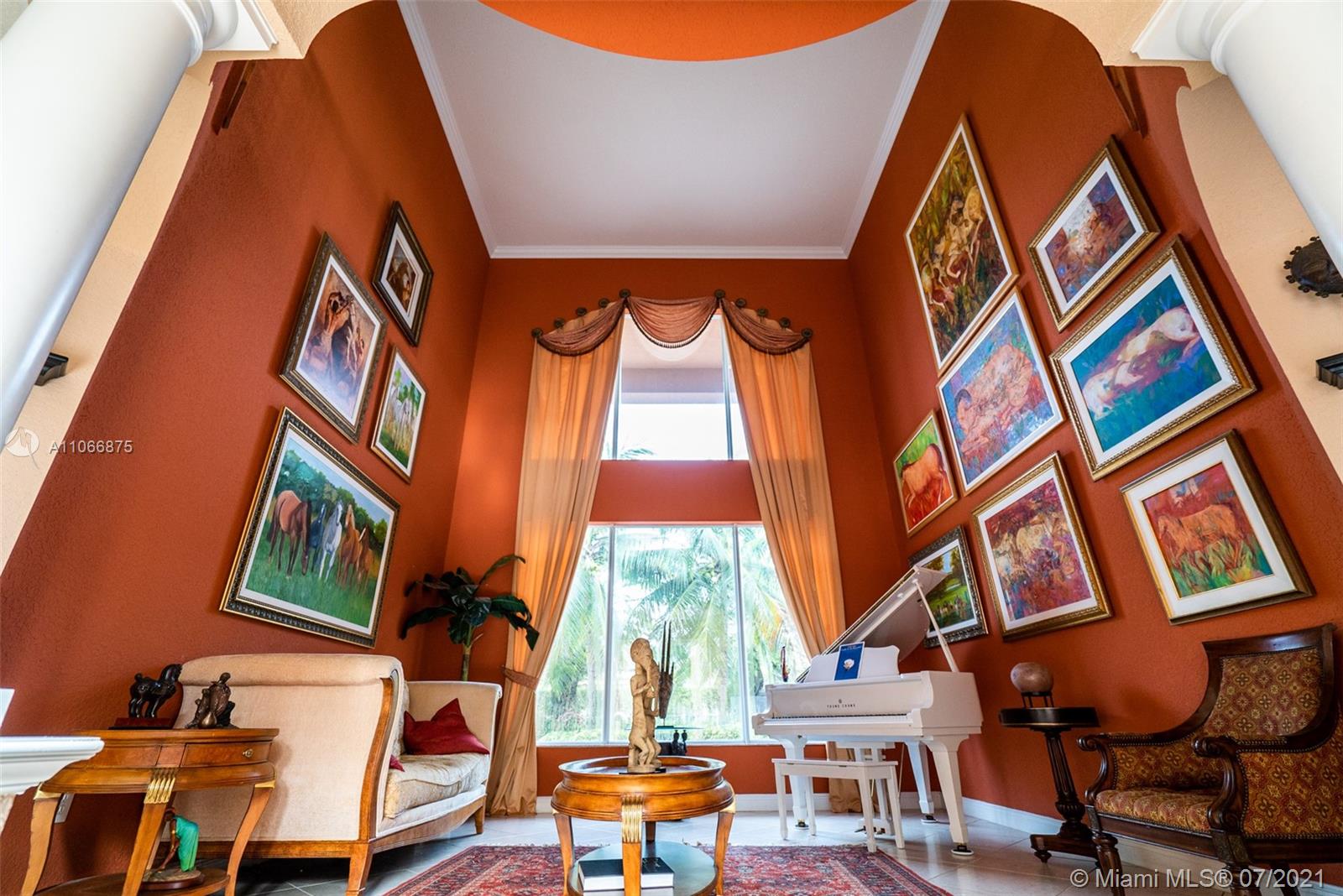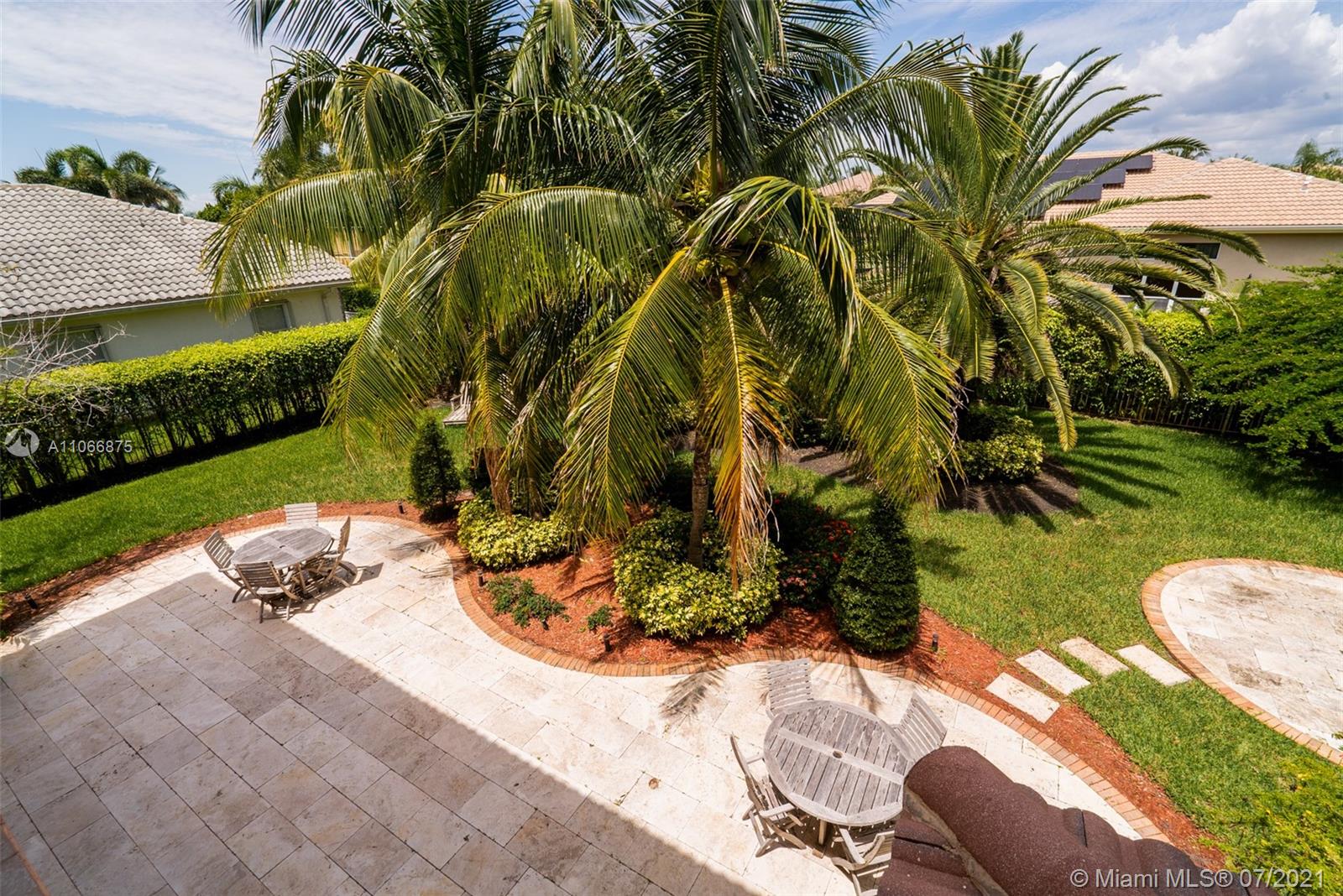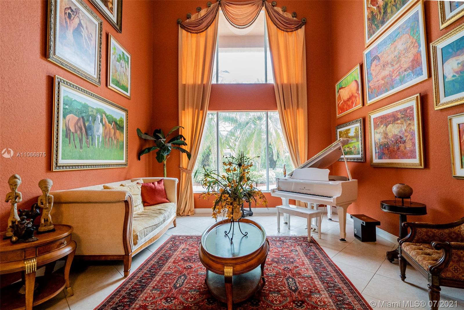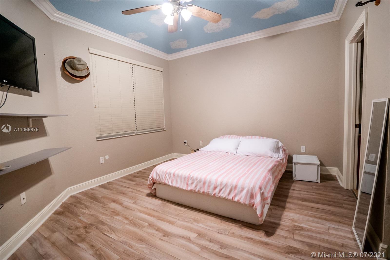 This gorgeous home greets you with its soaring 22-foot ceiling in the formal living room with large windows boasting views of the tropical oasis in the backyard. The oversized lot in a private cul-de-sac offers you a spacious backyard paved with marble, making it ideal for entertaining. The private luxury community of Sunset Lakes is a 24-hour gated community, along with amenities such as clubhouse, pool, gym, children playground, har tru and clay tennis courts in their world-class tennis center. The gourmet kitchen has solid wood cabinetry & granite countertops. On the ground floor you’ll find an office/den, bedroom adjacent to full cabana bath and half bath next to the kitchen. Upstairs you will find four bedrooms: two of which are adjoined by a jack-and-Jill bathroom,