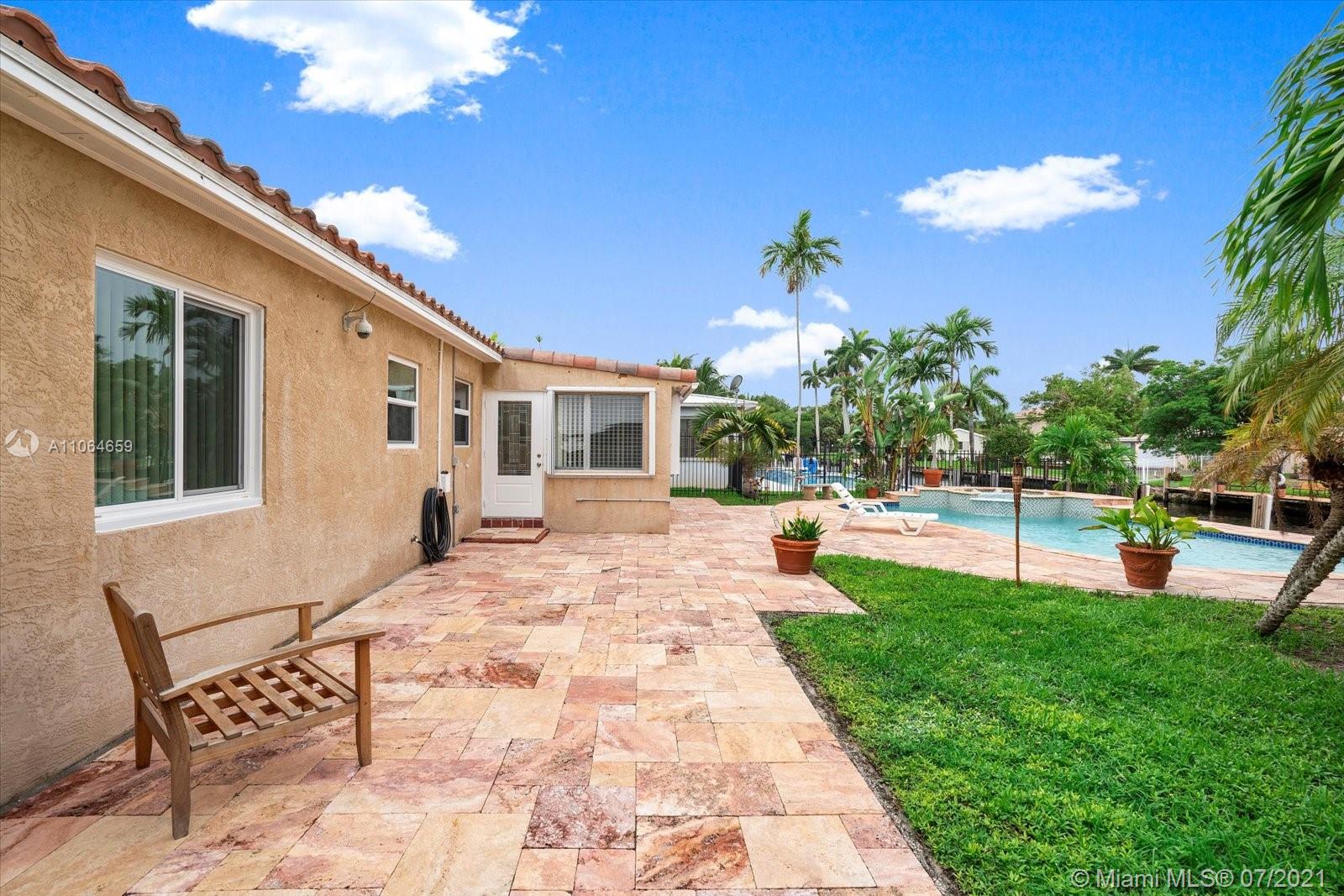 Updated with tile floor, custom kitchen with granite countertops, Located in desirable Citrus Isles, close to downtown, airport, and beaches. No fixed bridges. 60' deepwater. Big yard with custom pool, spa, patio, tiki hut with electricity all perfect for entertaining. There is a 60 ft dock with a boat lift. 3rd bedroom was the garage that can easily be converted back. One car garage is great for extra storage.