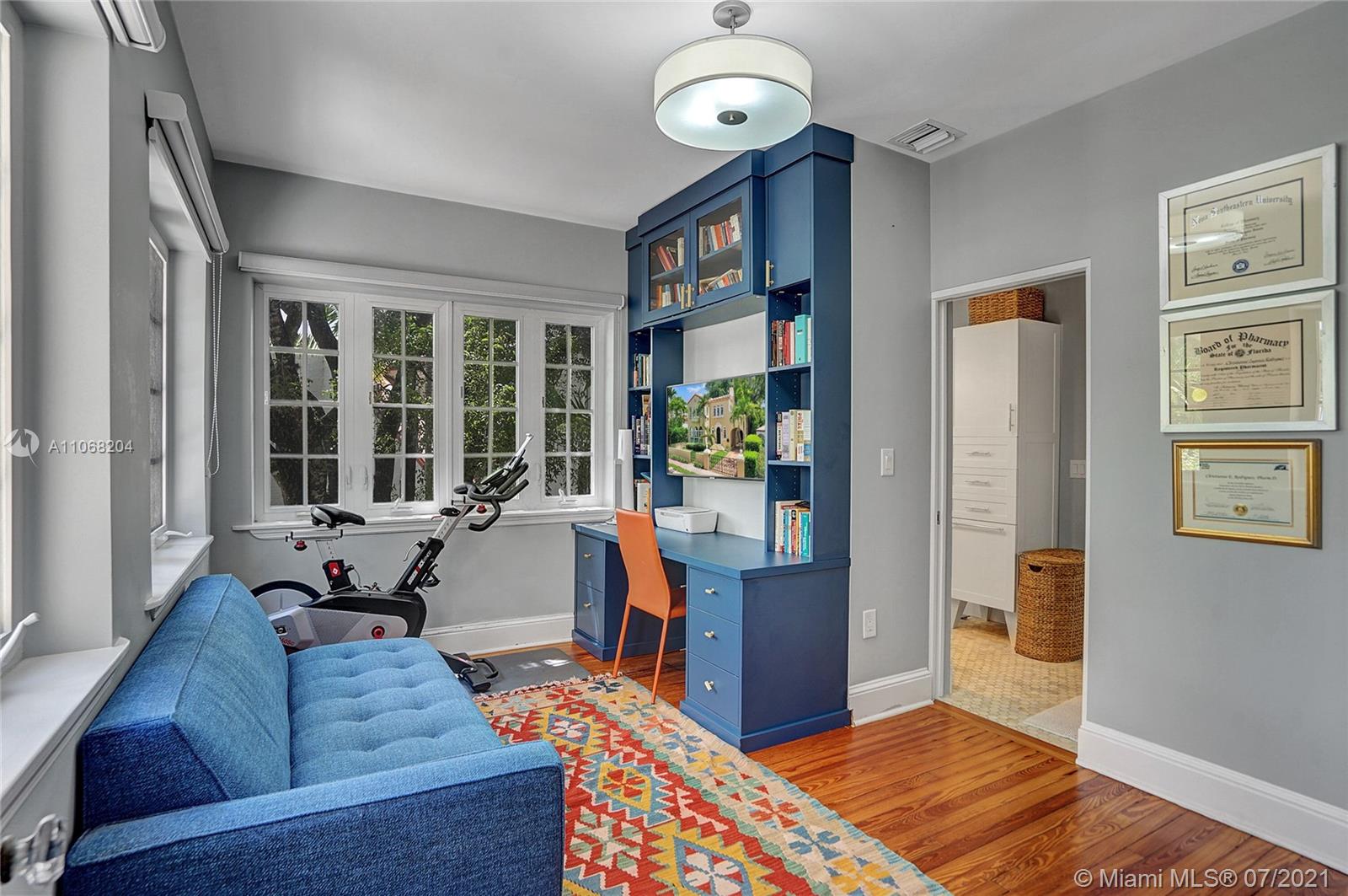 Beautiful Coral Gables LANDMARK Home. One block from Granada Golf Course, close to restaurants and shops on the Mile. Modern while preserving its historical integrity. Wonderful grand living area with high ceilings. Florida Room with original Cuban tiles. Eat in kitchen with high-end appliances. Beautiful 2 room primary suite with private terrace. The detached studio with a full bath is perfect for guests or a home office. Fantastic custom Built-ins provide plenty of extra storage. Impact windows and doors. MOVE-IN READY!!