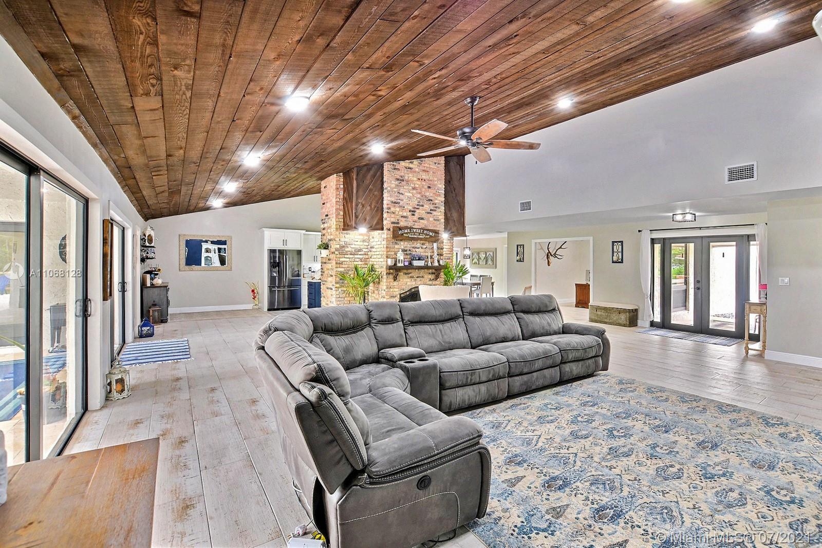 SITUATED ON A BUILDER'S ACRE BORDERING A CANAL, THIS 4 BEDS 3 BATH RANCH STYLE POOL HOME HAS 2,746 SQ FT OF ELEGANT LIVING. STUNNING OPEN CONCEPT HOME W MODERN RUSTIC FLAIR HAS GORGEOUS PORCELAIN TILE, VAULTED WOOD PLANK CEILINGS, & COZY BRICK WALL FIREPLACE. THE SPECTACULAR MUST HAVE NEW KITCHEN FEATURES TWO-TONED CABINETS, QUARTZ COUNTERS, LARGE ISLAND & STYLISH HERRINGBONE BACKSPLASH. SPACIOUS PRIMARY SUITE OPENS TO PATIO & POOL. ENSUITE BATH W DOUBLE VANITY, GARDEN TUB & NATURAL ROCK SHOWER. GORGEOUS GUEST BATH W/ SAUNA. COVERED PATIO OFFERS TRANQUIL VIEWS OF THE SPRAWLING GROUNDS. IMPROVEMENTS GALORE INCLUDE NEW POOL SURFACE, FRENCH PATTERN TRAVERTINE PATIO & POOL DECK, IMPACT WINDOWS & DOORS, NEW FENCE, NEW AC & NEWER FLAT ROOF. CIRCULAR DRIVEWAY.