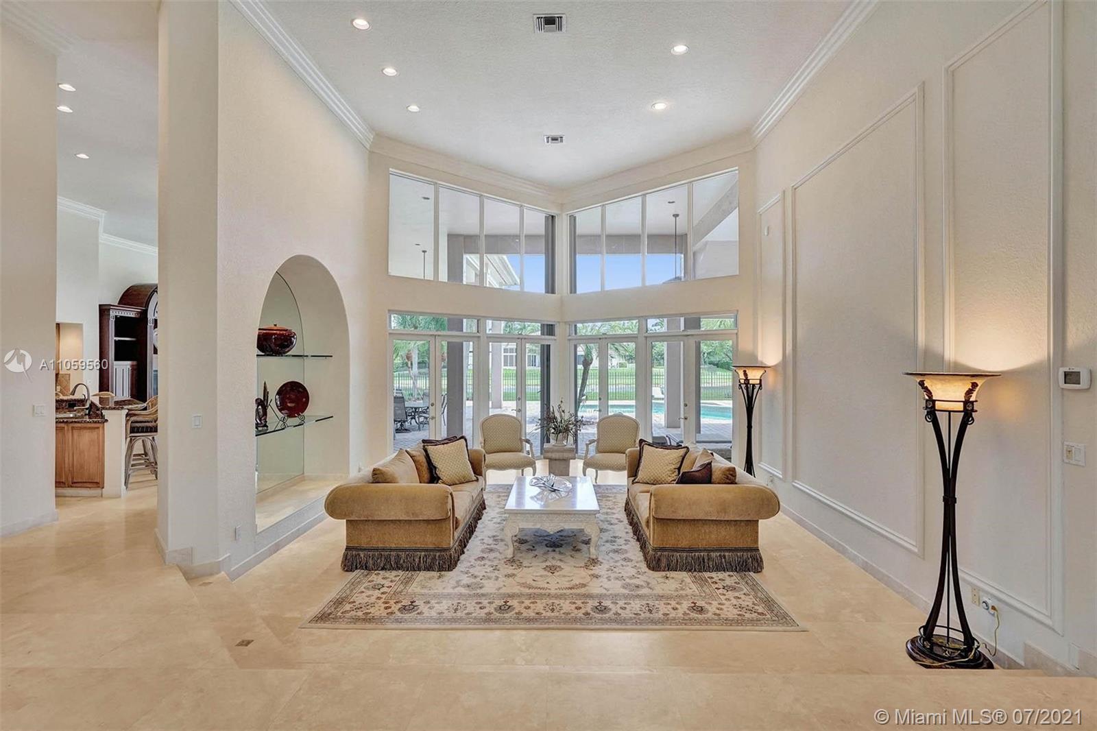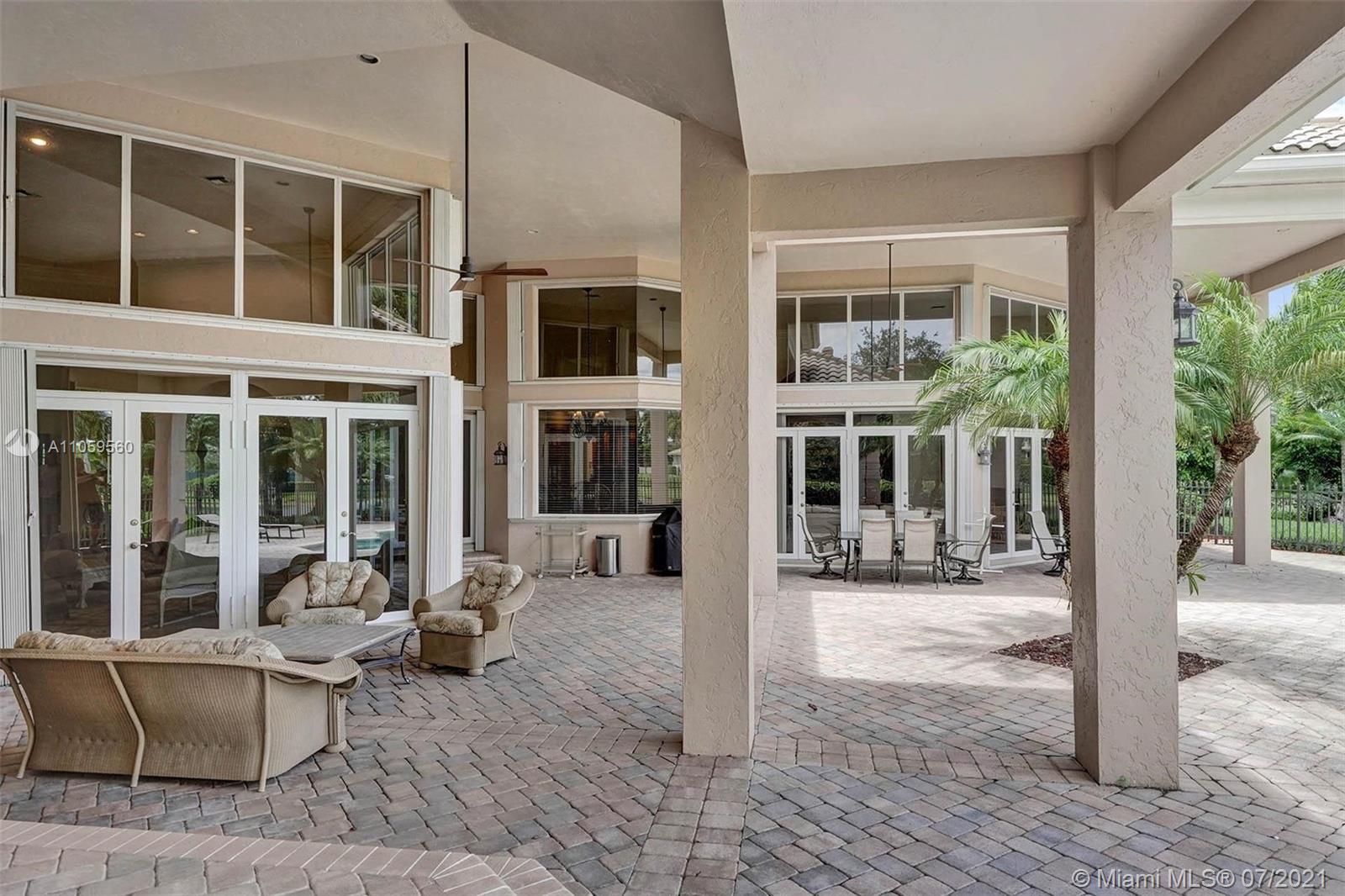 OPEN HOUSE SUNDAY 7/11 1-3. Tucked in the gated boutique community of Windmill Lake Estates. Grand 5 bed + office 5.5 bath pool estate home sitting on over an acre lot*expansive paver circular driveway*porte-cochere. Private water views from your custom pool/spa*fully fenced*lushly landscaped, pavers, baby fence. Marble throughout living areas*Soaring ceilings*Extensive crown moldings*Gourmet wood kitchen with island*breakfast bar*custom cabinetry*granite countertops* SS appliances*Double ovens*Oversized refrigerator*expansive butler pantry w/ fridge. Master suite w/ wood floors, Sitting room*custom master bath dual vanities*jacuzzi tub*marble flooring.Office with own full bath. Full accordion/rolladen protection. Full house generator. Side entry 3 car garage. New pool heater 2021
