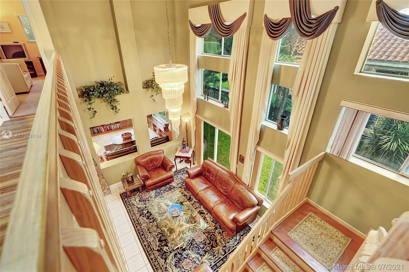 Beautiful waterfront home situated at the end of a long private driveway offers plenty of parking, privacy w/an outdoor garden oasis & mango tree. Welcomed by a waterfall feature, the soaring living room ceiling greets you with an abundance of natural light as you enter this lovely home. An open floor plan, this 2 story home has a master bedroom overlooking the water w/ two bedrooms opposite the loft area, currently used as an office. A terrific breakfast area & family room overlooks the stunning backyard. New roof (1 yr old), gutters and freshly painted, it is welcoming from the moment you walk down the stone filled pathways to the front door. Maintenance free, the HOA provides landscaping, tree trimming, sprinklers & a heated community pool. This coveted guard gated community is a gem.