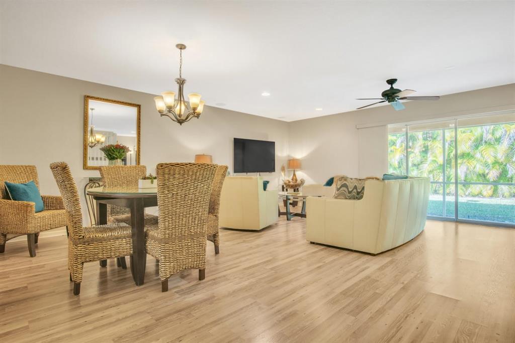 Gated community living in this 3 bd / 2.5 Royal Palm Beach townhouse! Highlights include the open layout, screened-in patio, and amazing community amenities! Tropical landscaping and a covered front porch add great curb appeal, while luxury wood laminate floors and natural light create a bright and airy interior. Cook in the kitchen, equipped with stainless steel appliances, maple wood cabinets, tile backsplash, and a pass through window into the chandelier lit dining room. After eating, relax in the living room, or head out the sliding glass doors to lay out on the covered and screened-in patio, overlooking the lush open lawn and palm trees!